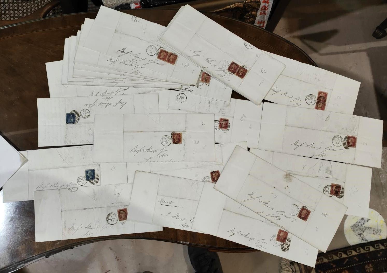 GB 1d plates on cover (21) and 2d Blues Pl 14 on covers (10) with fine cancellations