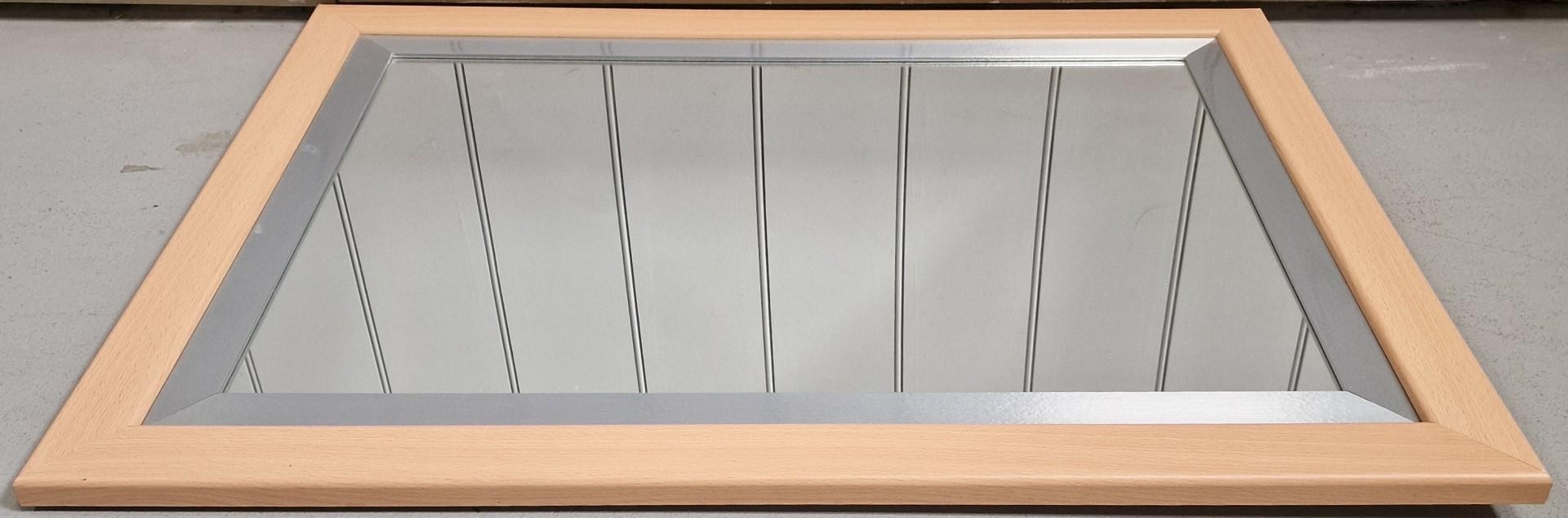 A contemporary silver & beech coloured wall mirror. 68cm x 94cm.