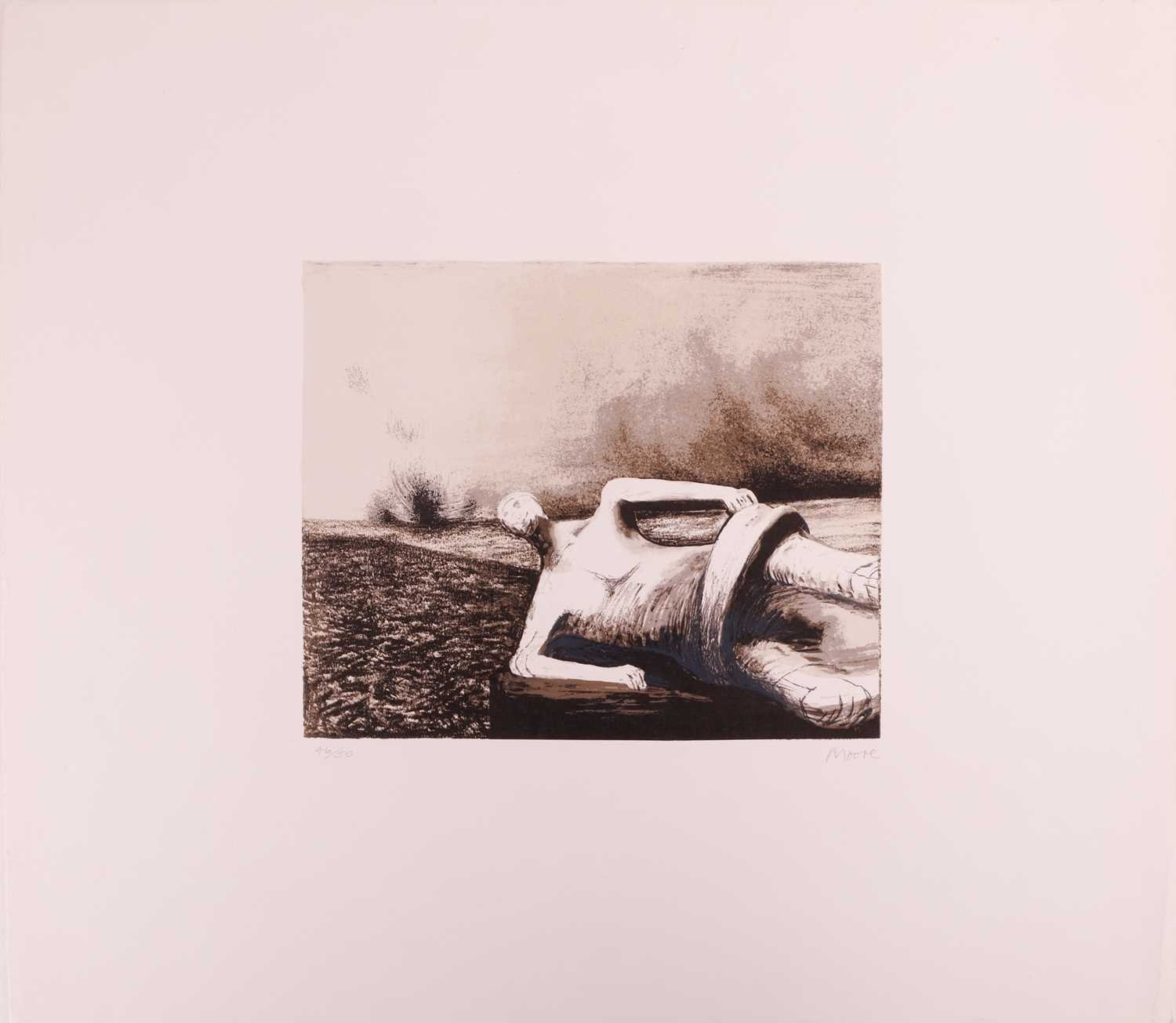 Henry Moore (British 1898-1986) Male Figure in Landscape (Cramer 470) lithograph printed in colours, 1977-78, on T H Saunders paper, signed in pencil, numbered '46/50', published by Raymond Spencer for The Henry Moore Foundation, Much Hadham sheet 51.8 x 59.5 cm (unframed)