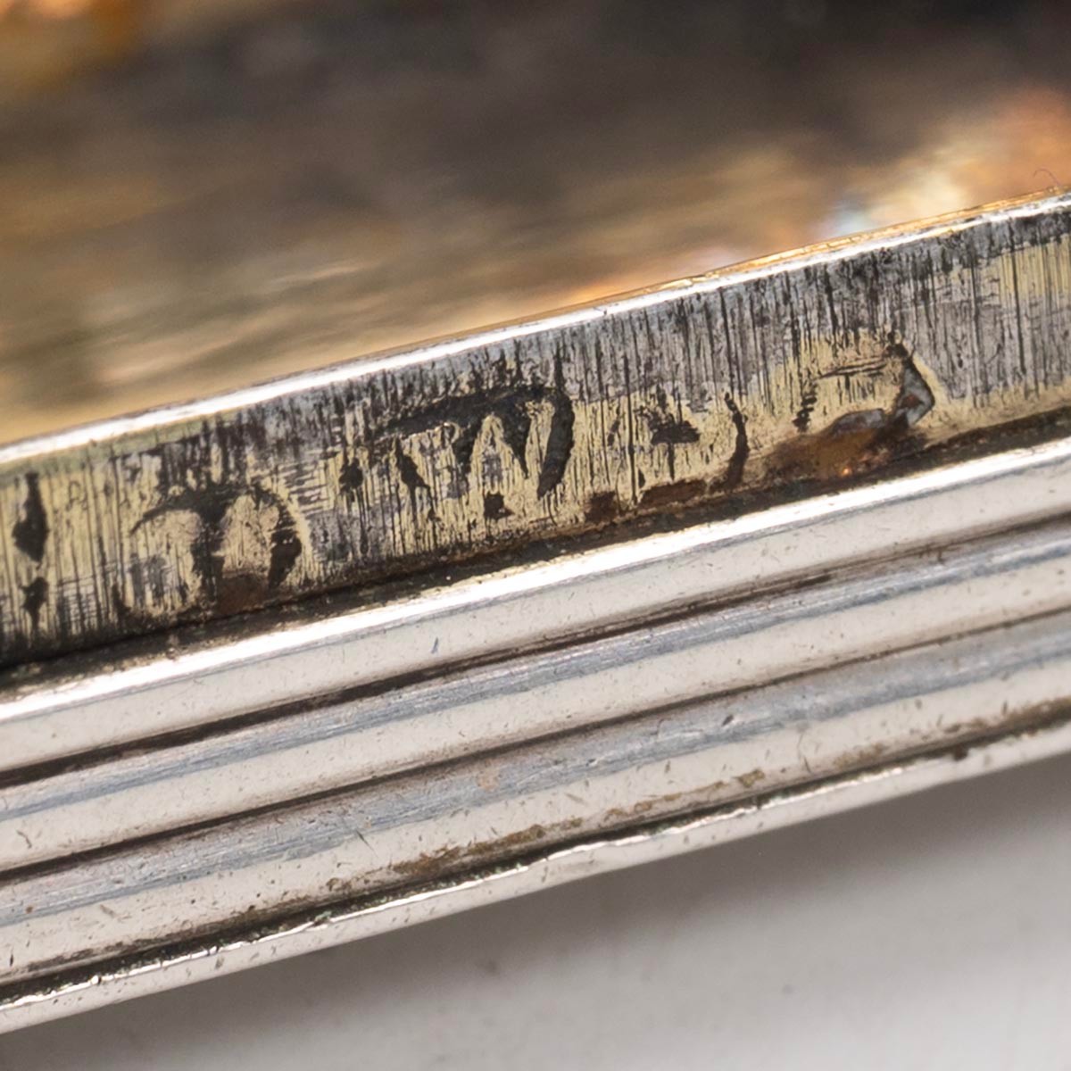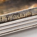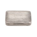 A silver hallmarked snuff box of rectangular form with ribbed textured decoration, gilt interior, hallmarked Birmingham, makers and date mark rubbed. Weight 24 grams.