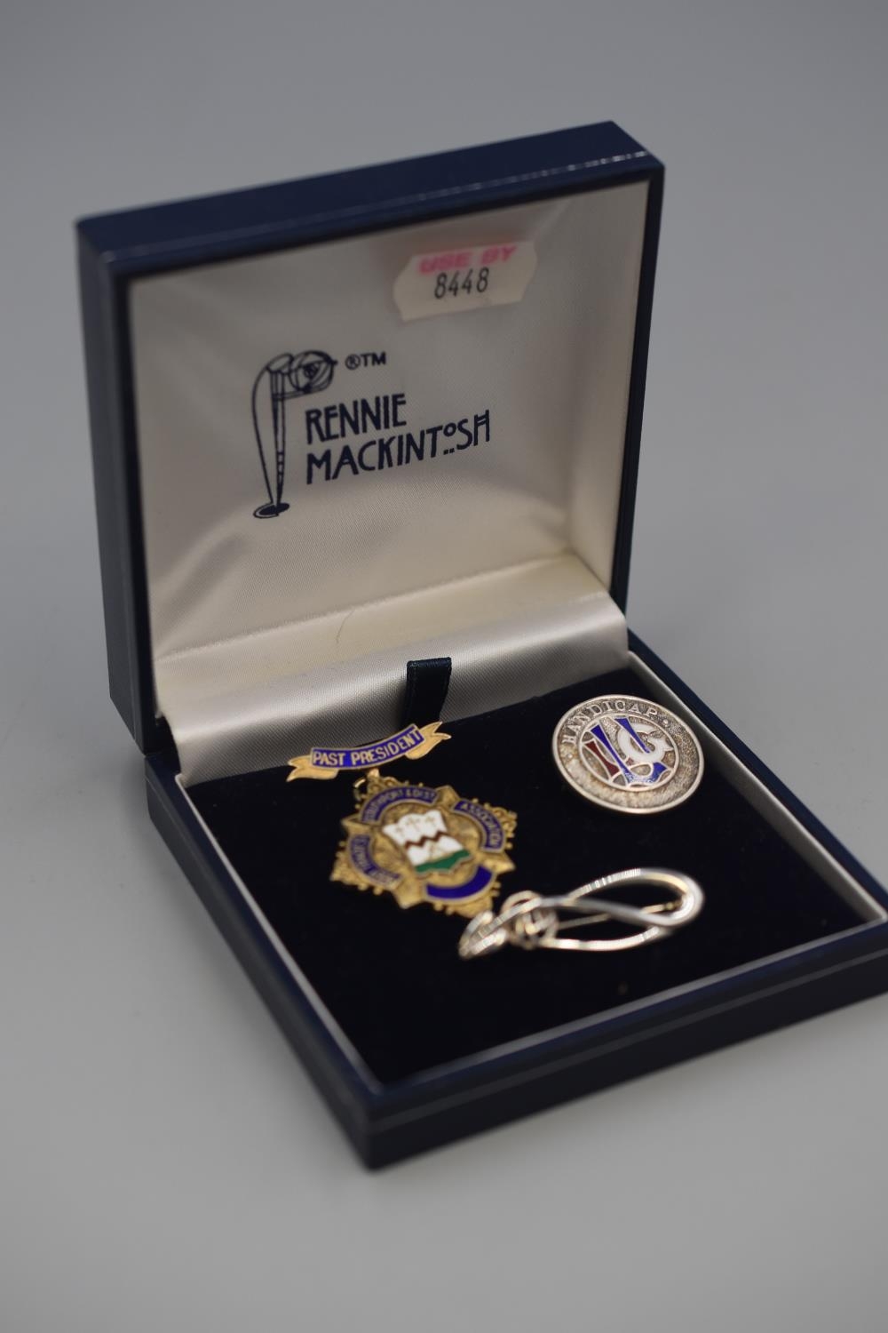 Three Silver Badges / Brooches including Mackintosh Style and Mappin & Webb