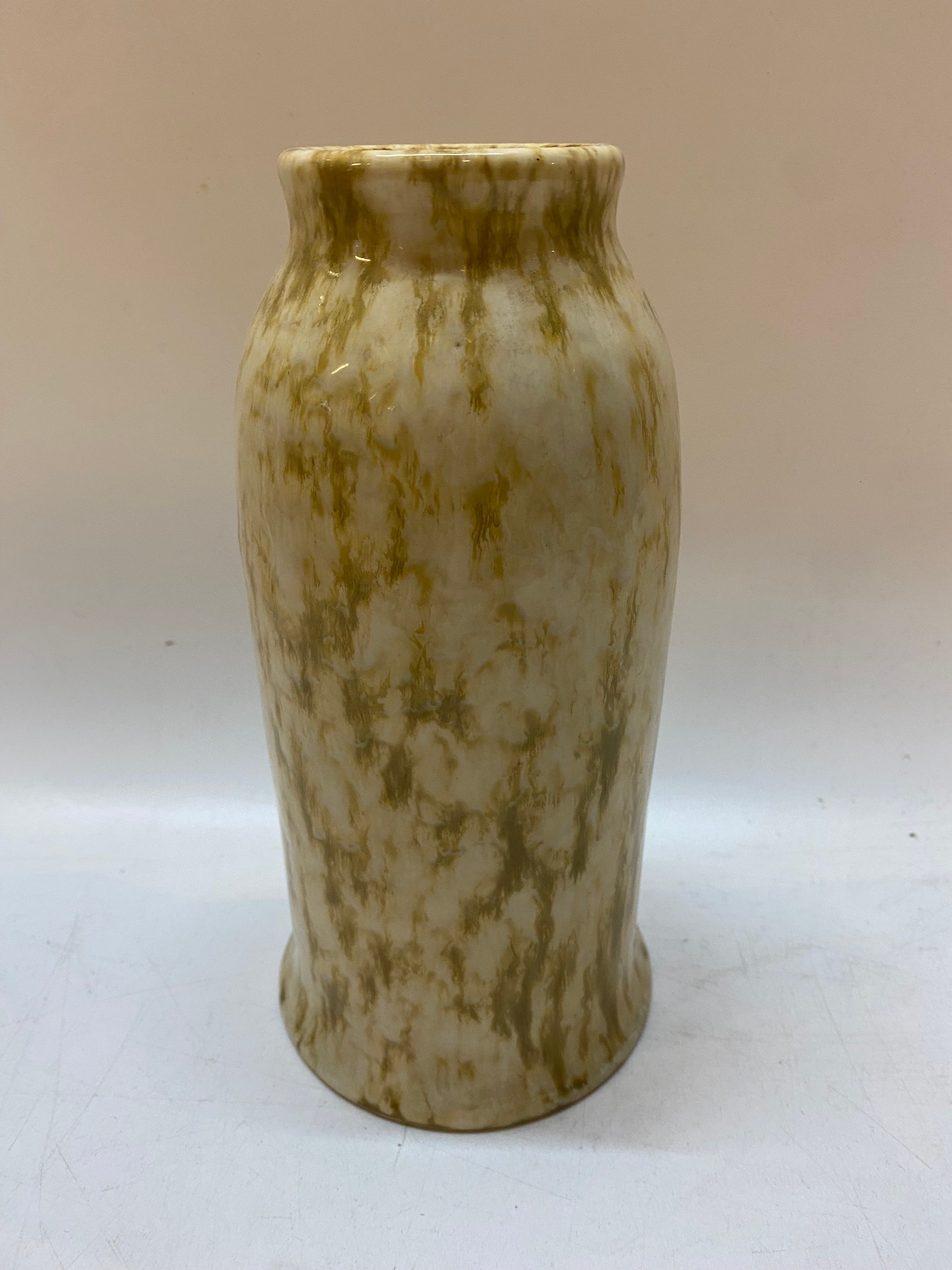 A Ruskin bottle shaped vase, cream with mottled decoration - 9in. high