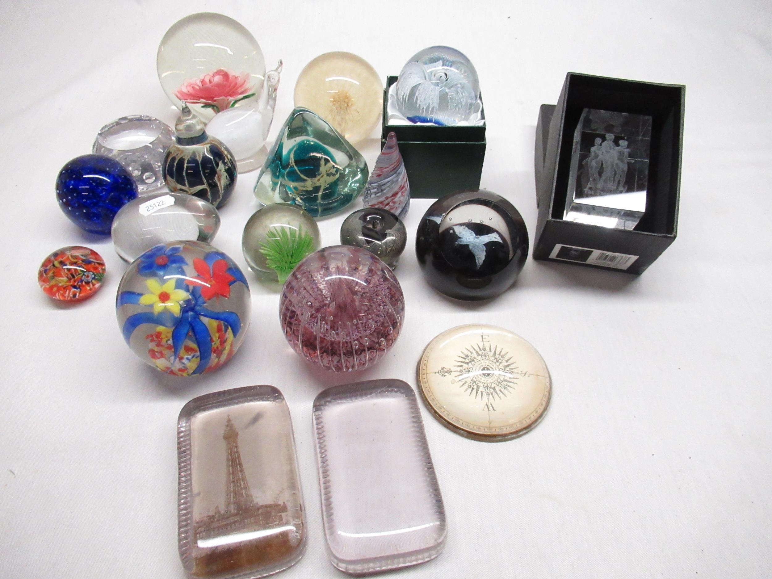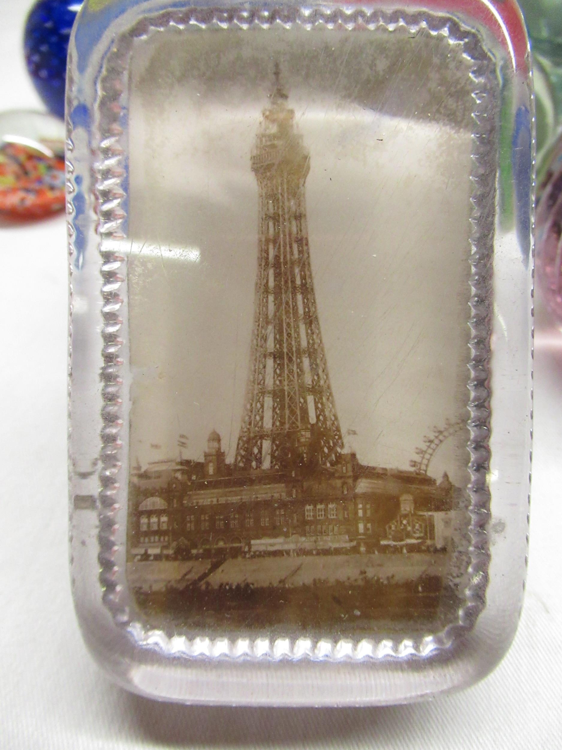 Caithness Aquila paperweight, Mdina glass paperweight, Lagham glass paper weight, early C20th Blackpool Tower paper weight, other decorative paper weights (qty)