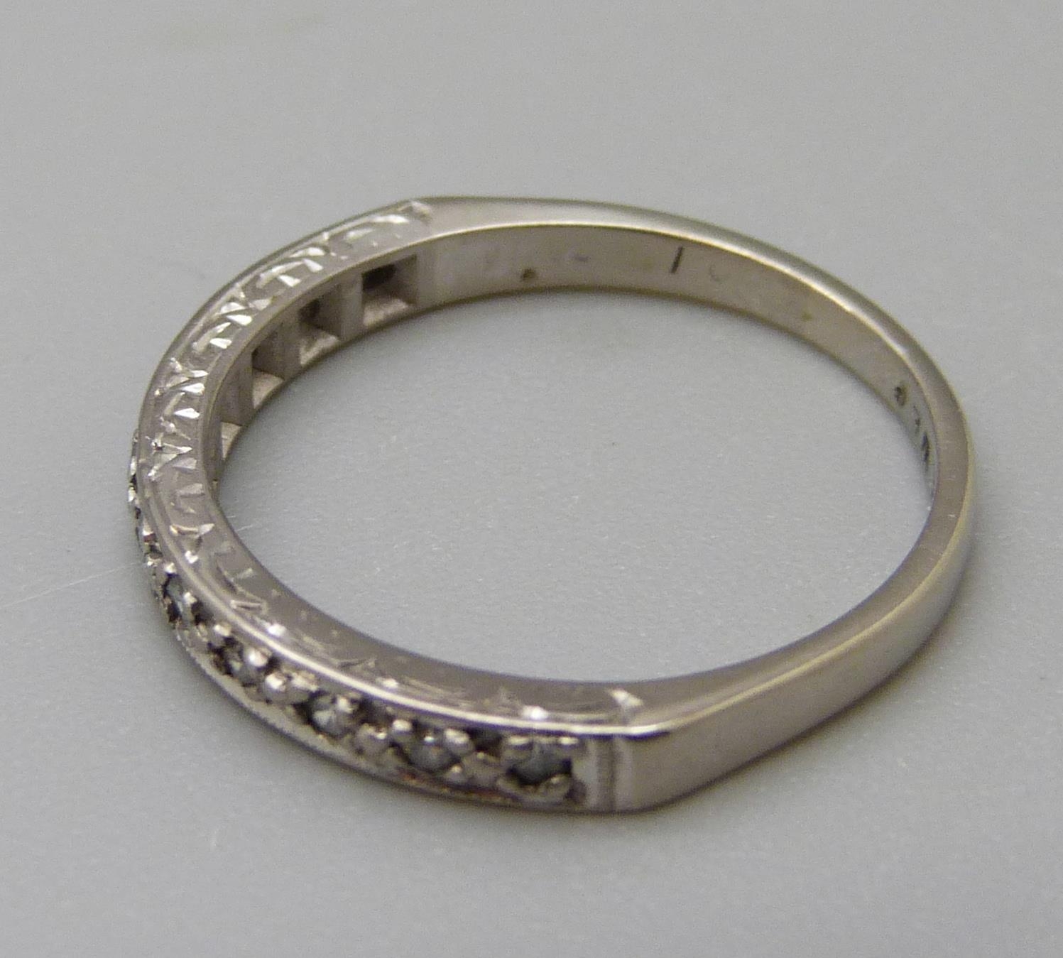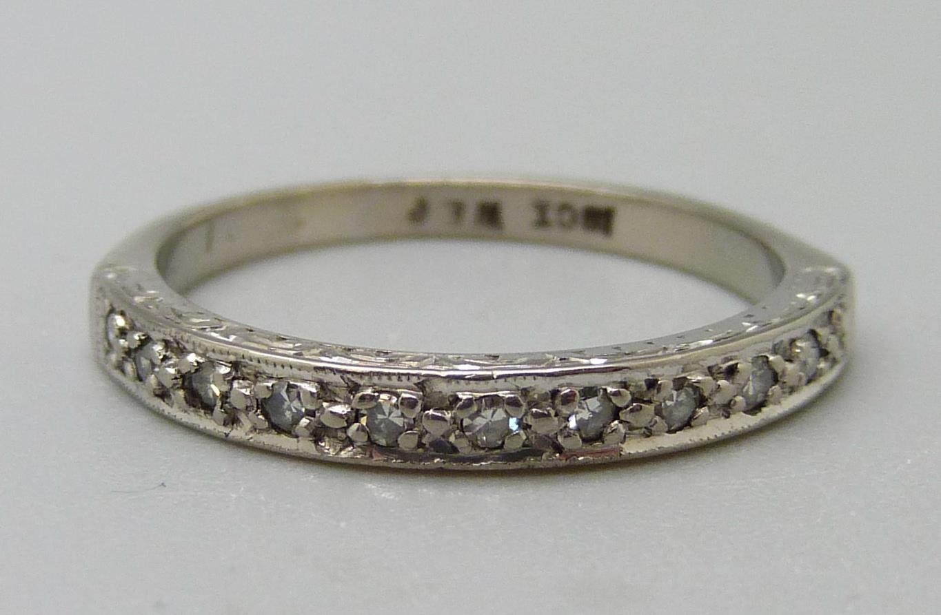 An 18ct gold, eleven stone diamond ring, 3g, O