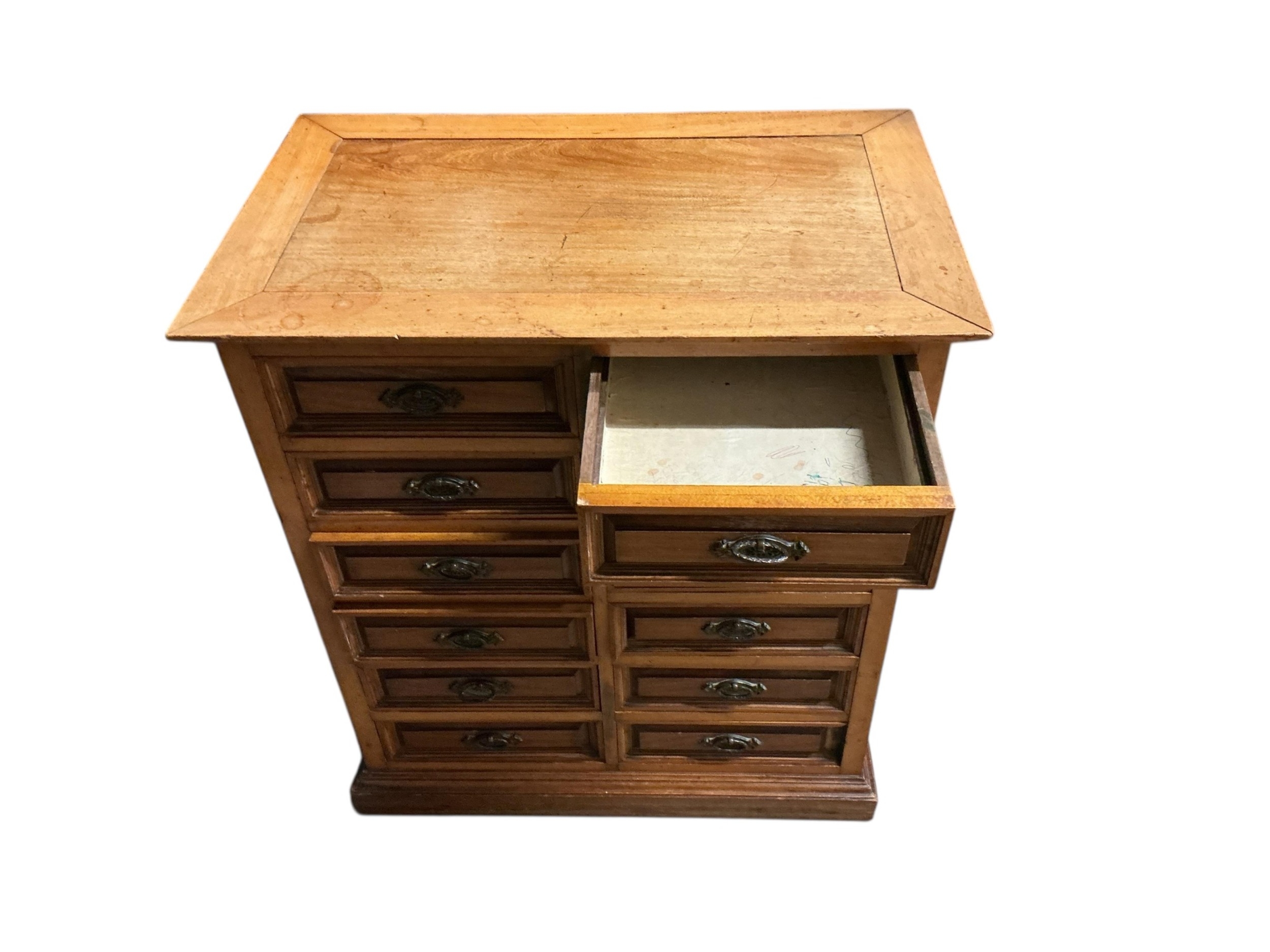 A late Victorian walnut miniature chest, width 61cm, depth 38cm, height 69cm