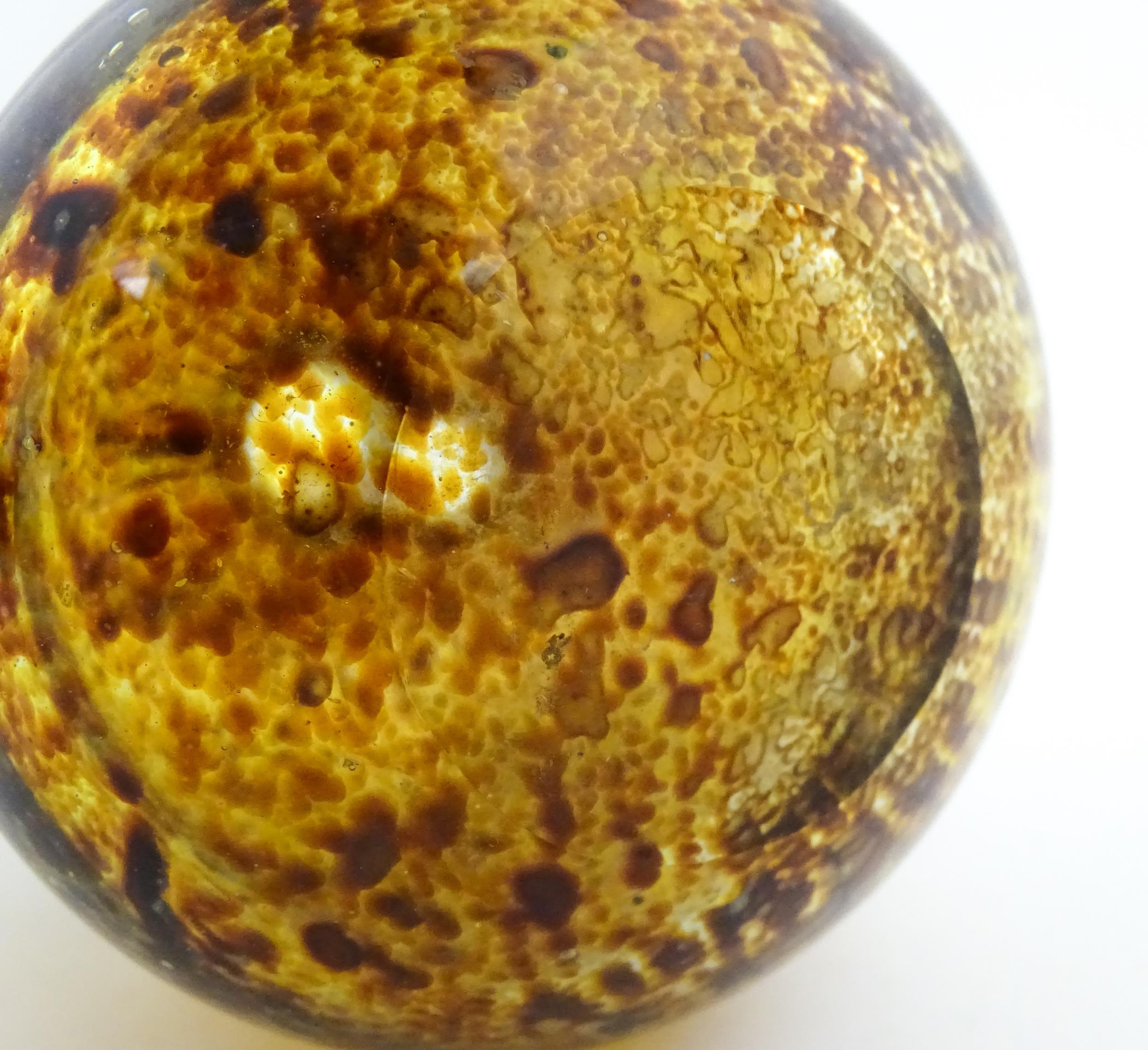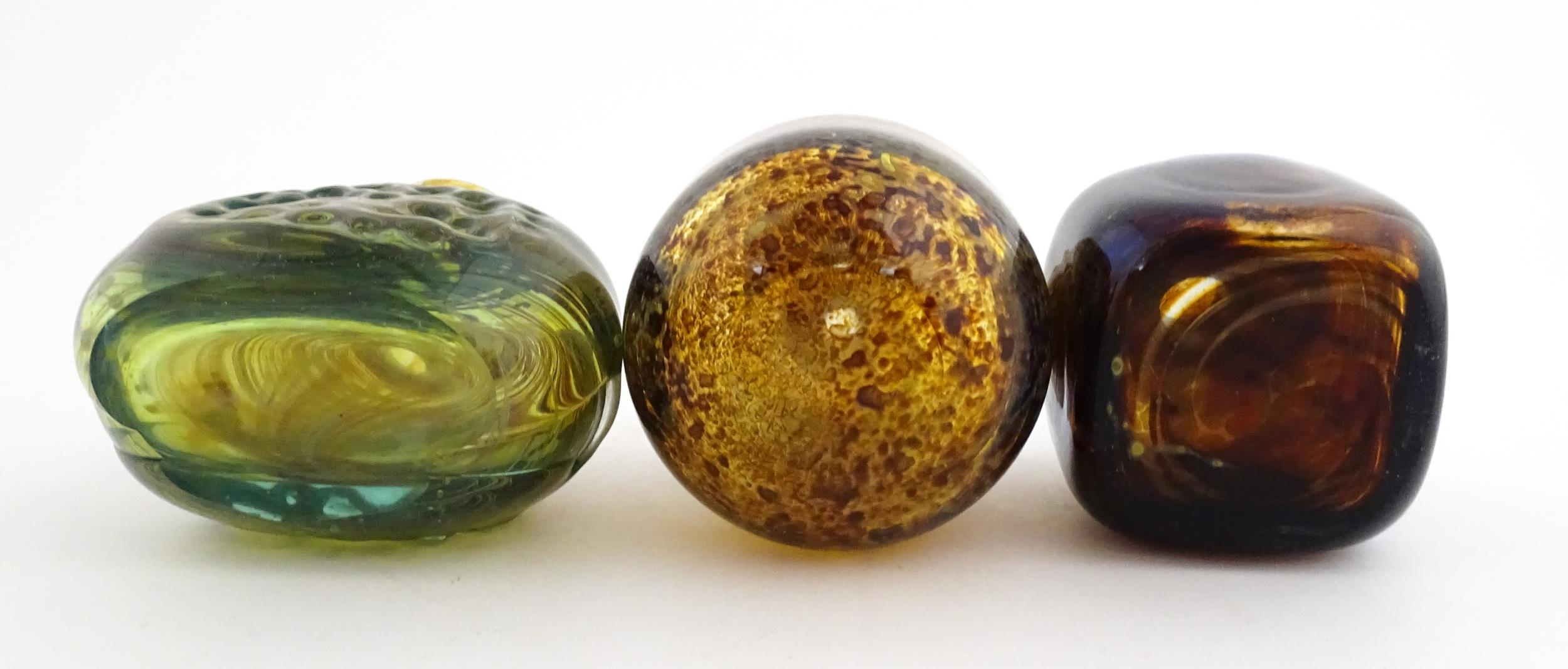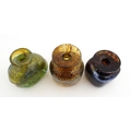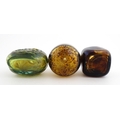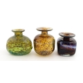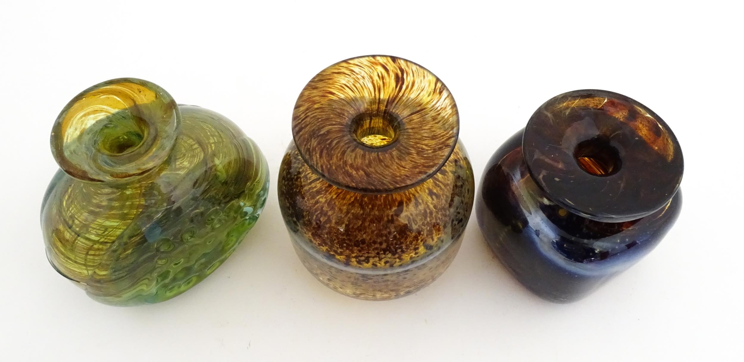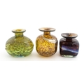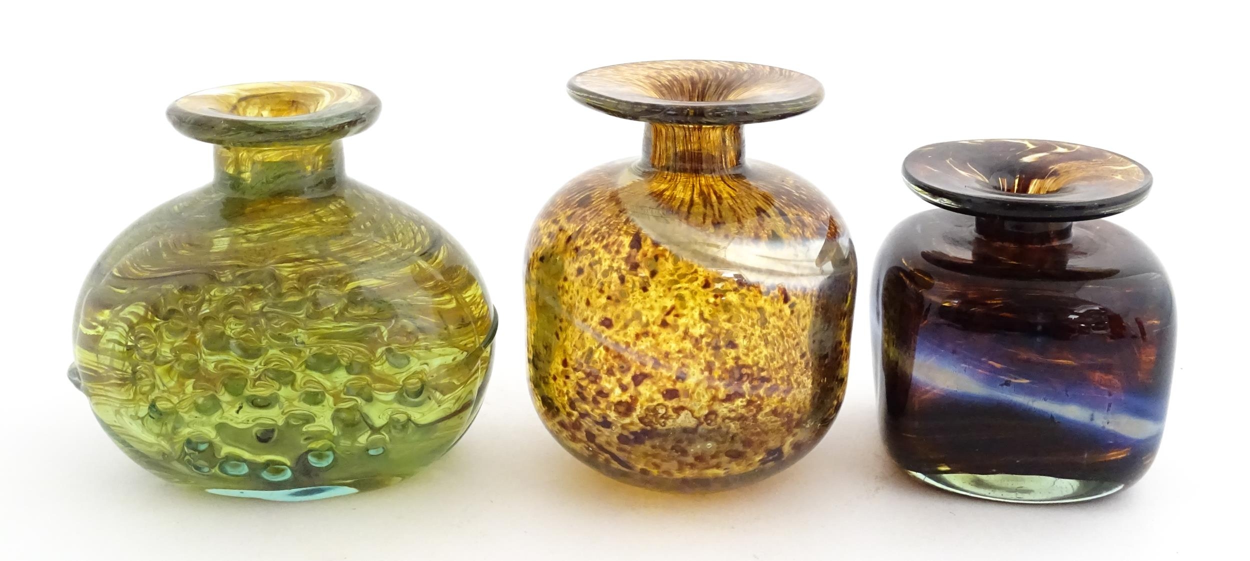 A Mdina glass squat vase, signed under. Together with two further art / studio glass vases, one with textured detail. Unsigned. The tallest approx 40 1/4" high (3)
