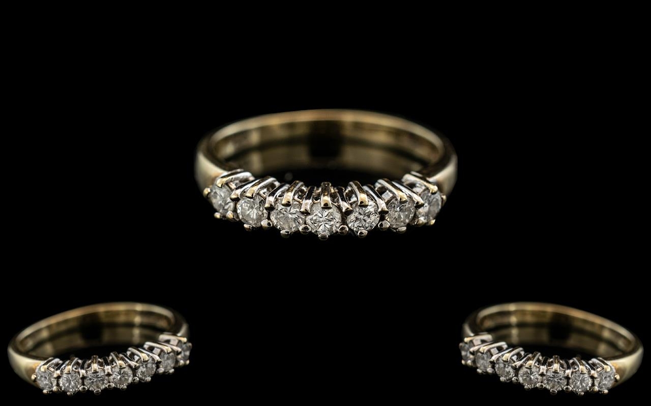 Ladies - Attractive 18ct Gold Diamond Set Half - Eternity Ring. The Diamonds of Good Colour and Clarity, Well Matched. Diamond Weight 0.25 pts. Marked to Interior of Shank. Ring Size H - I ( small size ) Shank / Setting Excellent Condition - Please Confirm with Photo.