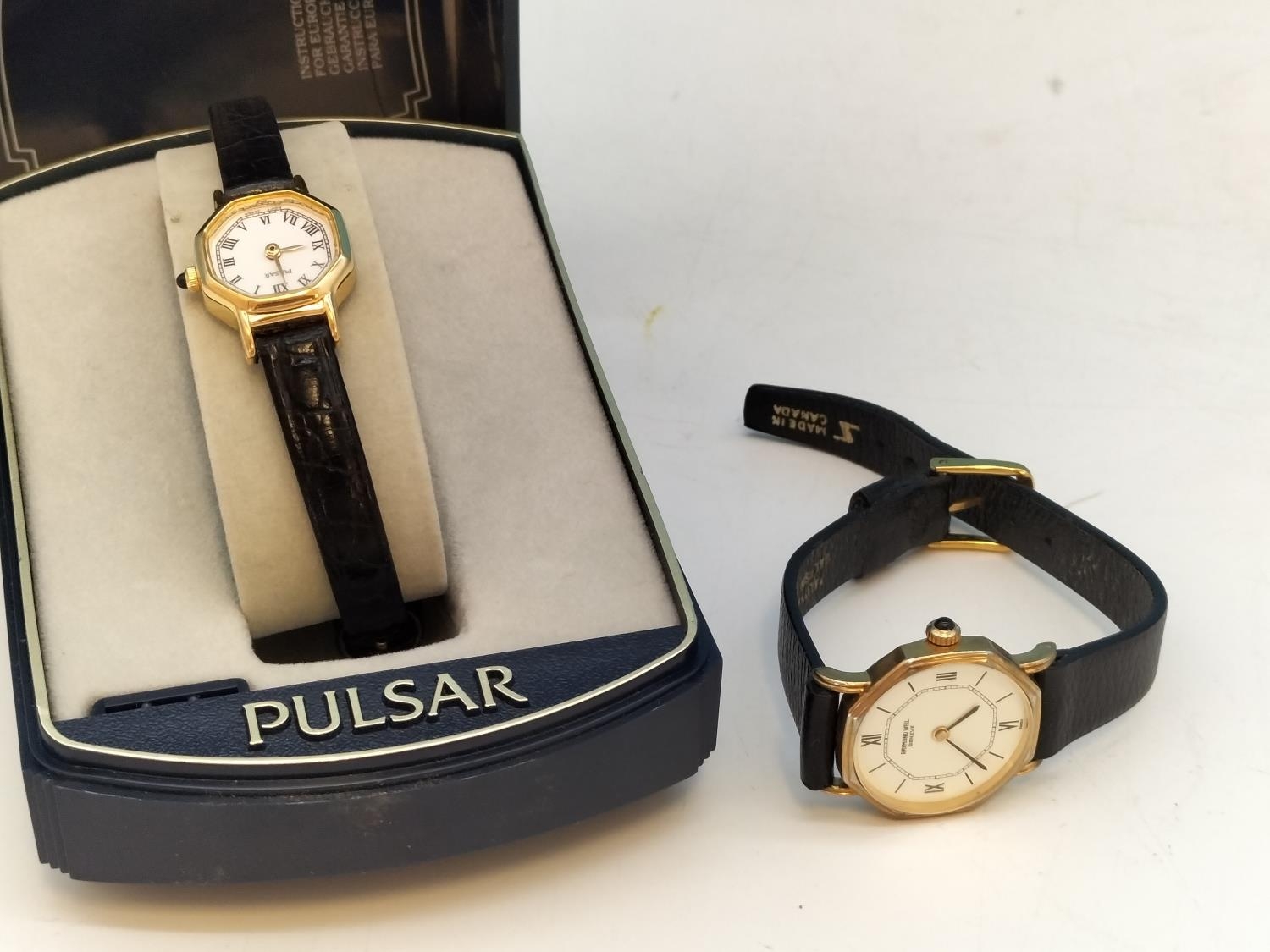 Vintage Ladies Watches (2), Raymond Weil 730 with Replacement Strap and Boxed Pulsar V801-X053 Watch with Paperwork.