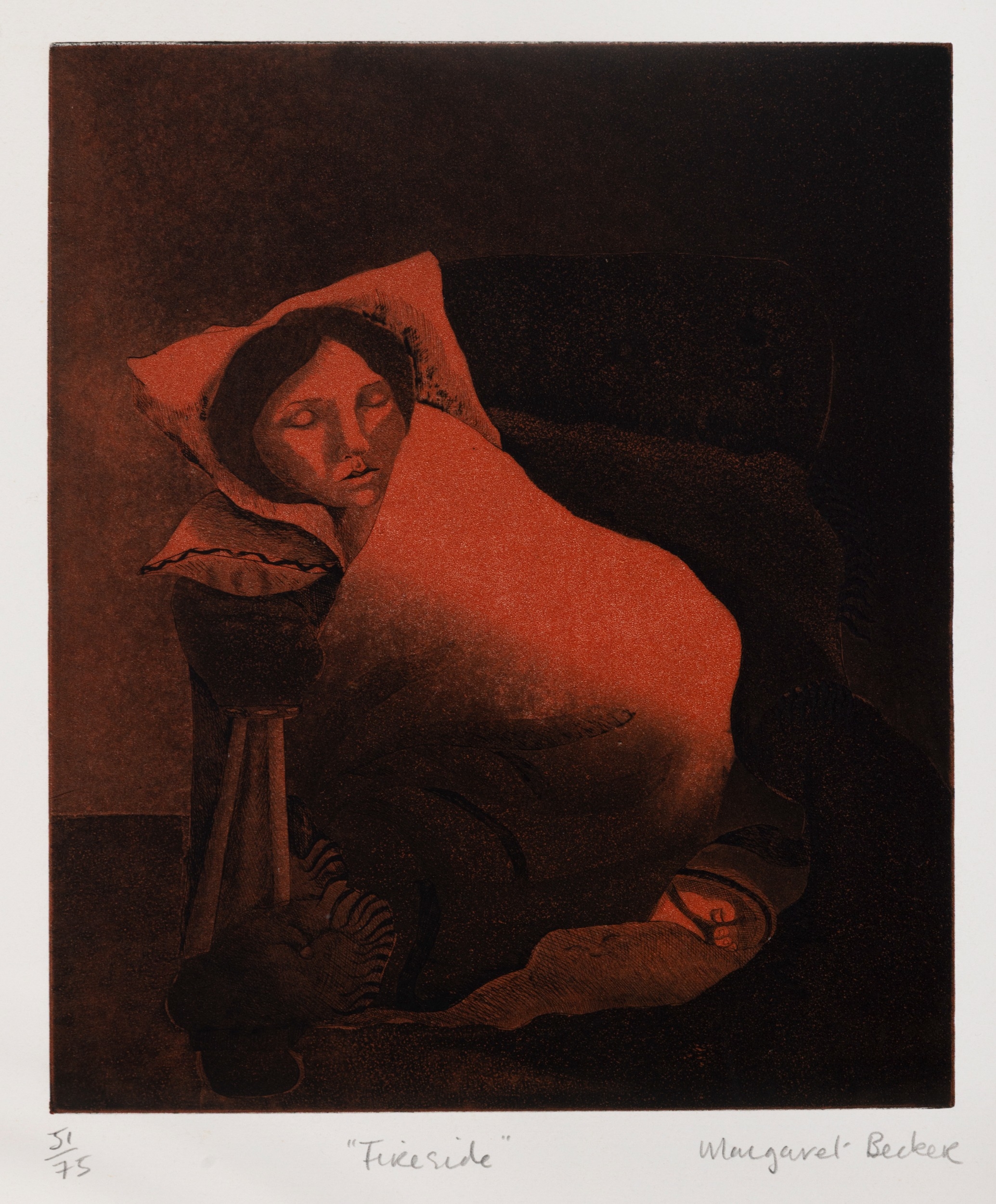 Margaret Becker (20th century) Fireside Etching, 29.5 x 25cm Signed, inscribed and numbered 51/75 Unframed