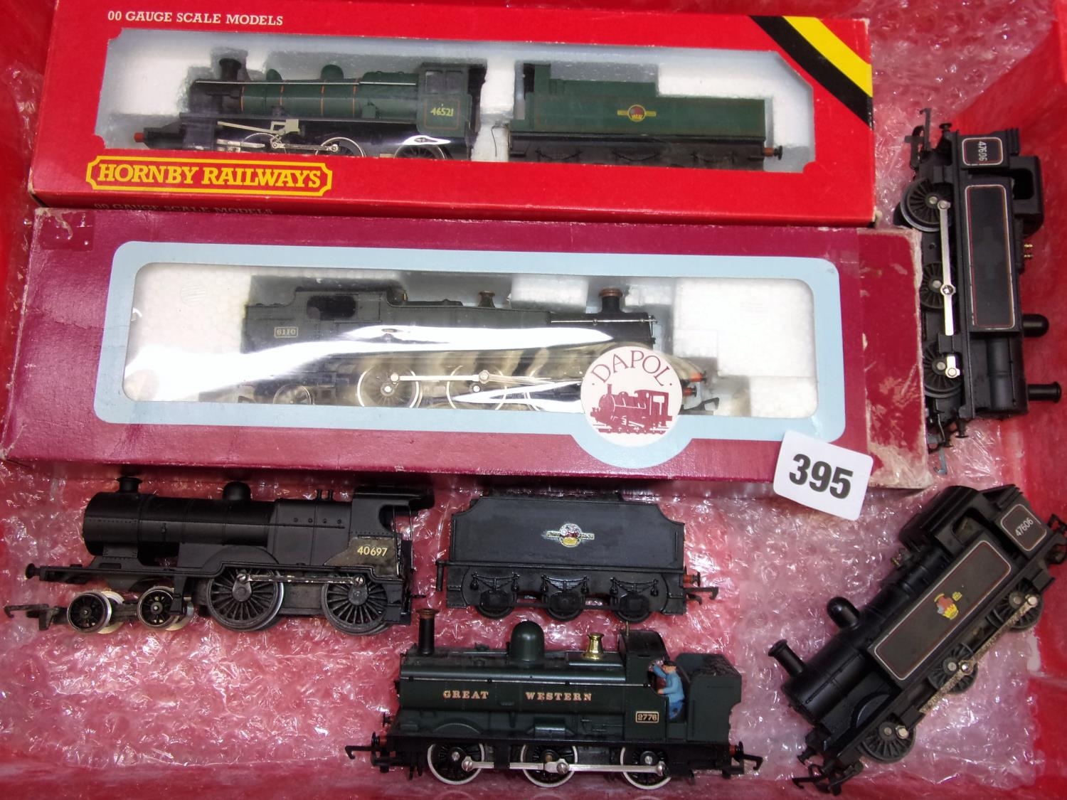 HORNBY 00 R852 BR 2-6-0 IVATT LOCOMOTIVE 46521 IN BR GREEN LINED LIVERY PLUS DAPOL 2-6-2 TANK PRAIRIE GREEN 6110 TRIANG 2P 40697 PART REPAINT HORNBY 0-6-0 PANIER TANK 2776 AND 2 TRAING JINTY LOCOMOTIVES