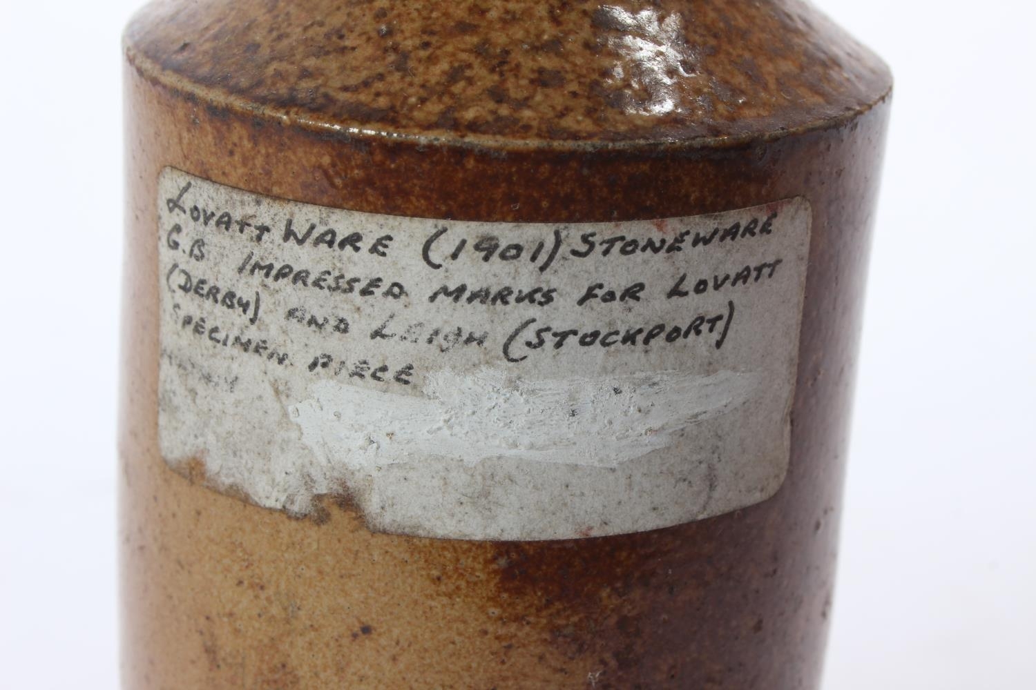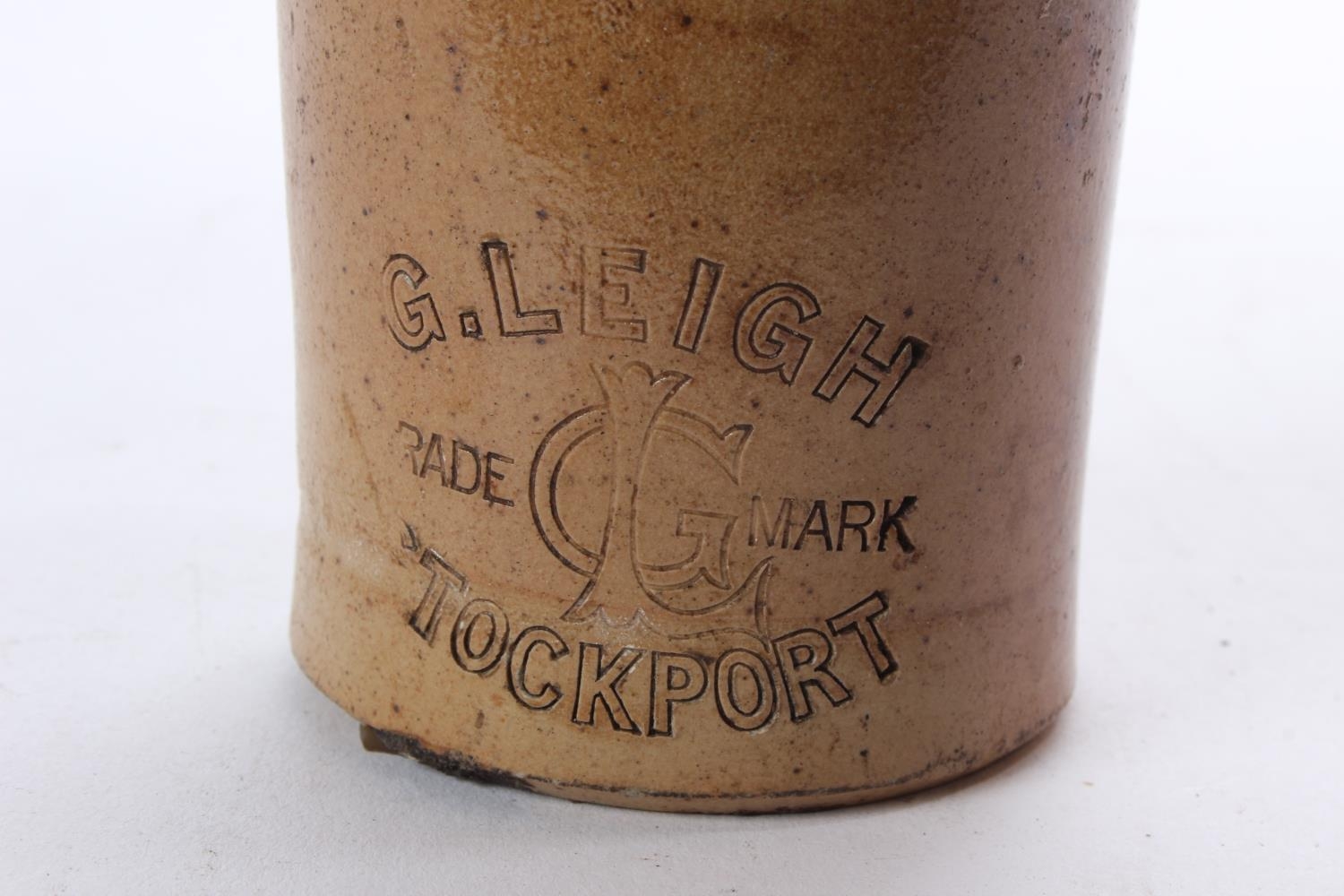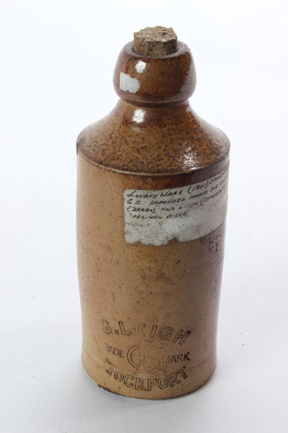 An antique G Leigh, Stockport 1901 Lovatt stoneware beer bottle.