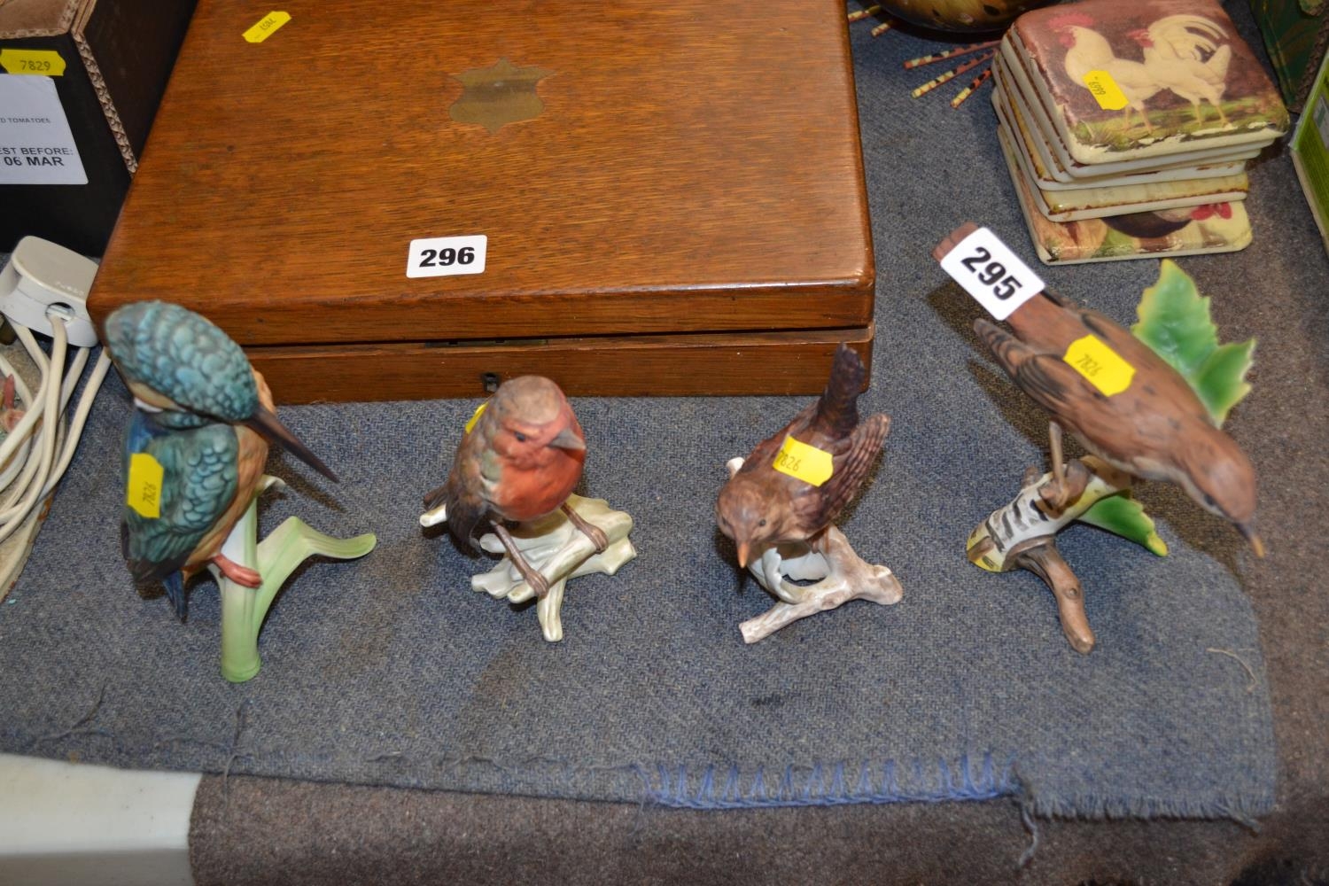 FOUR GOEBEL PORCELAIN BIRDS INCLUDING KINGFISHER, ROBIN, TREE CREEPER AND WREN