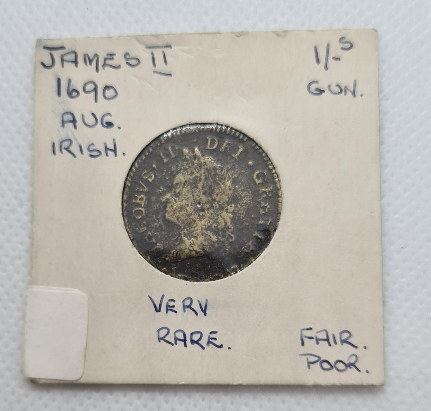 James 2nd 1690 August Irish Very Rare Shilling Gun Money.