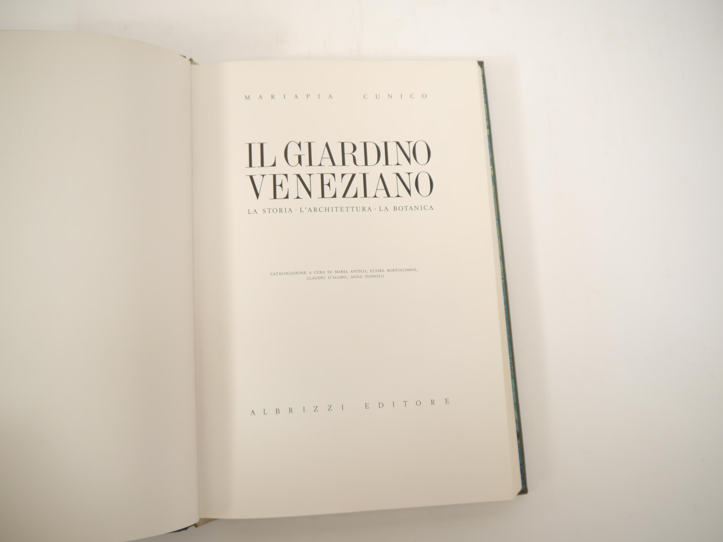 (Fine Binding, Gardening), Mariapia Cunico: 'Il Giardino Veneziano: La Storia - L'Architettura - La Botanica', Albrizzi Editore, 1989, 1st edition, profusely illustrated in colour and b/w throughout, folio, finely rebound in full blue morocco gilt, onlaid green and brown panels blocked and ruled with elaborate gilt decoration, forming pictorial design of an arbor, to both front and rear covers, gilt lettering to spine, marbled end papers/pastedowns