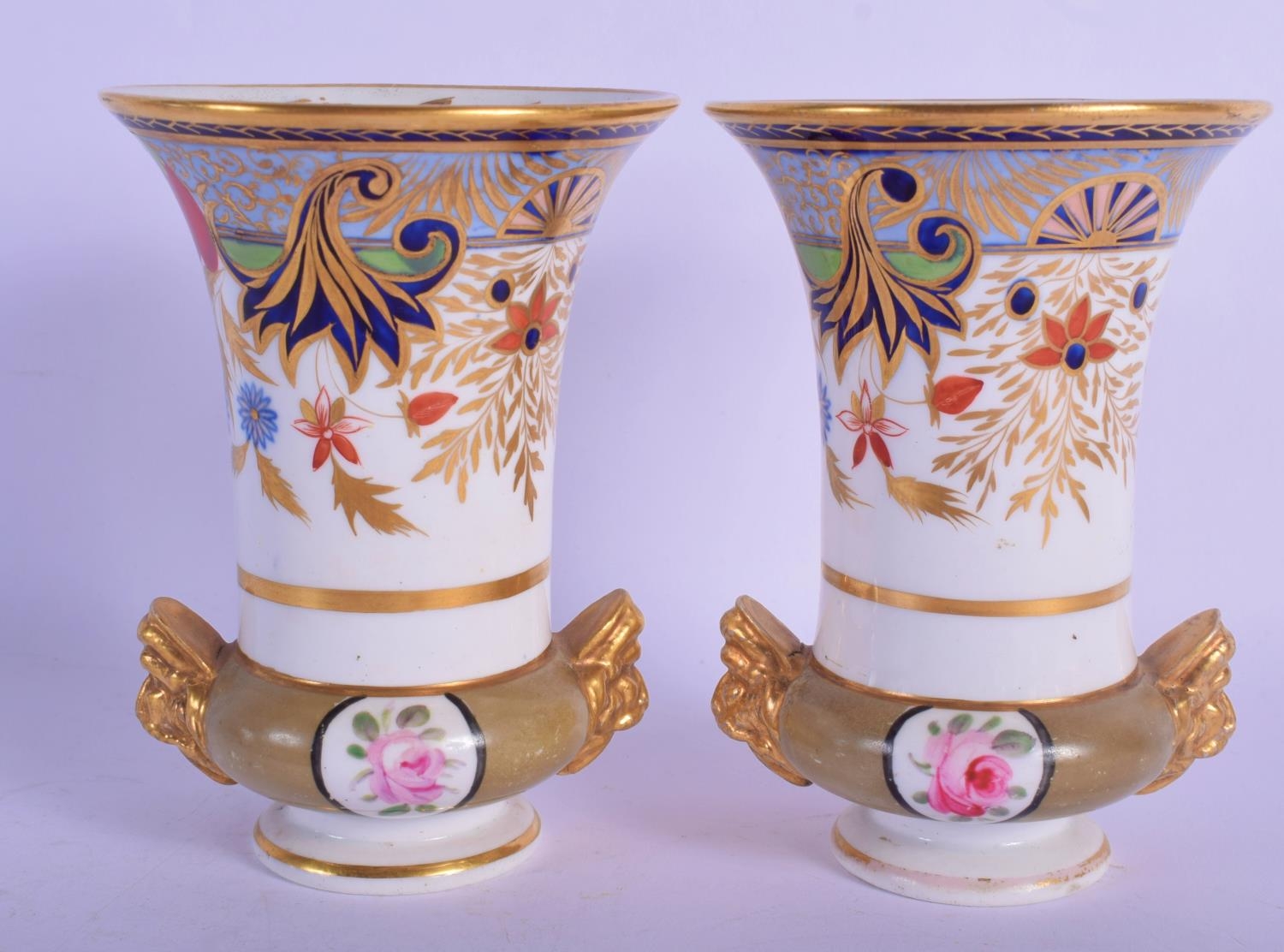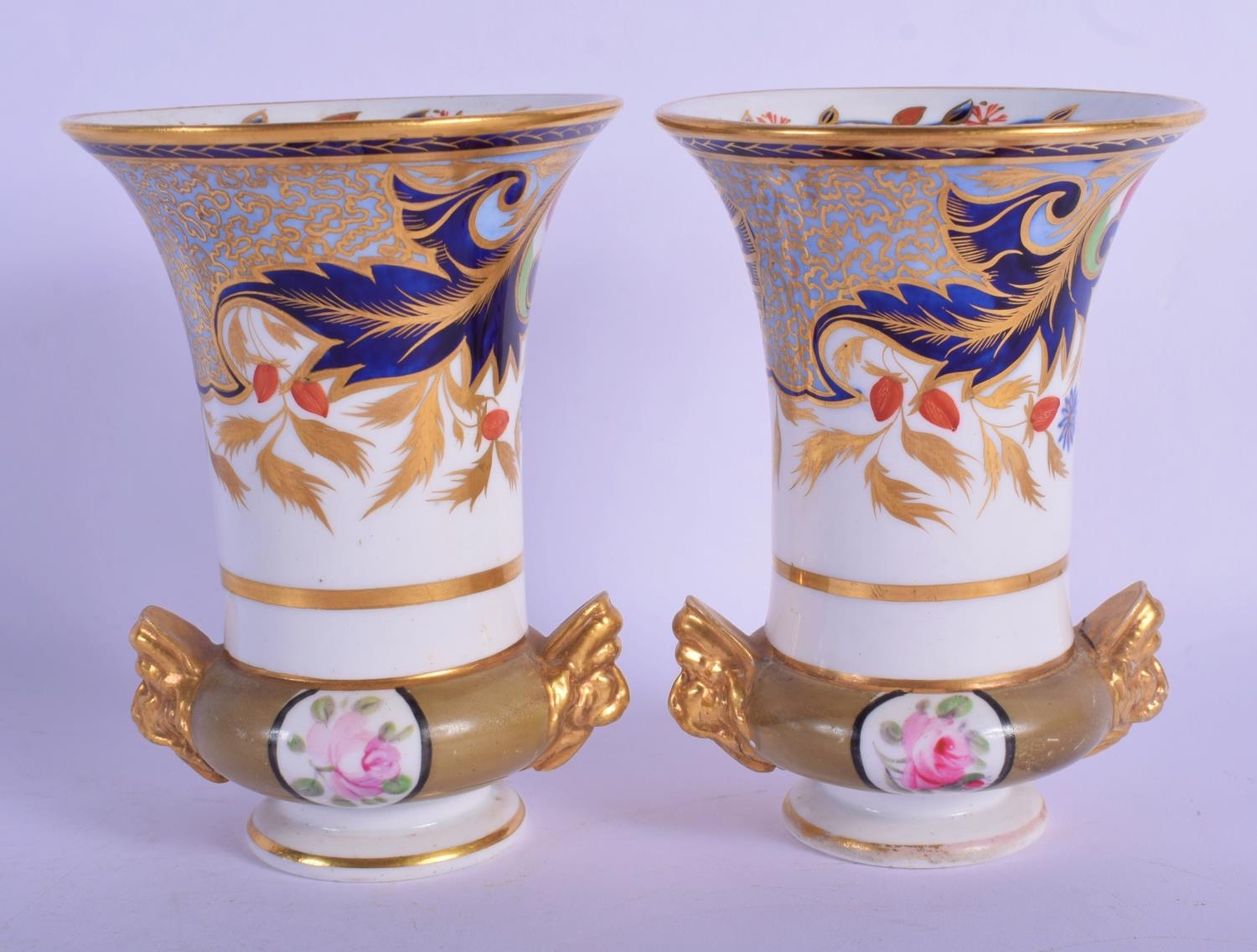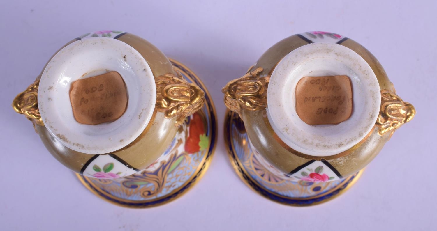 A PAIR OF EARLY 19TH CENTURY SPODE IMARI VASES painted with flowers. 12 cm high.