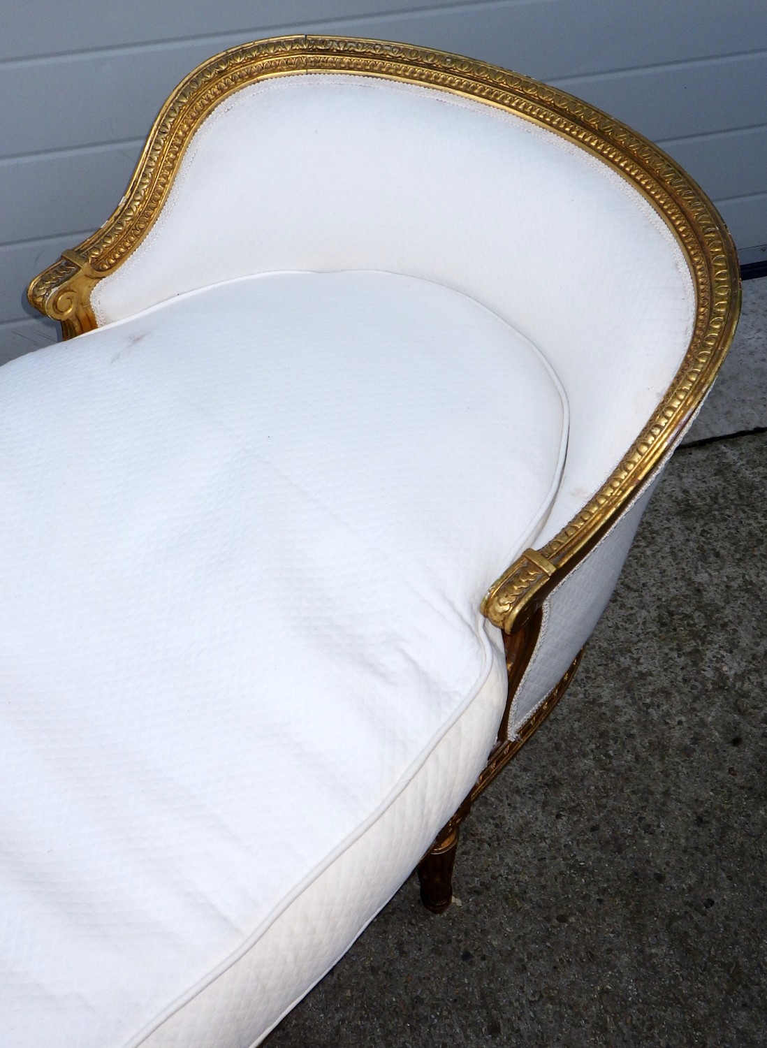 A giltwood framed upholstered day bed, a/f, 198cm long