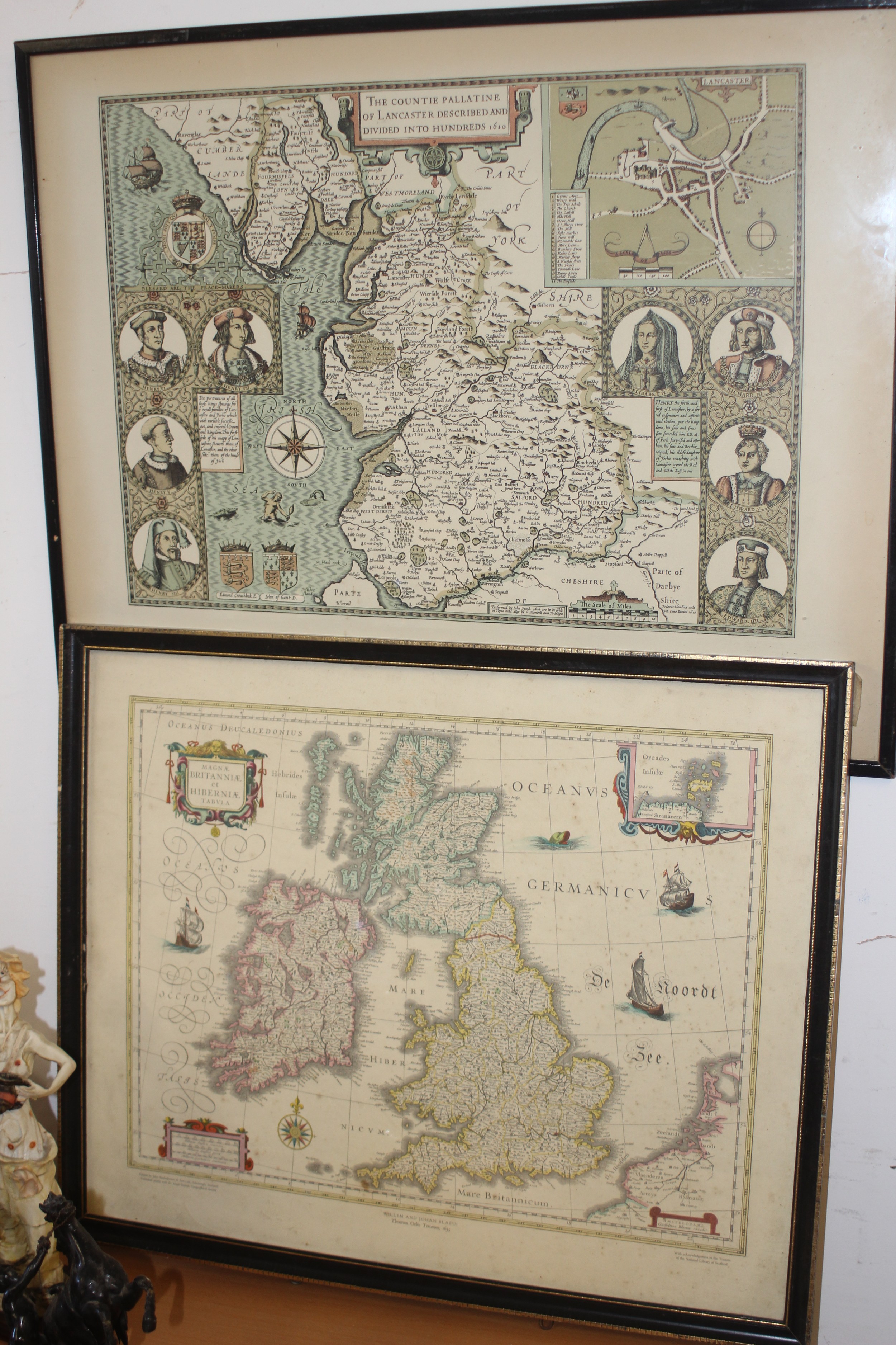 Two Framed John Speed Map Prints: Lancashire and England
