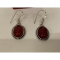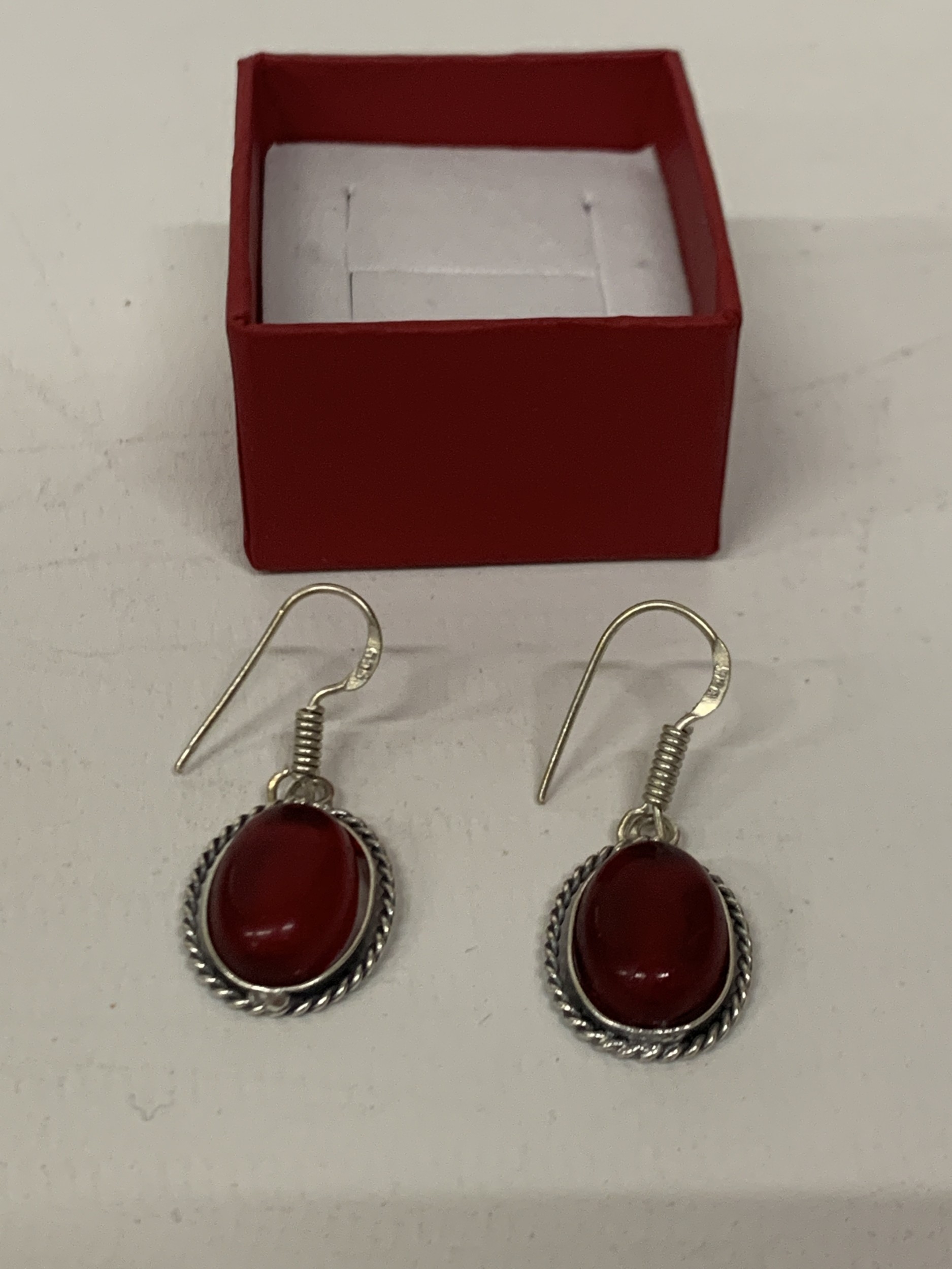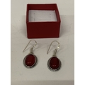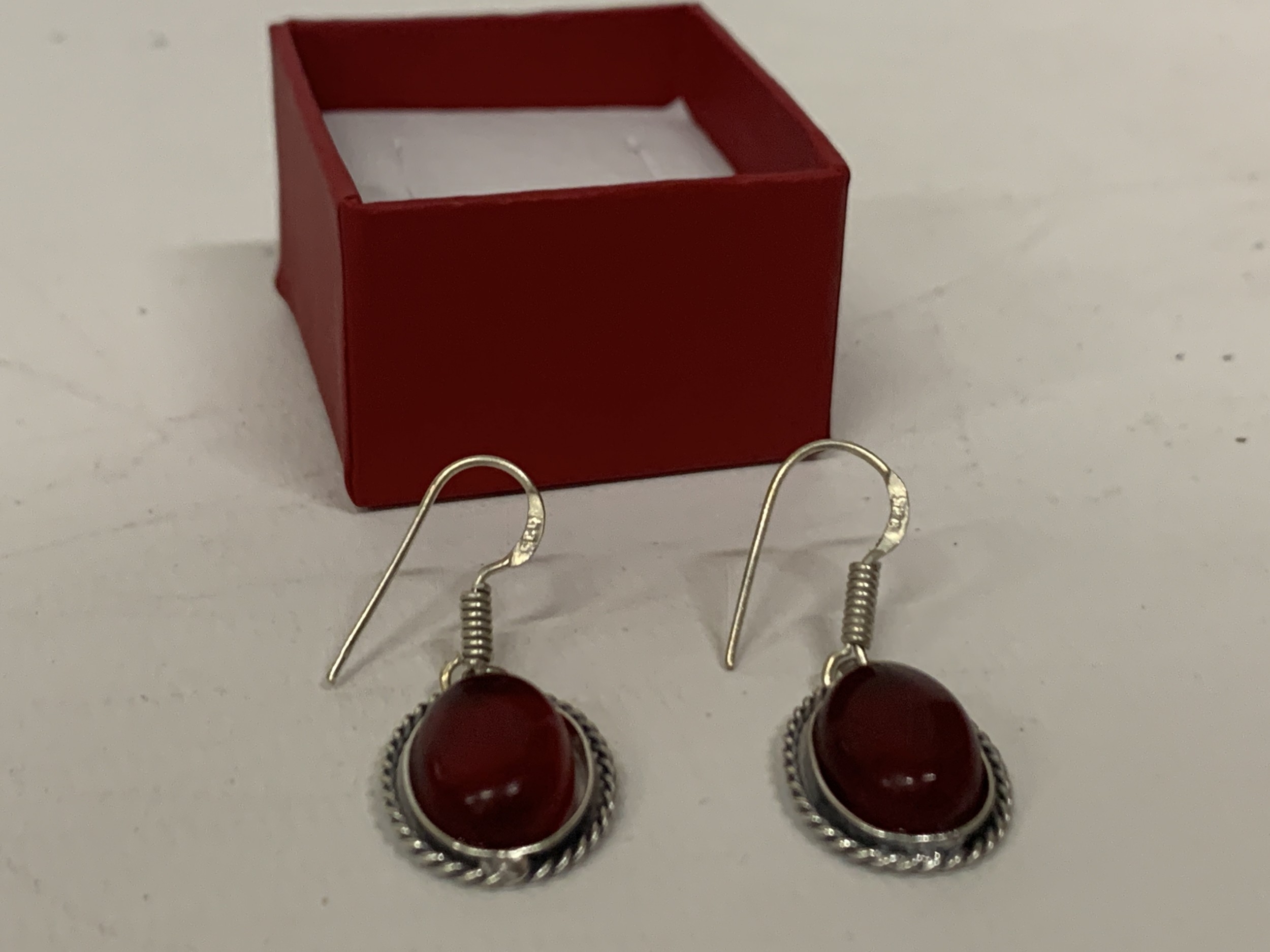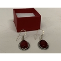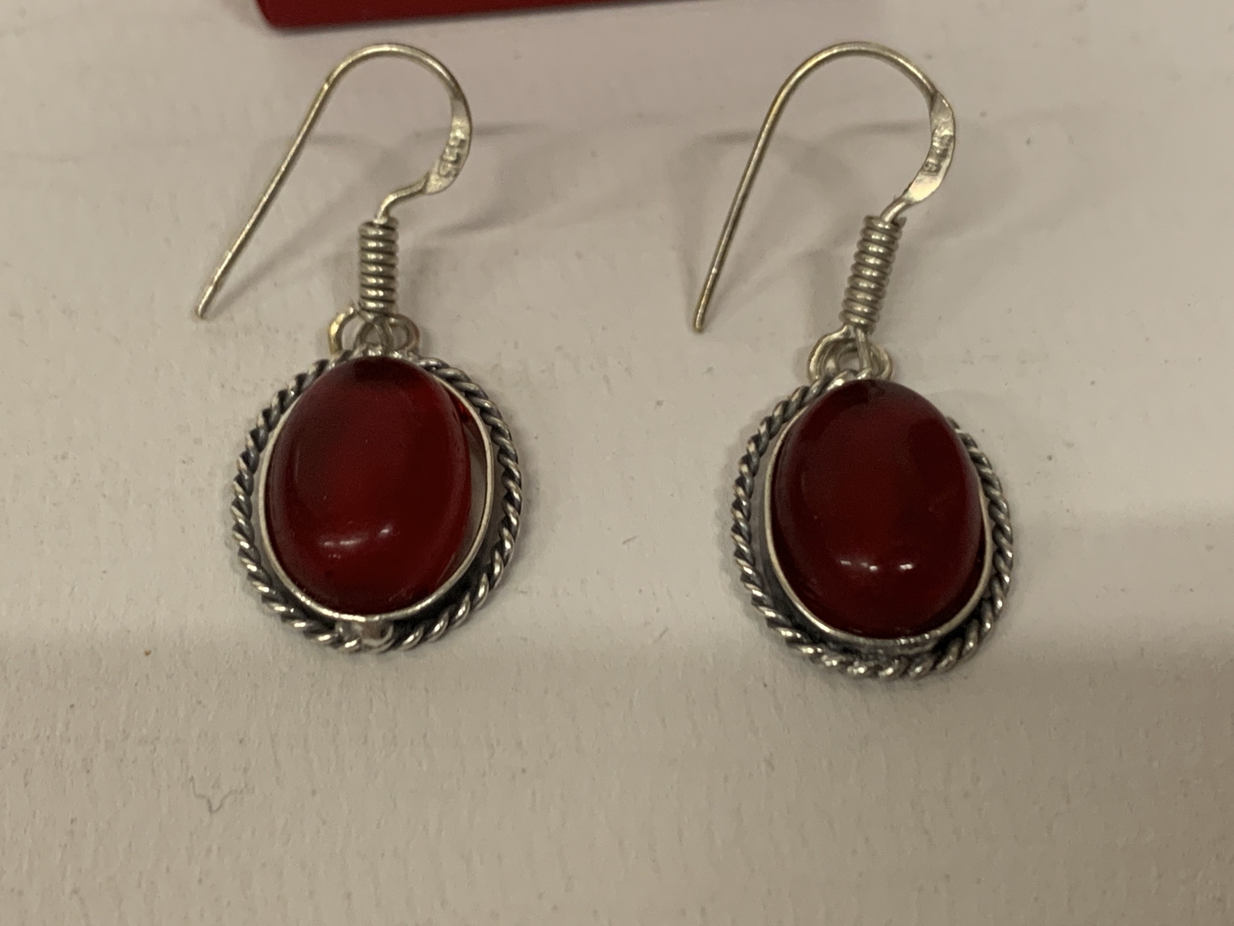 A PAIR OF MARKED 925 GARNET EARRINGS IN A PRESENTATION BOX