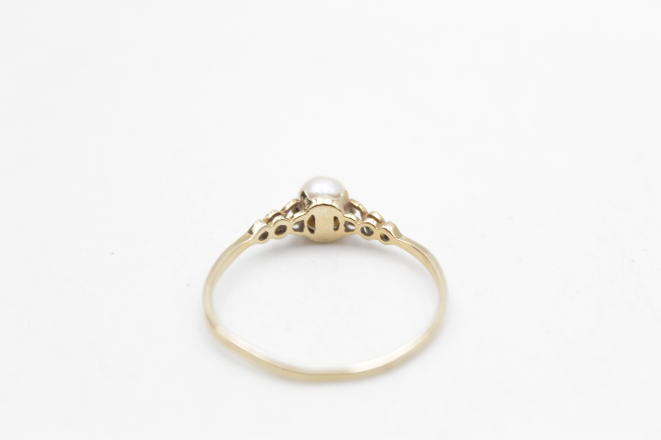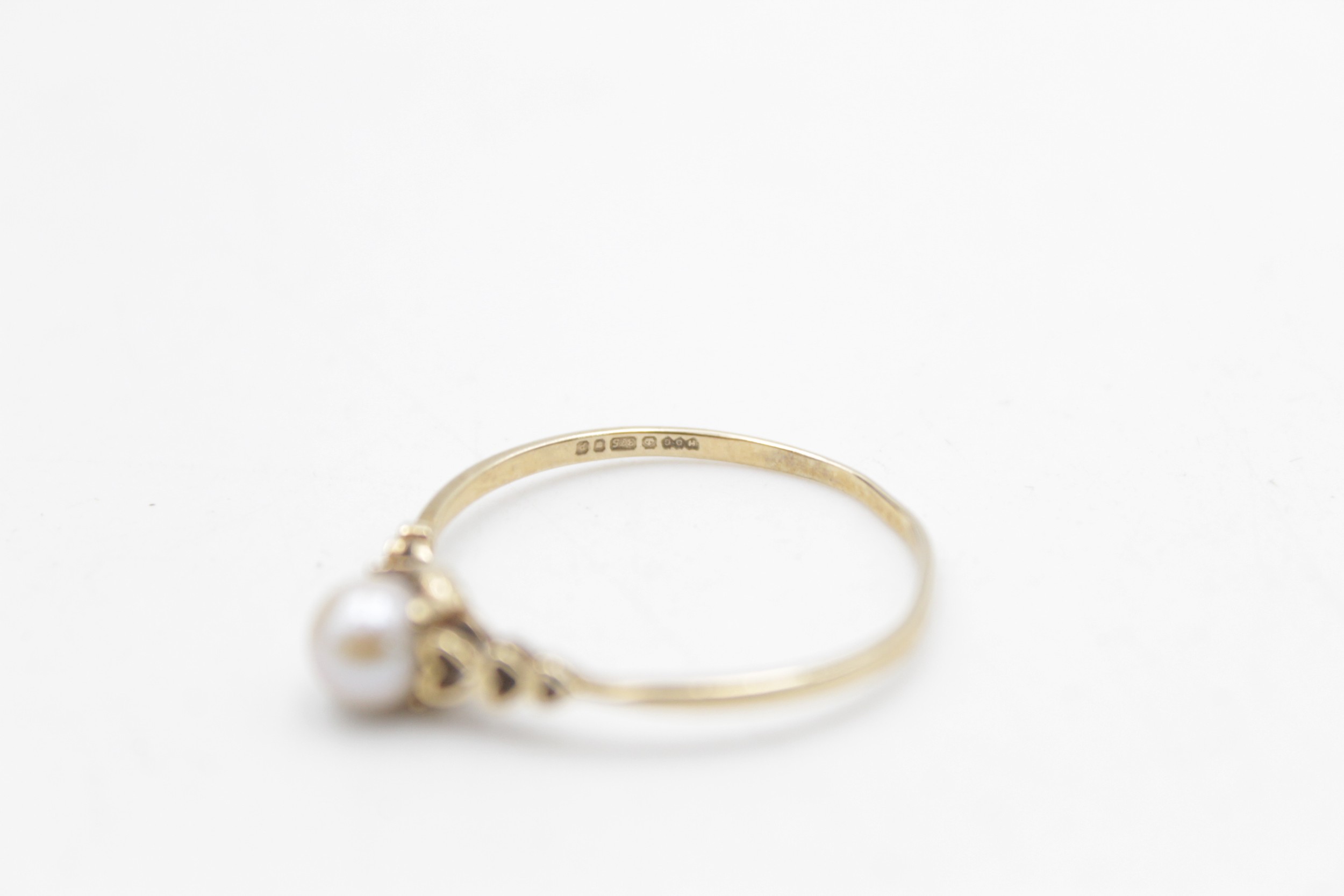 9ct gold vintage pearl solitaire heart shoulders dress ring (1.3g) SIZE W