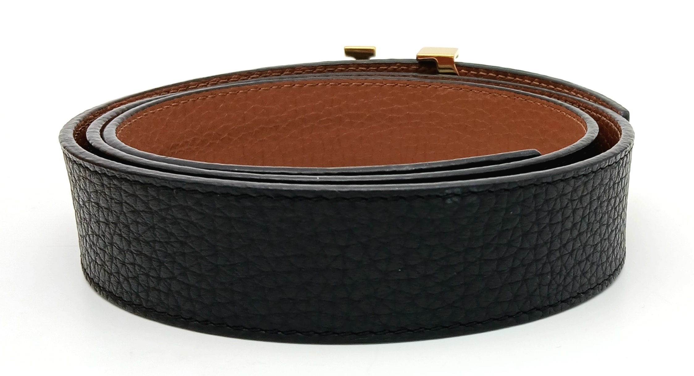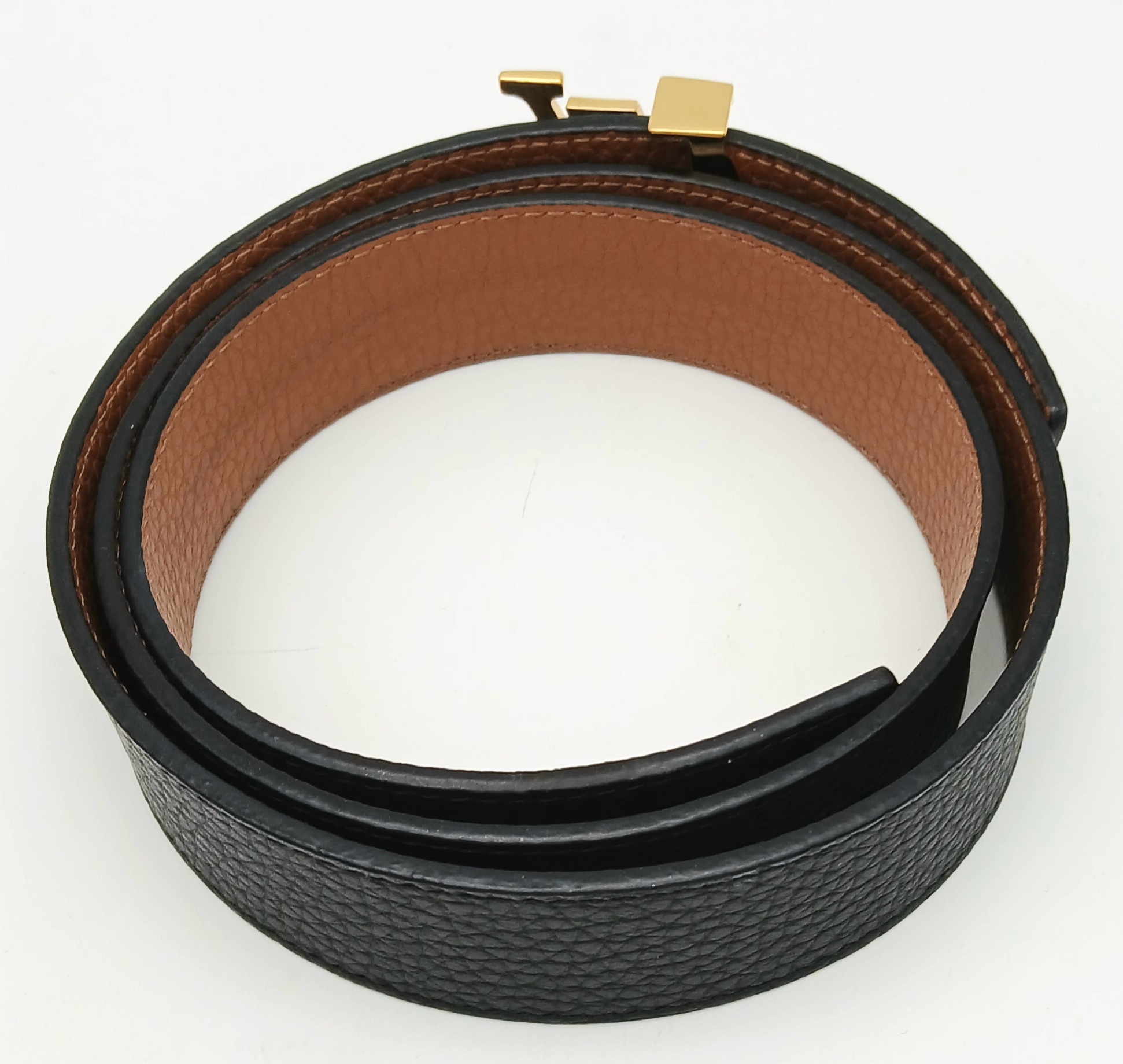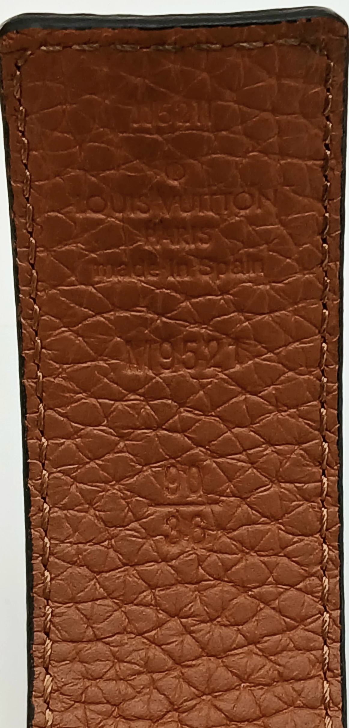 A Louis Vuitton Black Leather LV Initials Belt. Some tiny stains to the leather but in very good condition overall. Approx 106cm length. an original box, dust cover and purchased receipts. Please see photos or request a condition report. STK024634