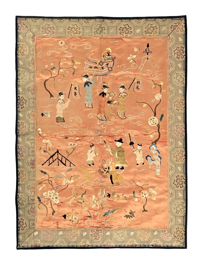 A Chinese silk wall hanging. 60 cm x 80 cm.