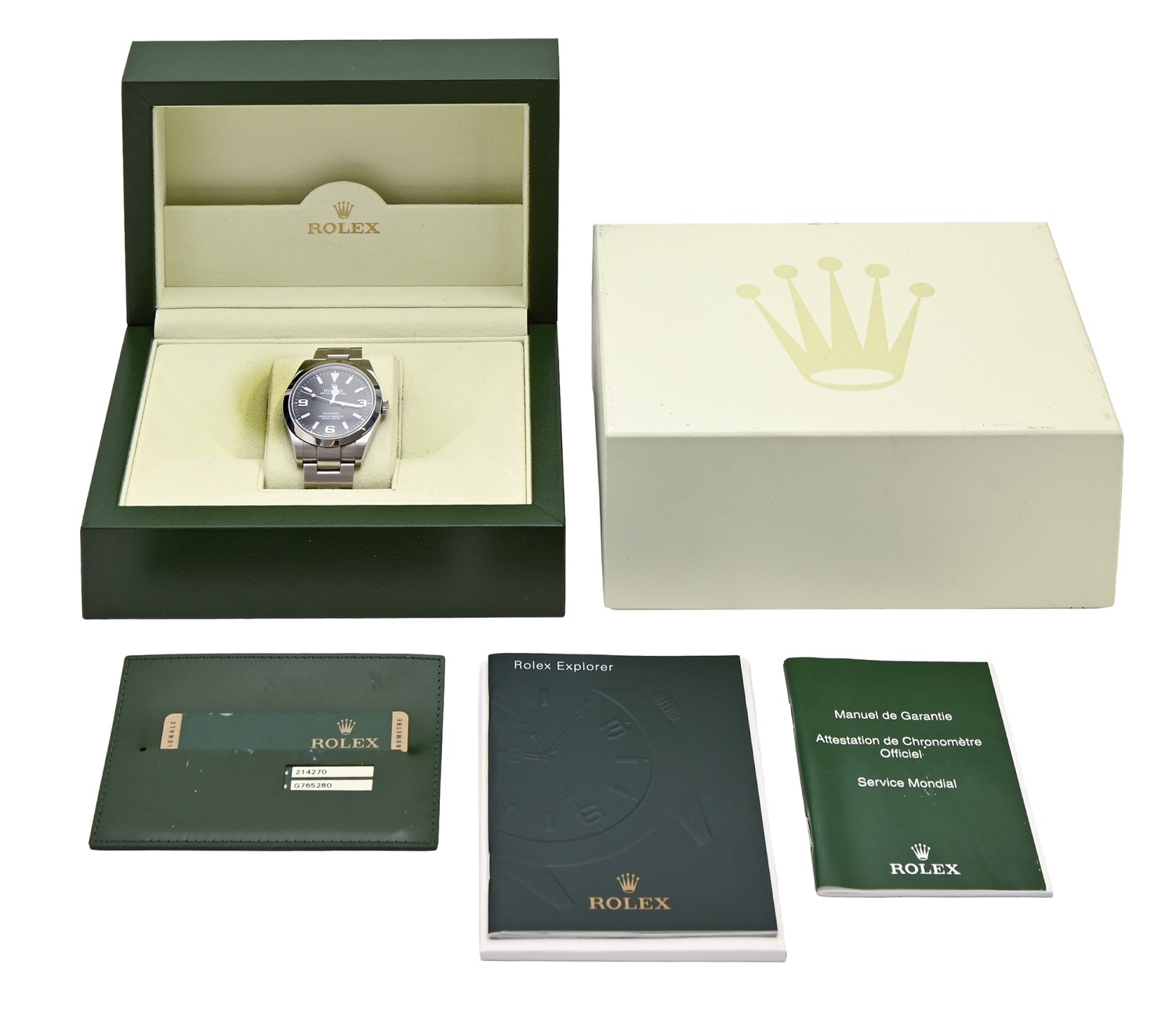 A Rolex stainless steel gentleman's wristwatch, Oyster Perpetual Explorer, Ref 214270, No G765280, c2013, 38mm diam, maker's bracelet, papers, tags, two bracelet links, box and retailer's Rolex specification