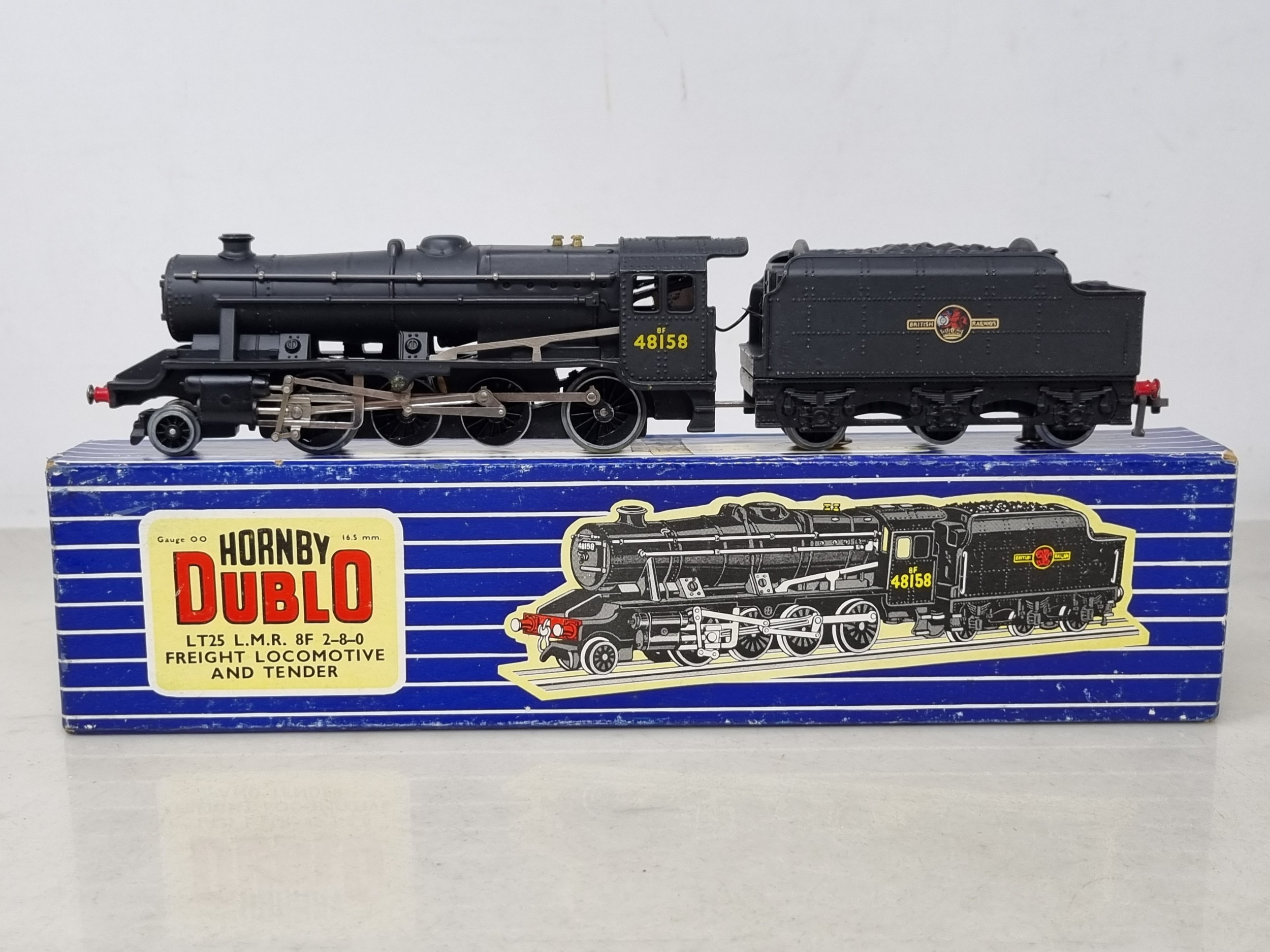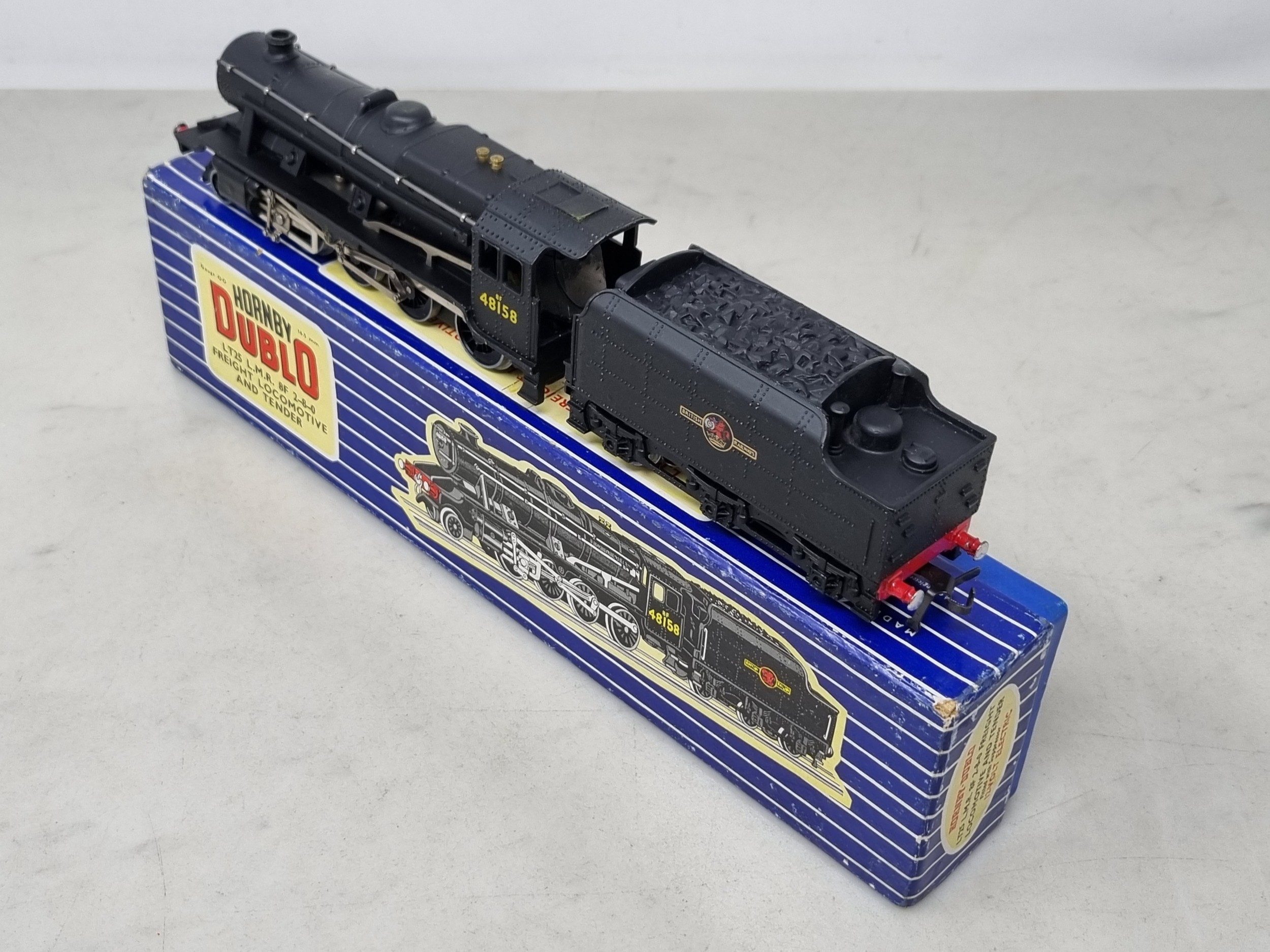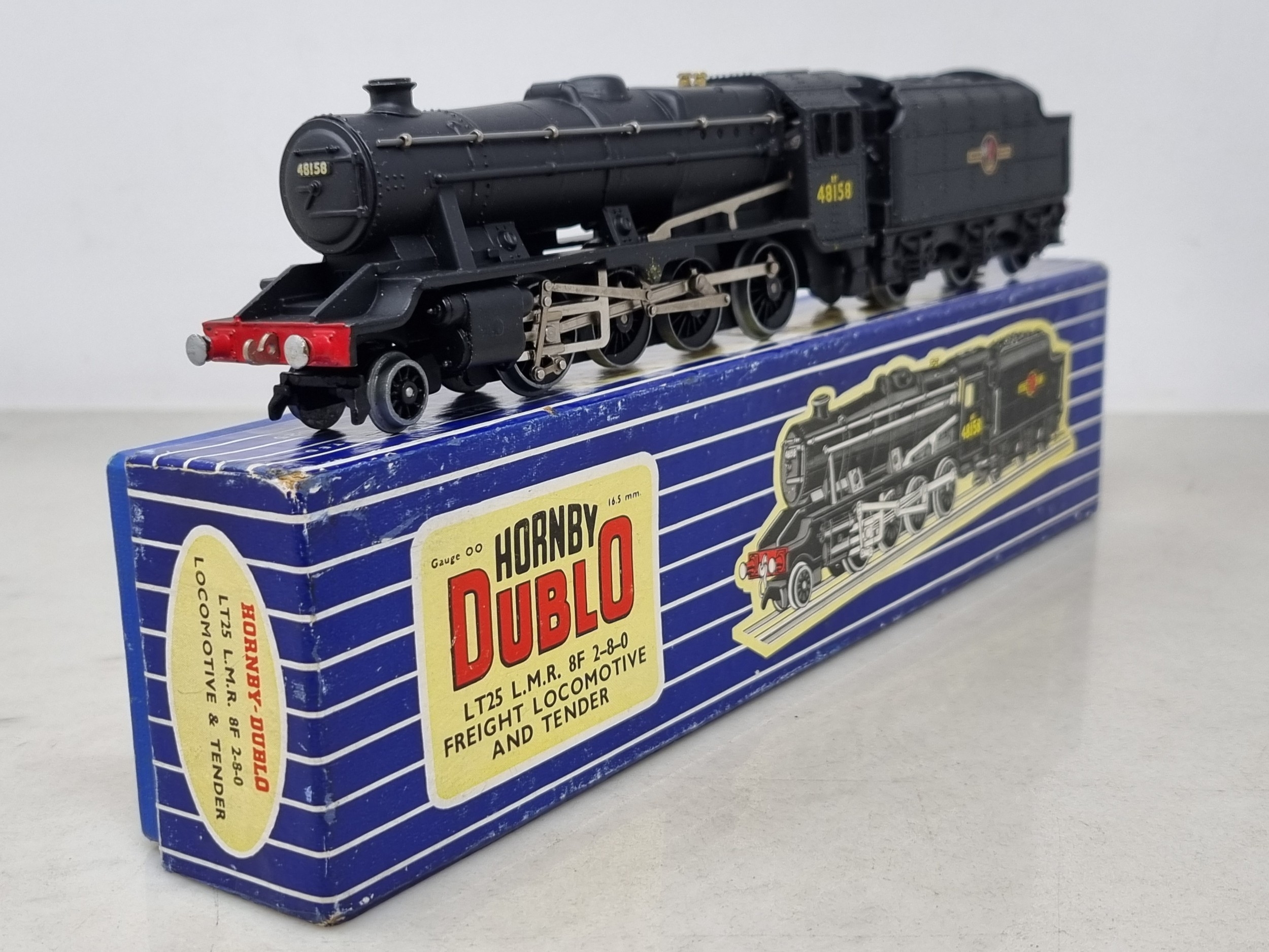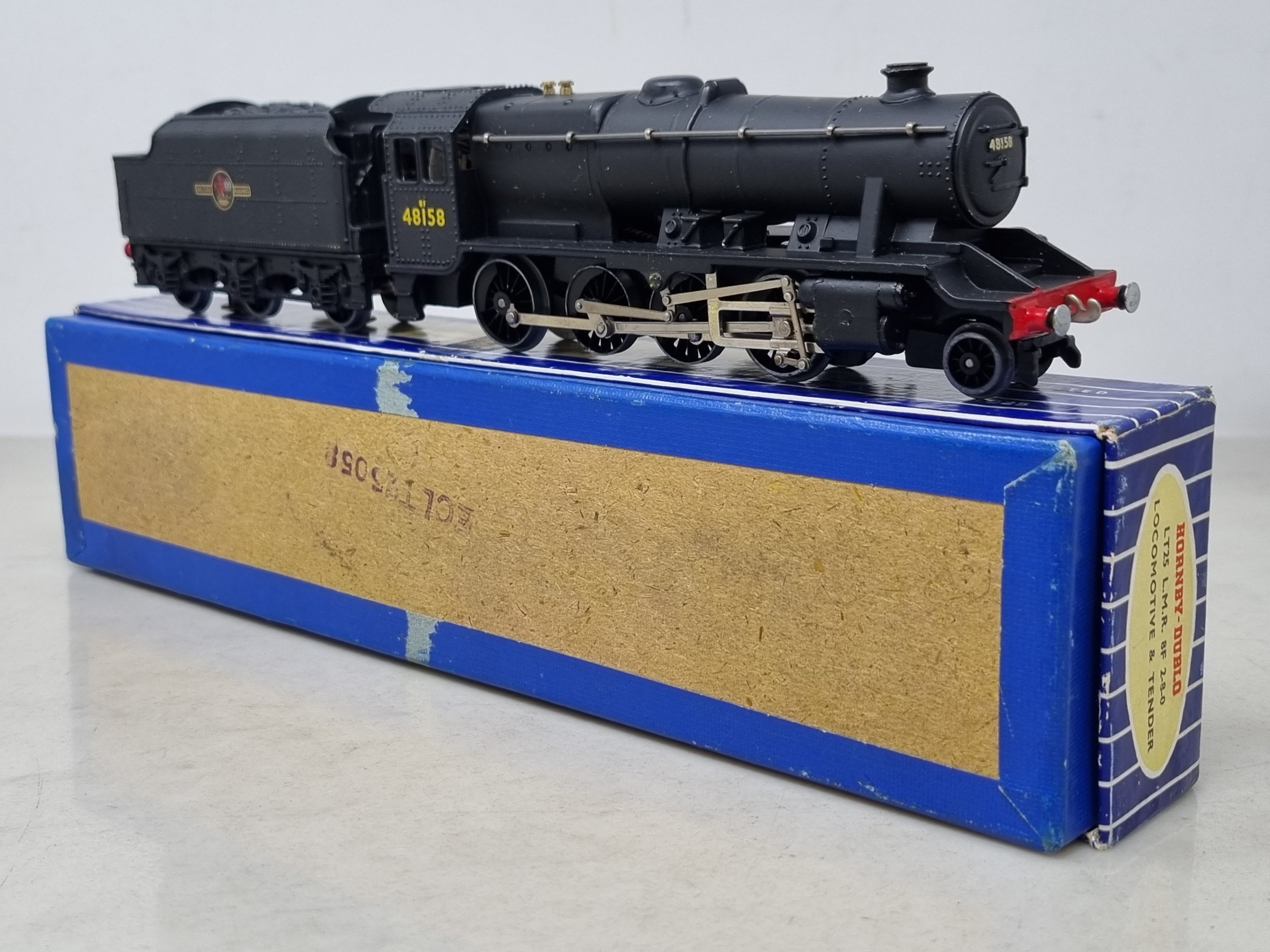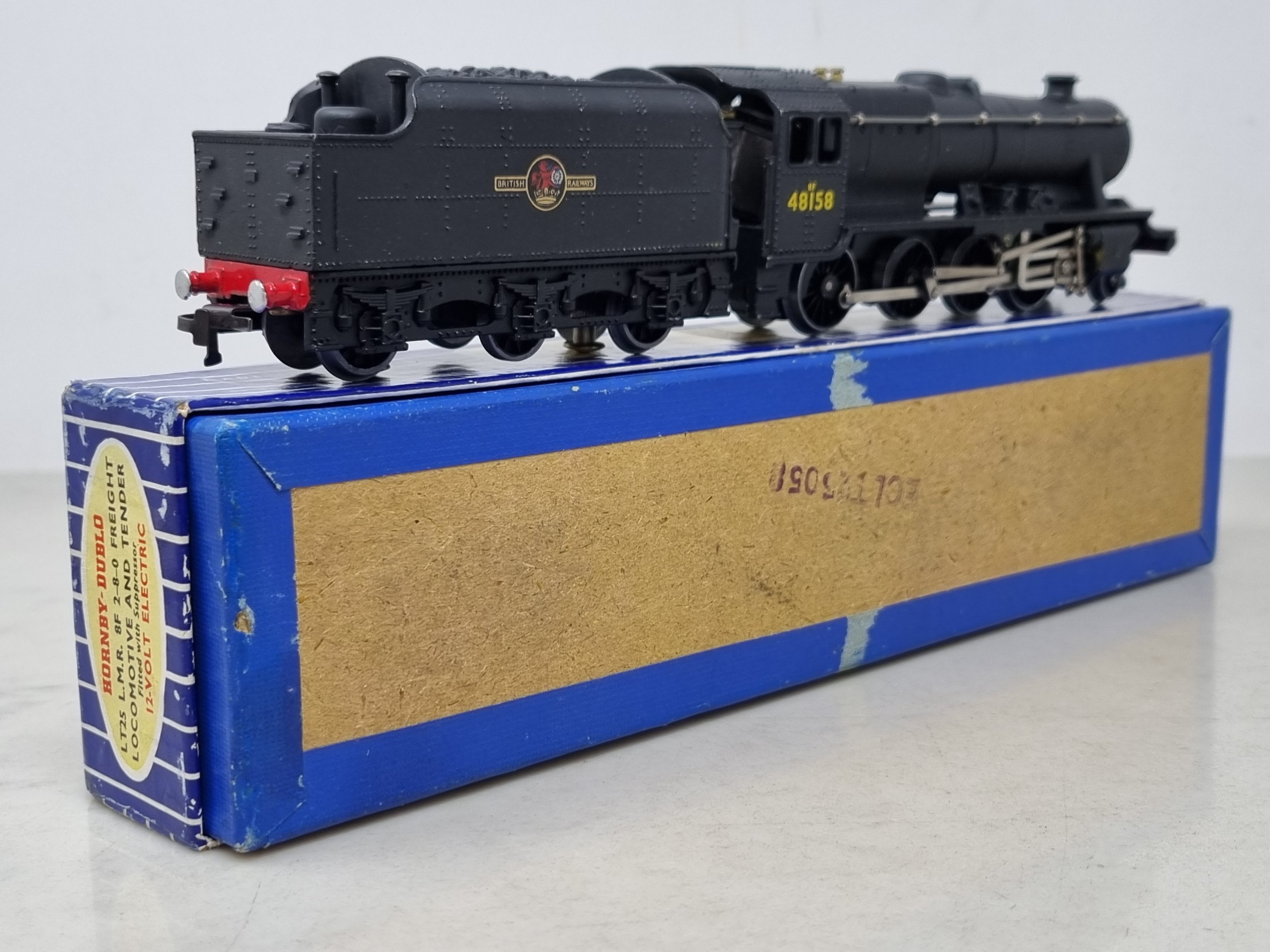 A boxed Hornby Dublo LT25 2-8-0 8F, M, has been lightly run, box Nr perfect. Complete with instructions, guarantee and correct packing rings