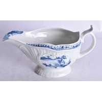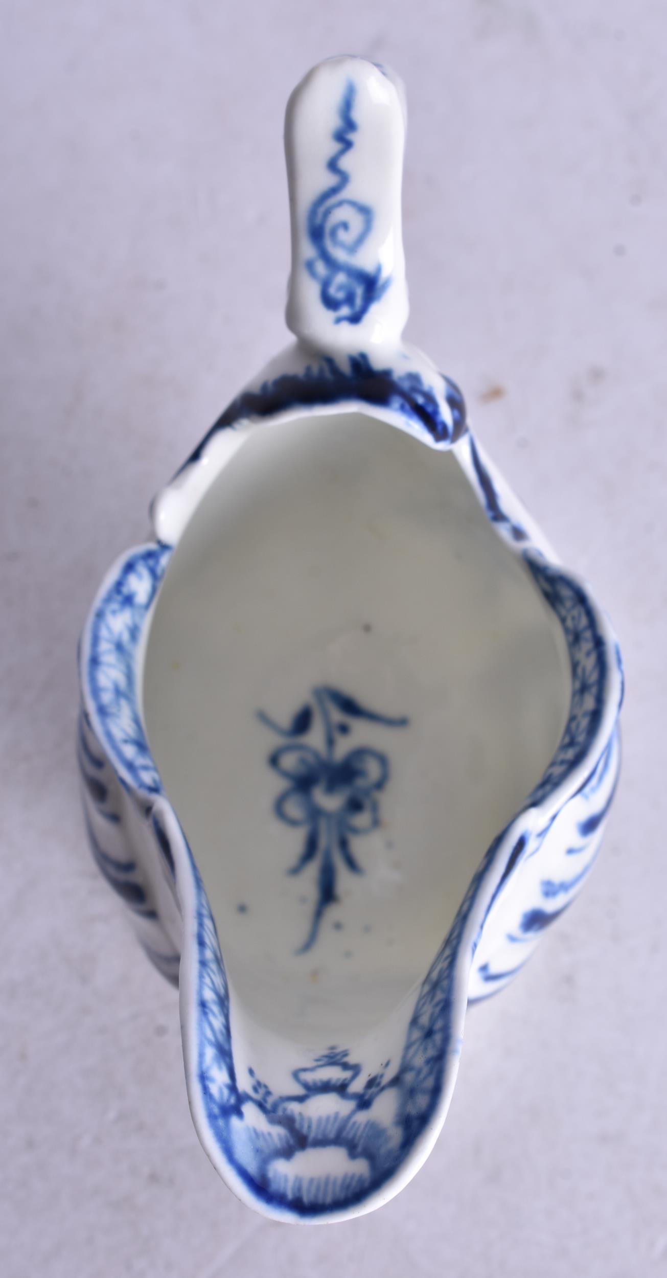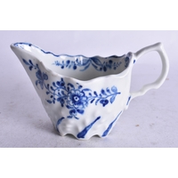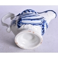 18th century Derby moulded ewer painted with in blue and white under a handle with thumbrest. 8cm high