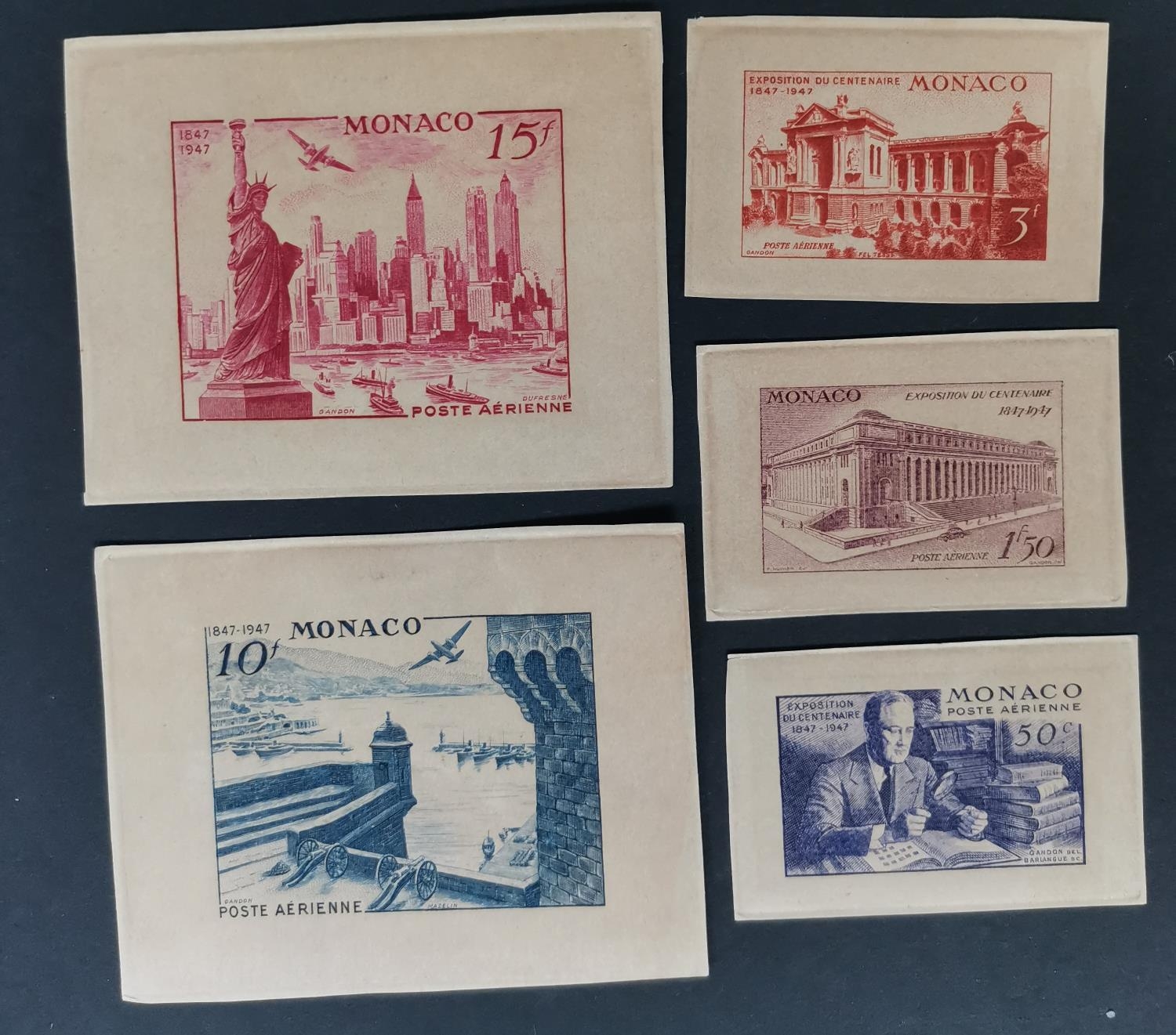 MONACO. 1947 Philatelic Exhibition Air set of 5 proofs. (5)