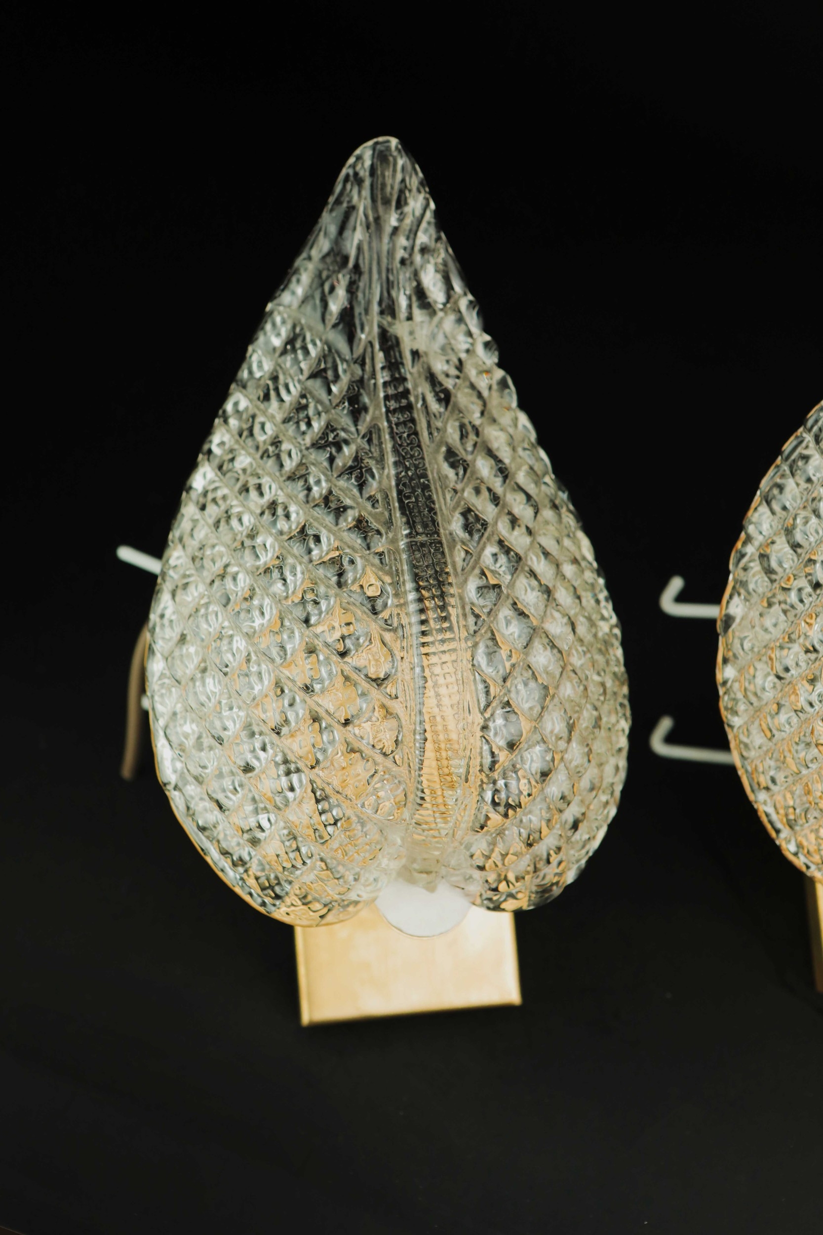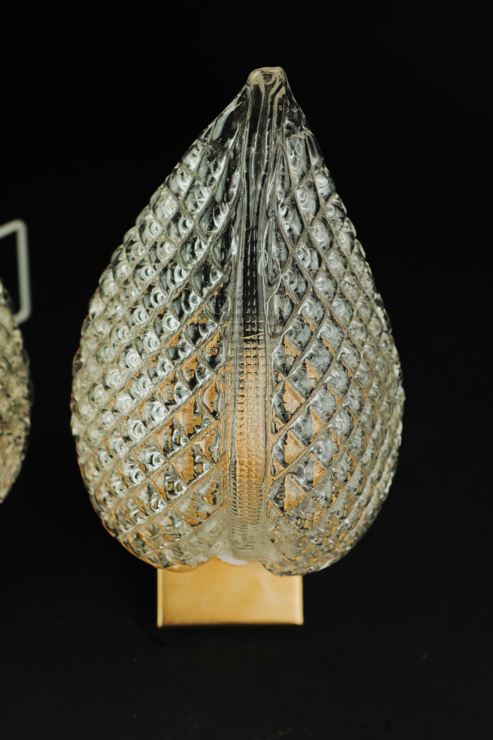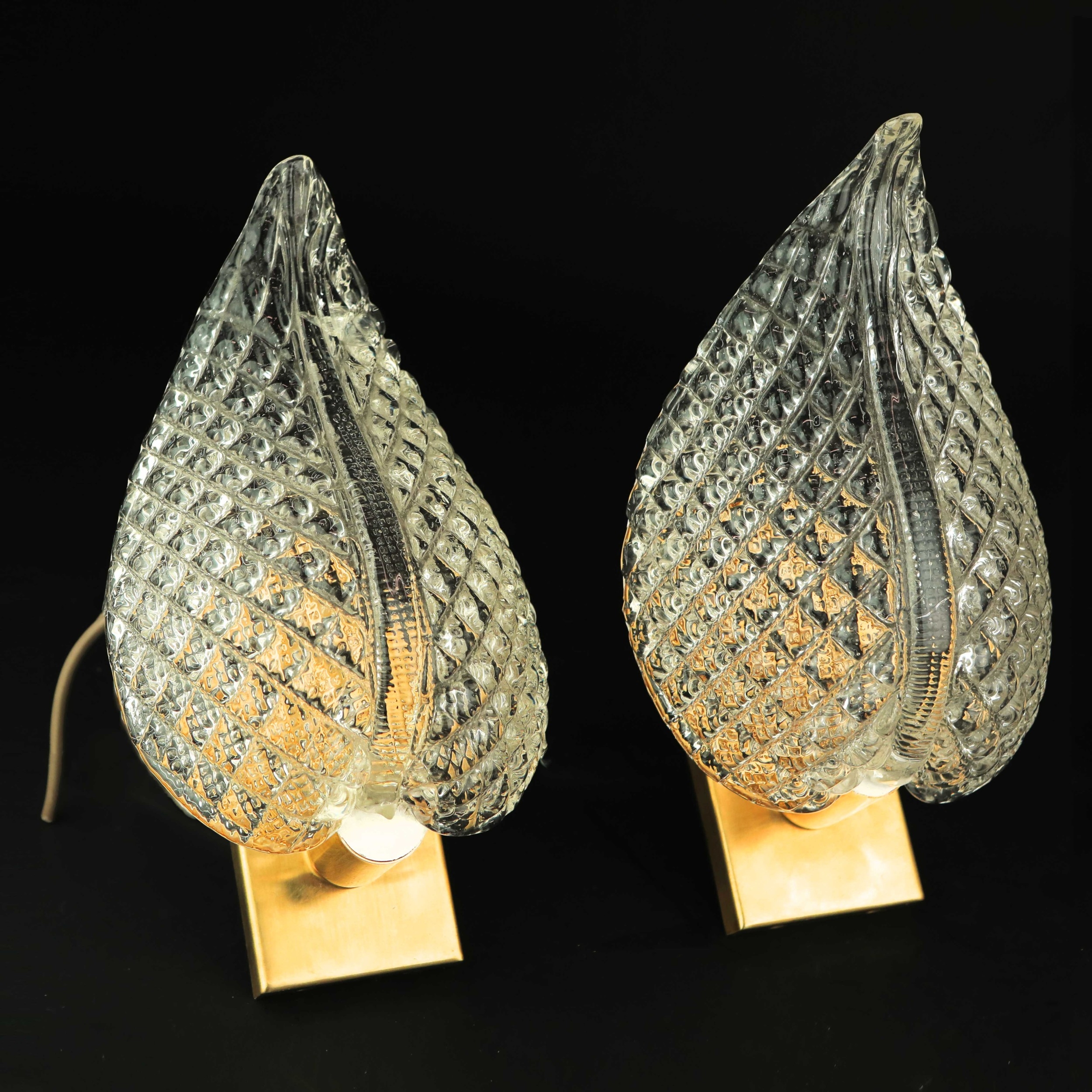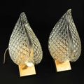 MID CENTURY MURANO GLASS LEAF WALL LIGHTS, 2 SIMILAR. brass mounts, 25cm H approx. (2).
