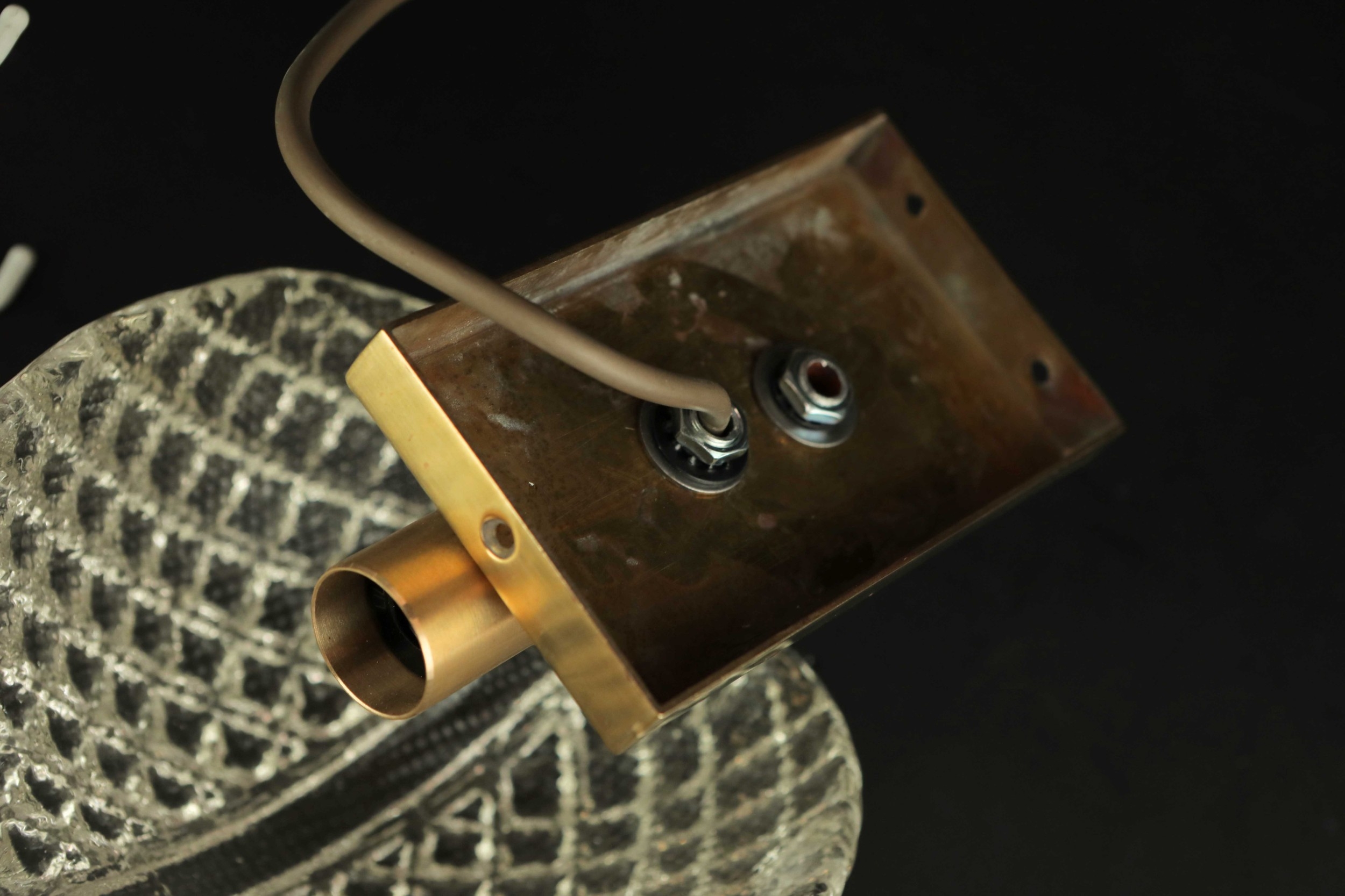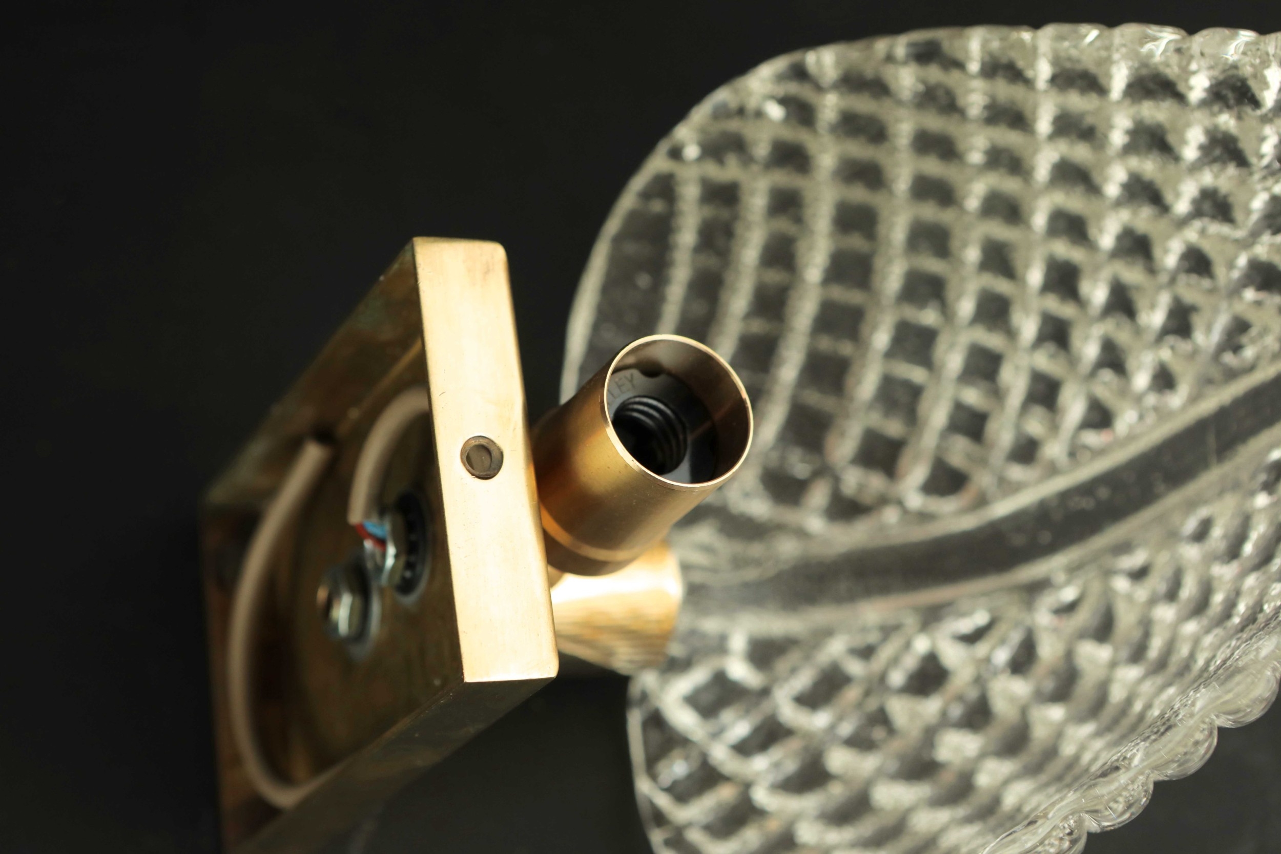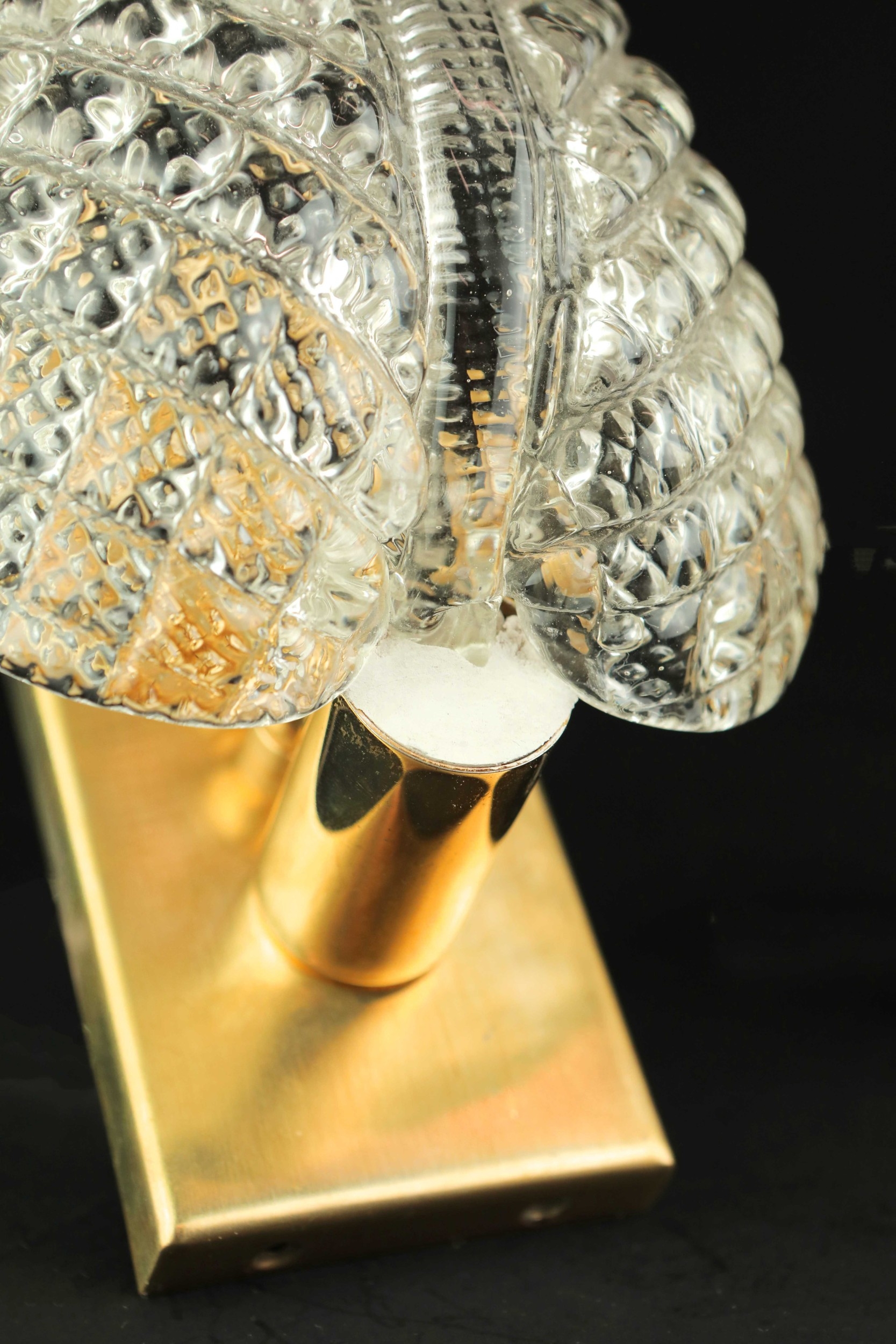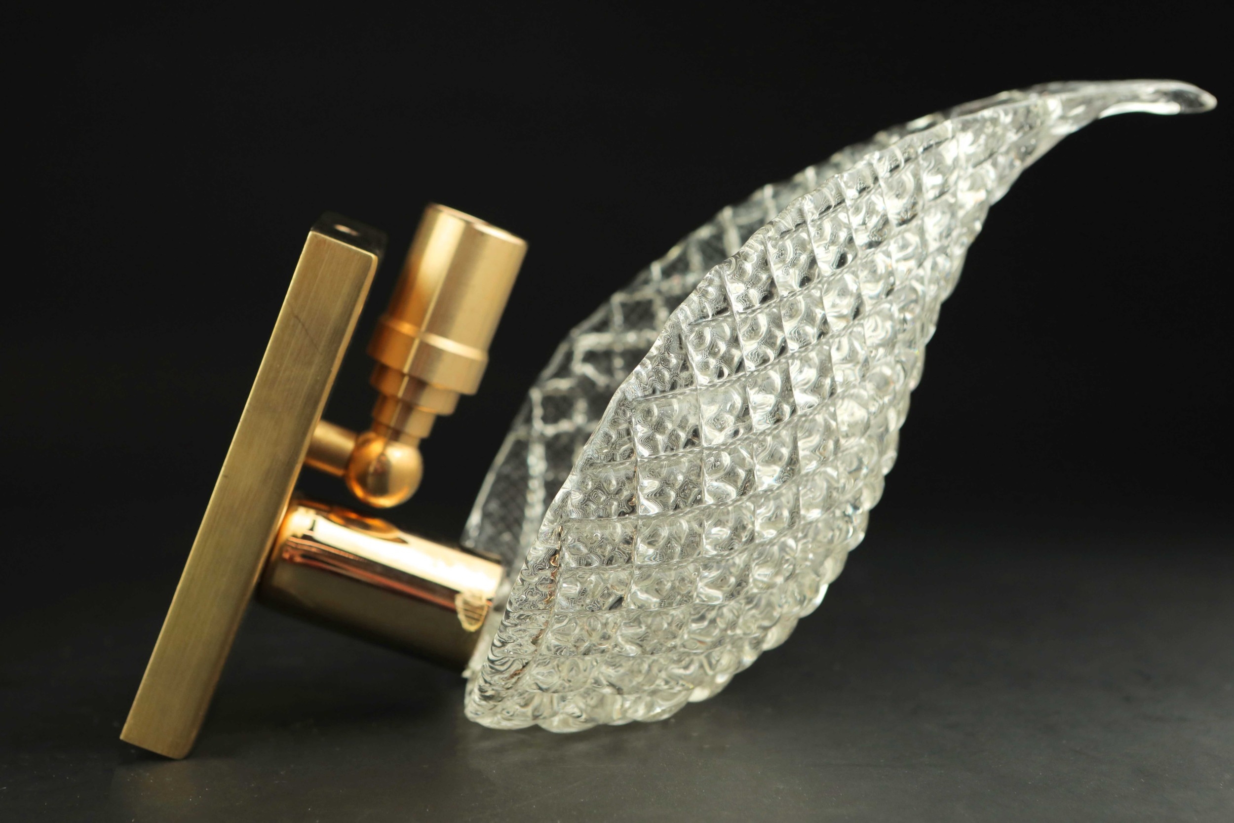 MID CENTURY MURANO GLASS LEAF WALL LIGHTS, 2 SIMILAR. brass mounts, 25cm H approx. (2).