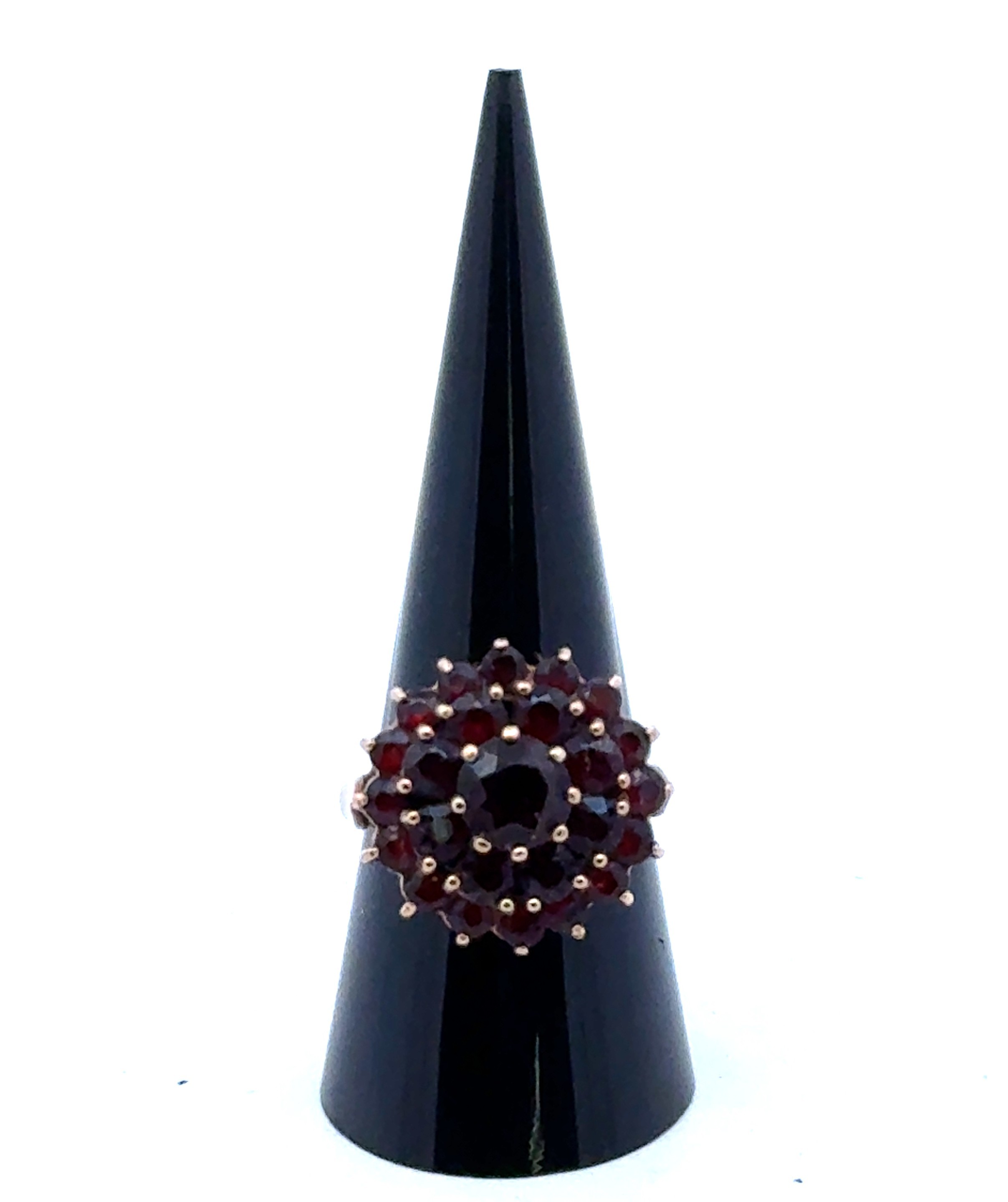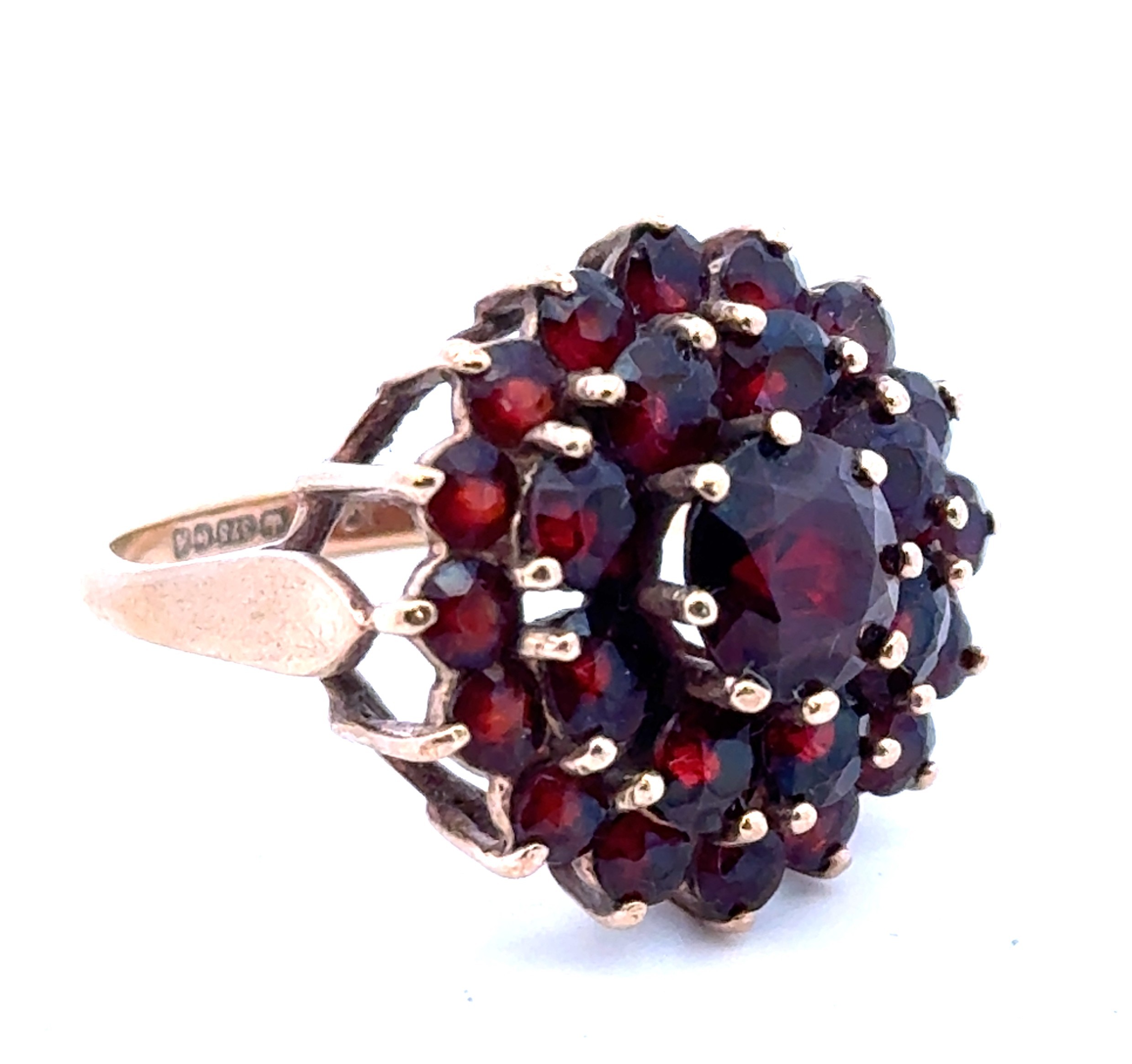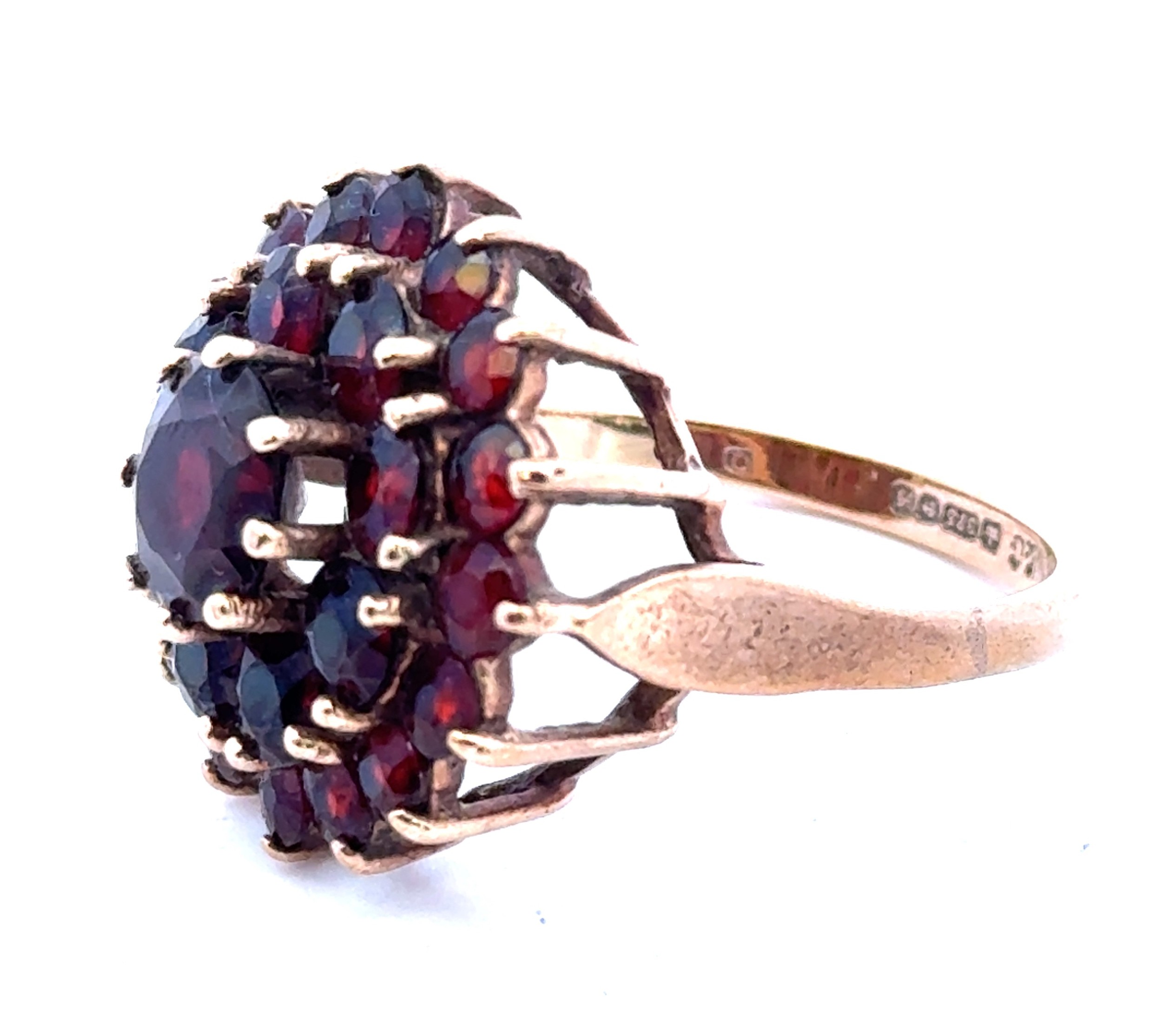 A 9ct gold and garnet cluster dress ring, size Q.