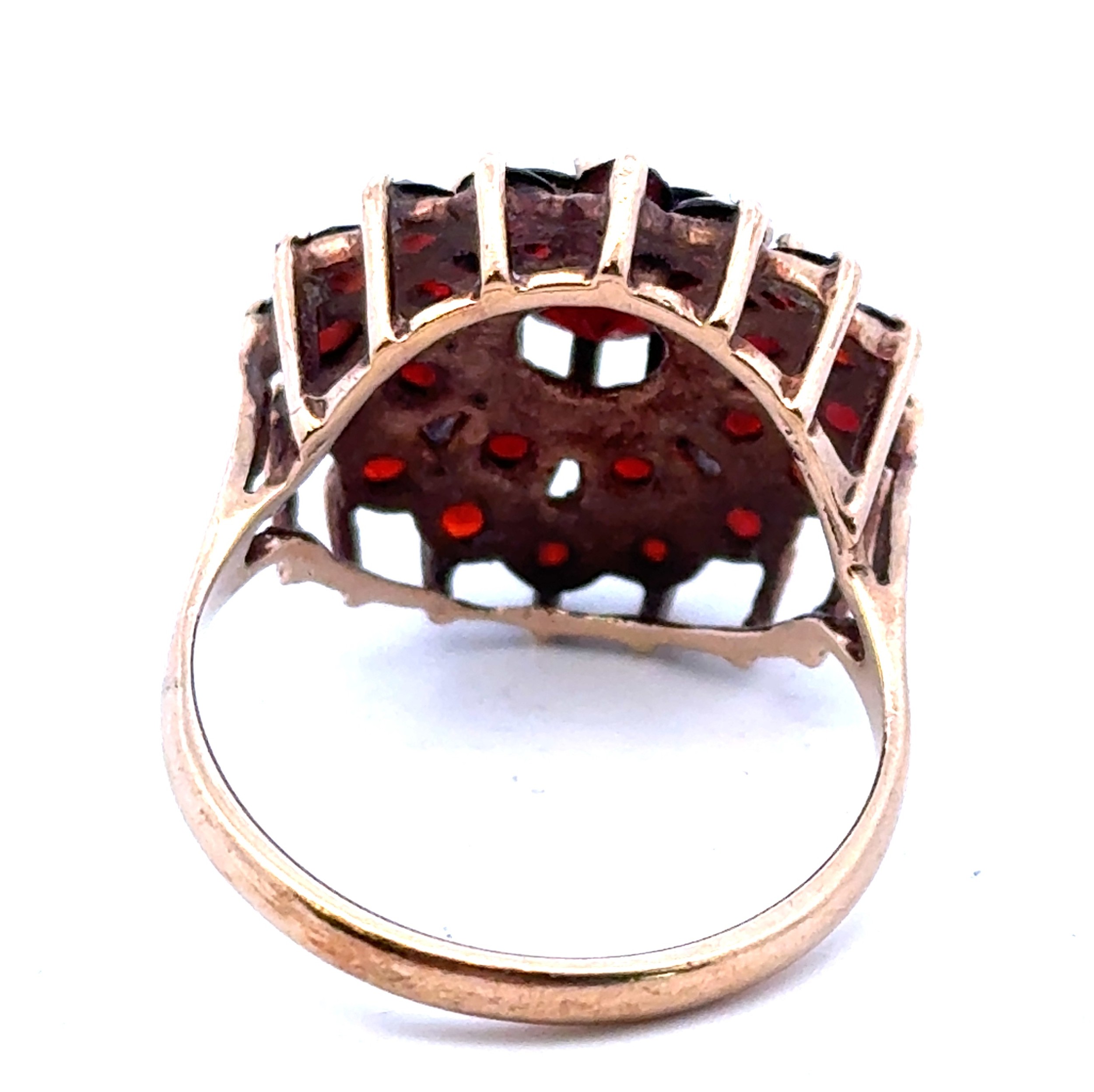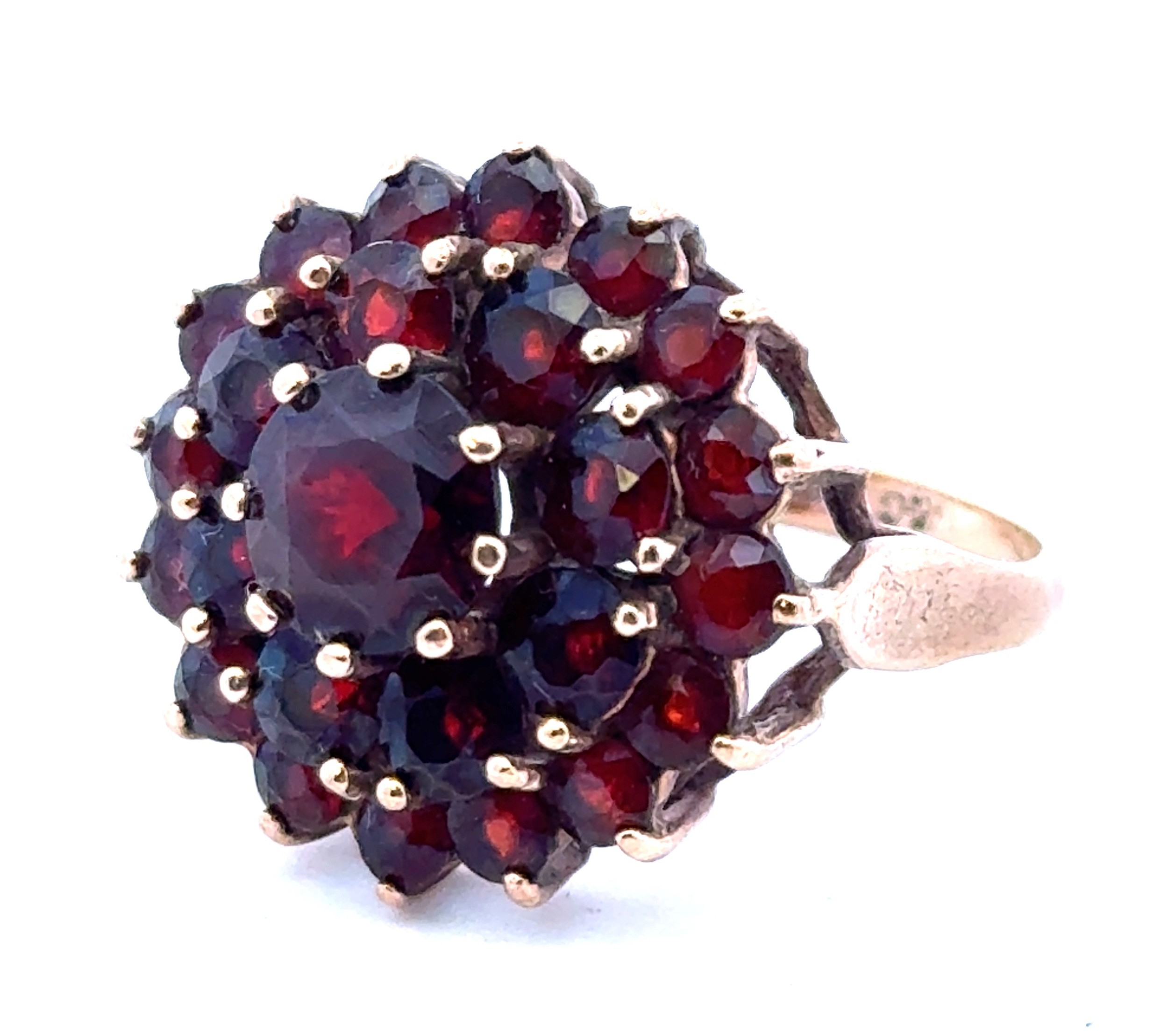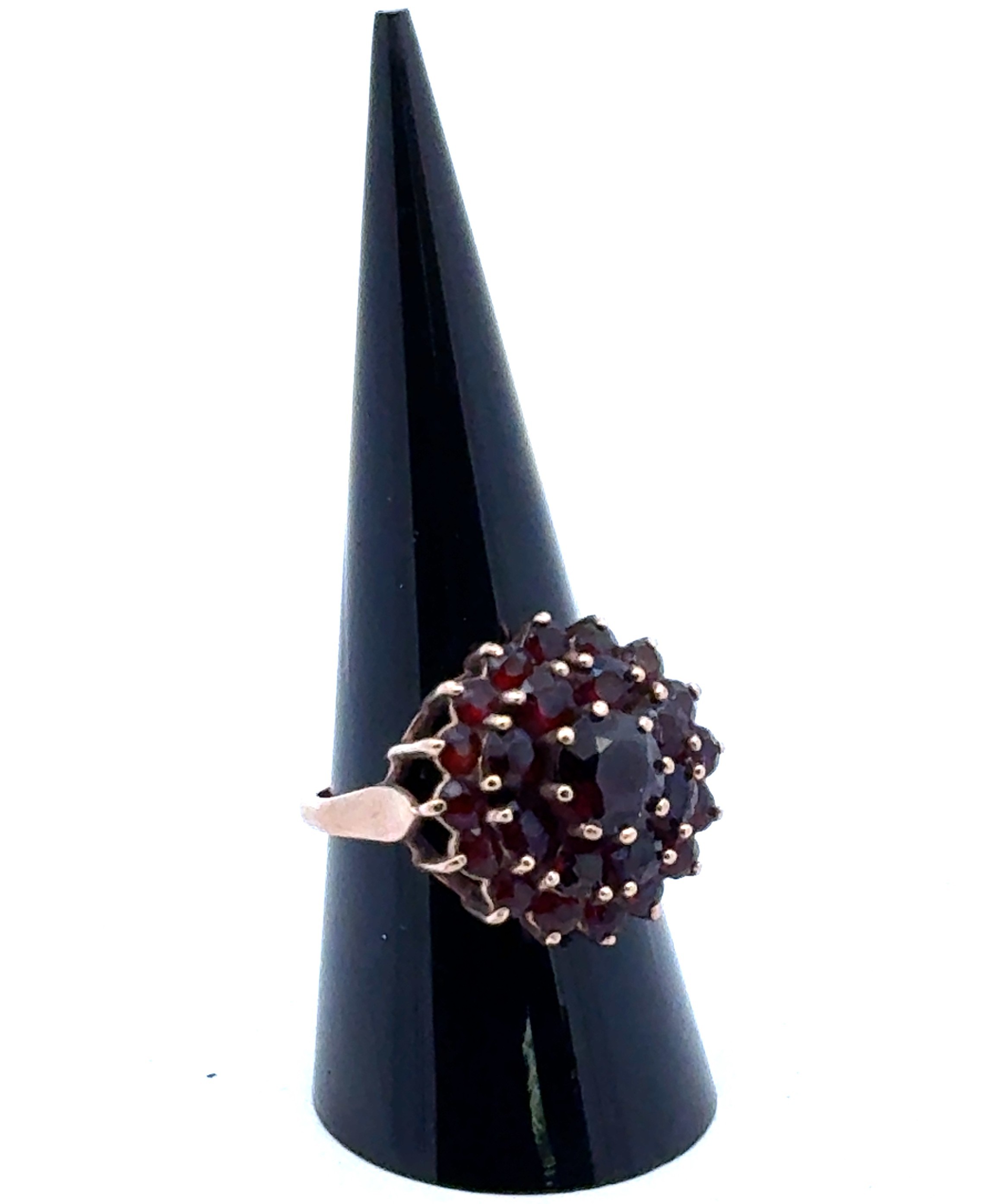 A 9ct gold and garnet cluster dress ring, size Q.