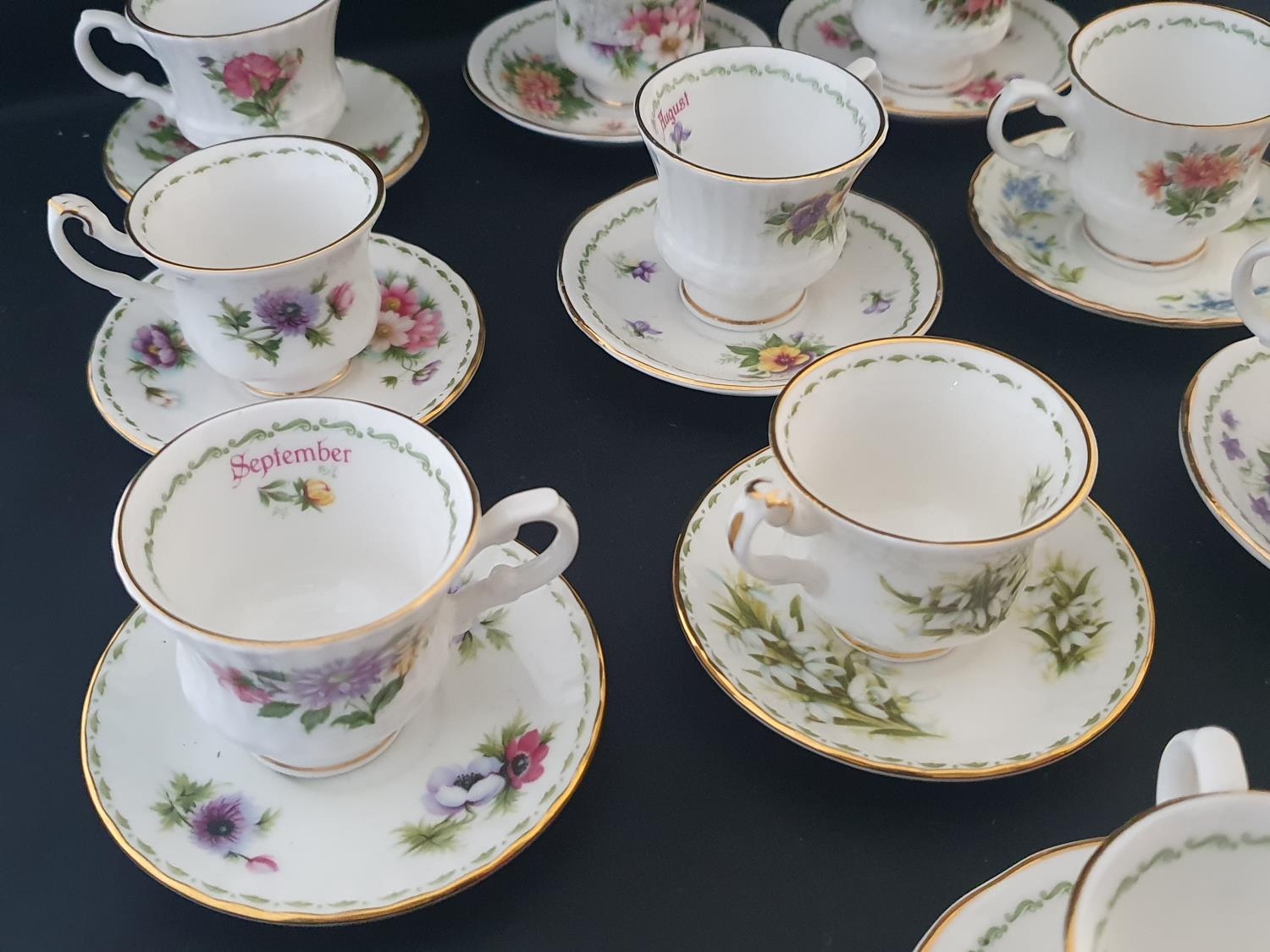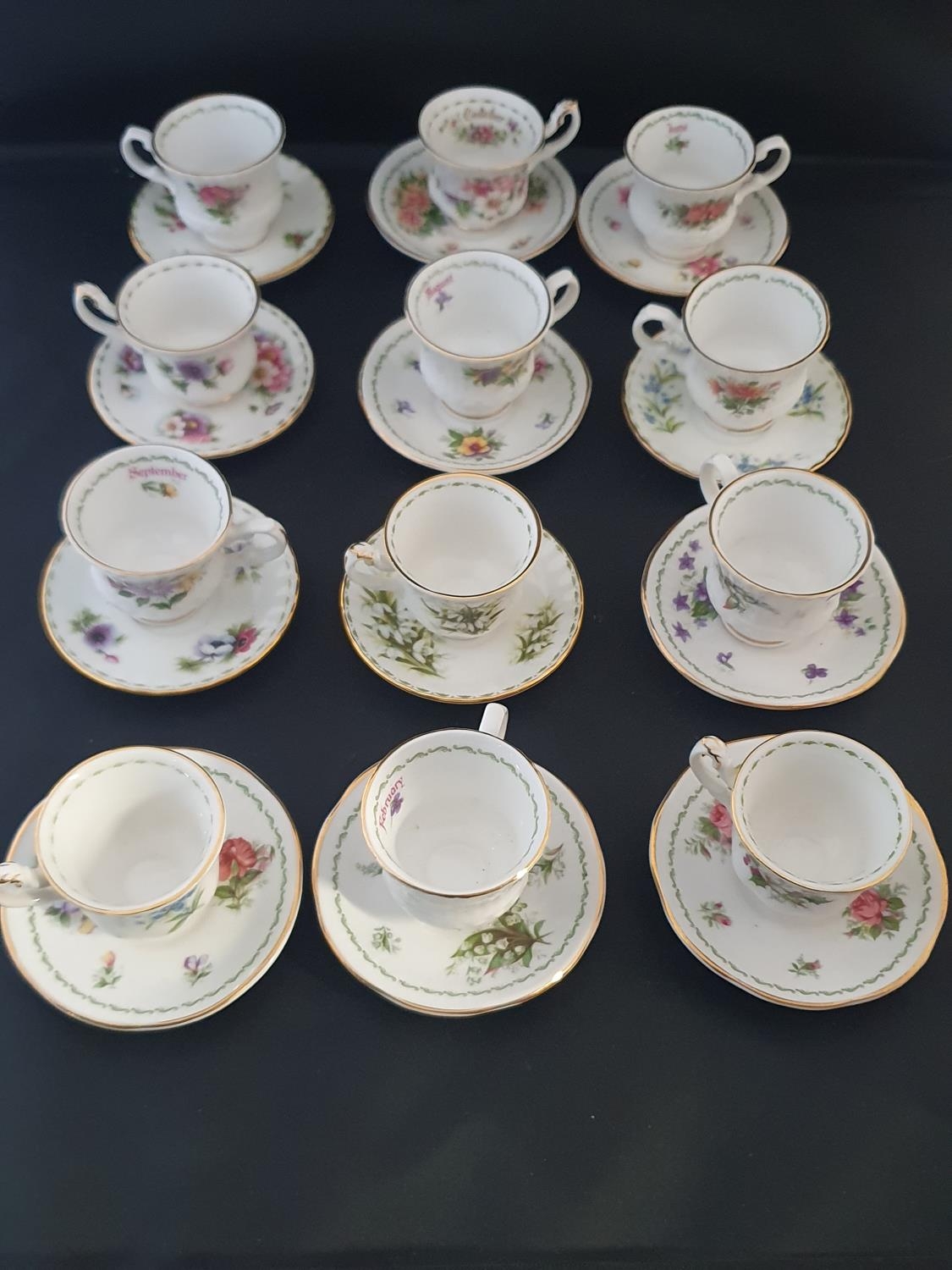 A miniature Royal Albert, Elizabethan bone china tea set 'Calendar Months'. twelve cups and saucers.