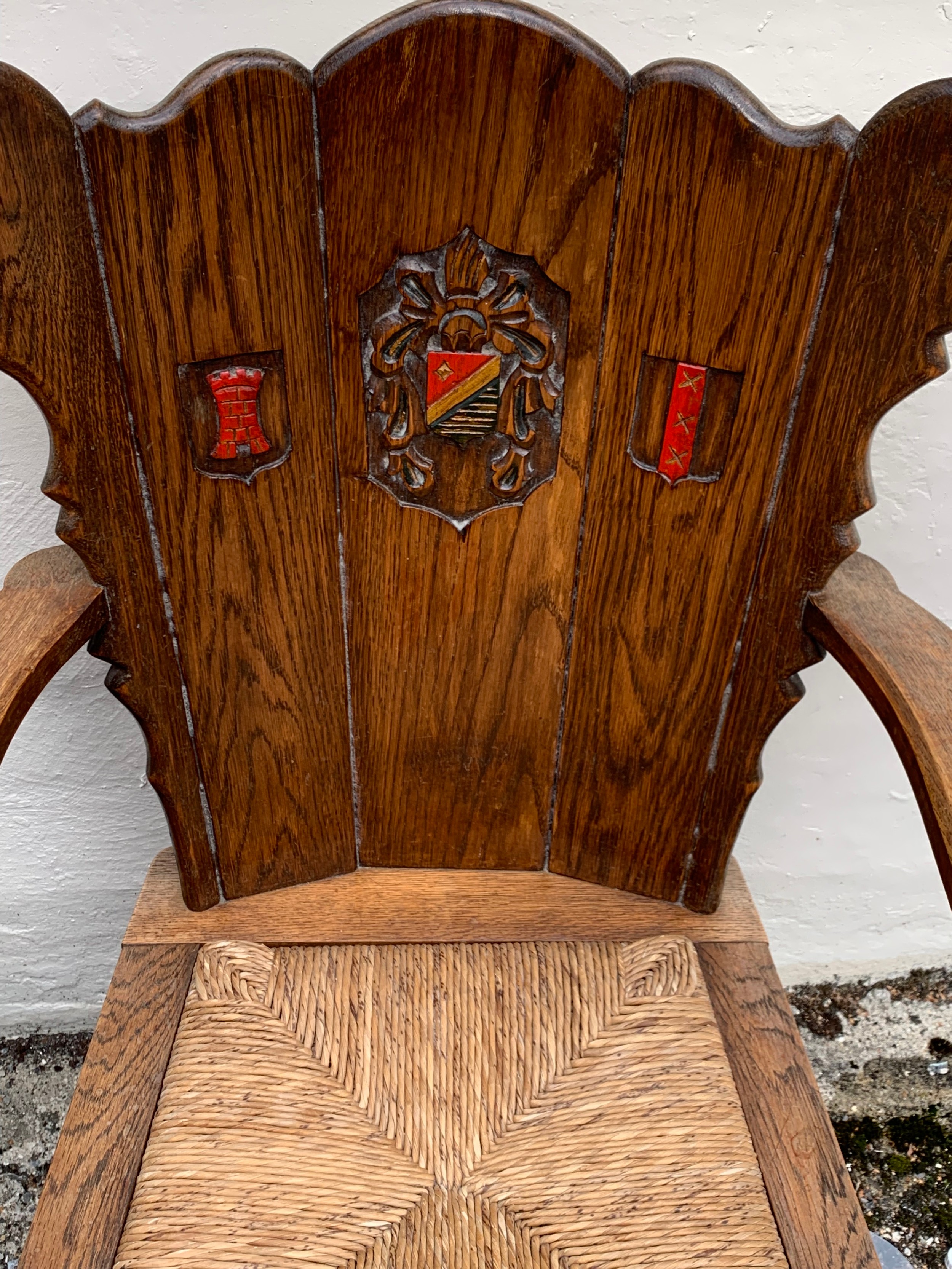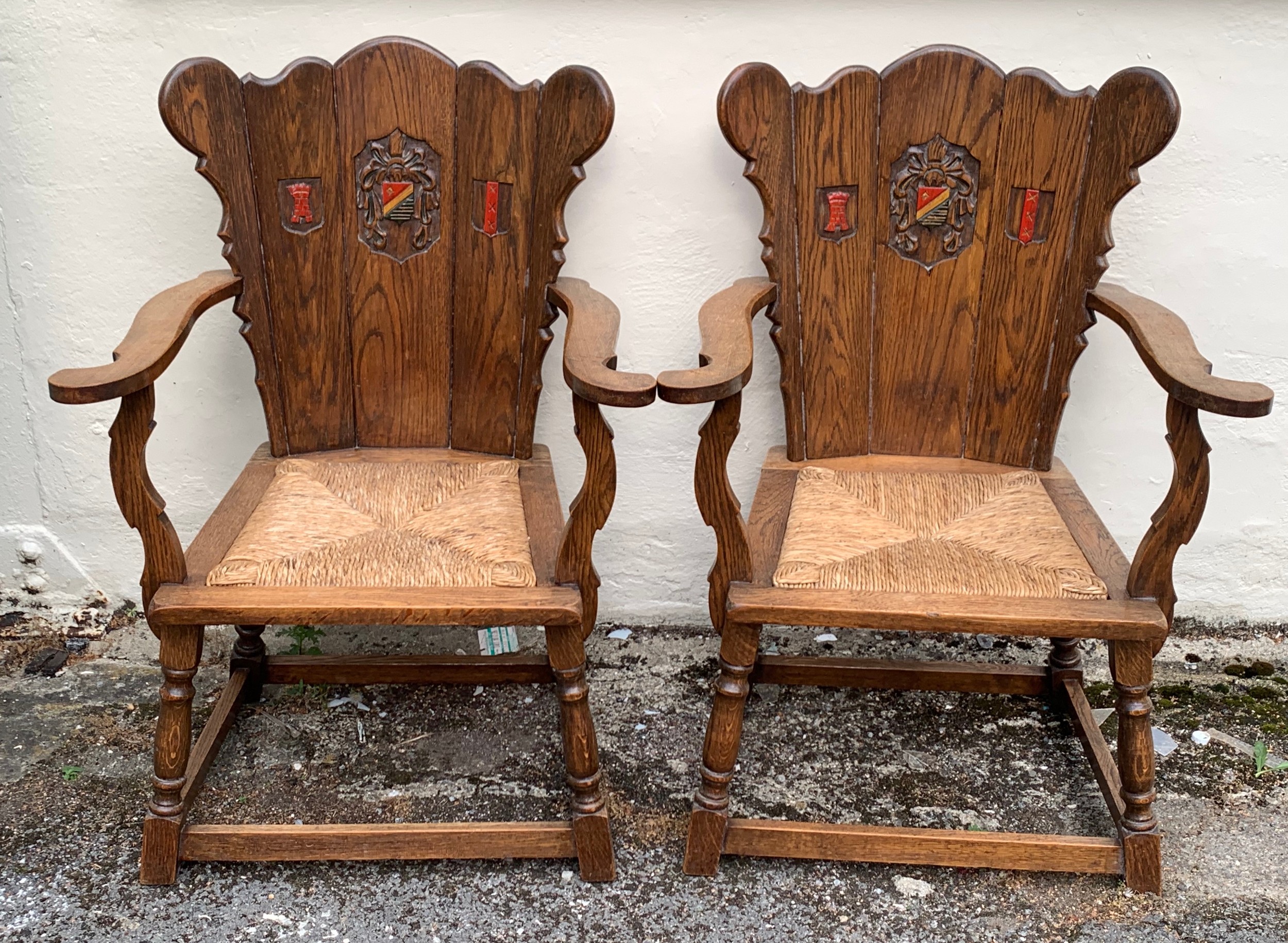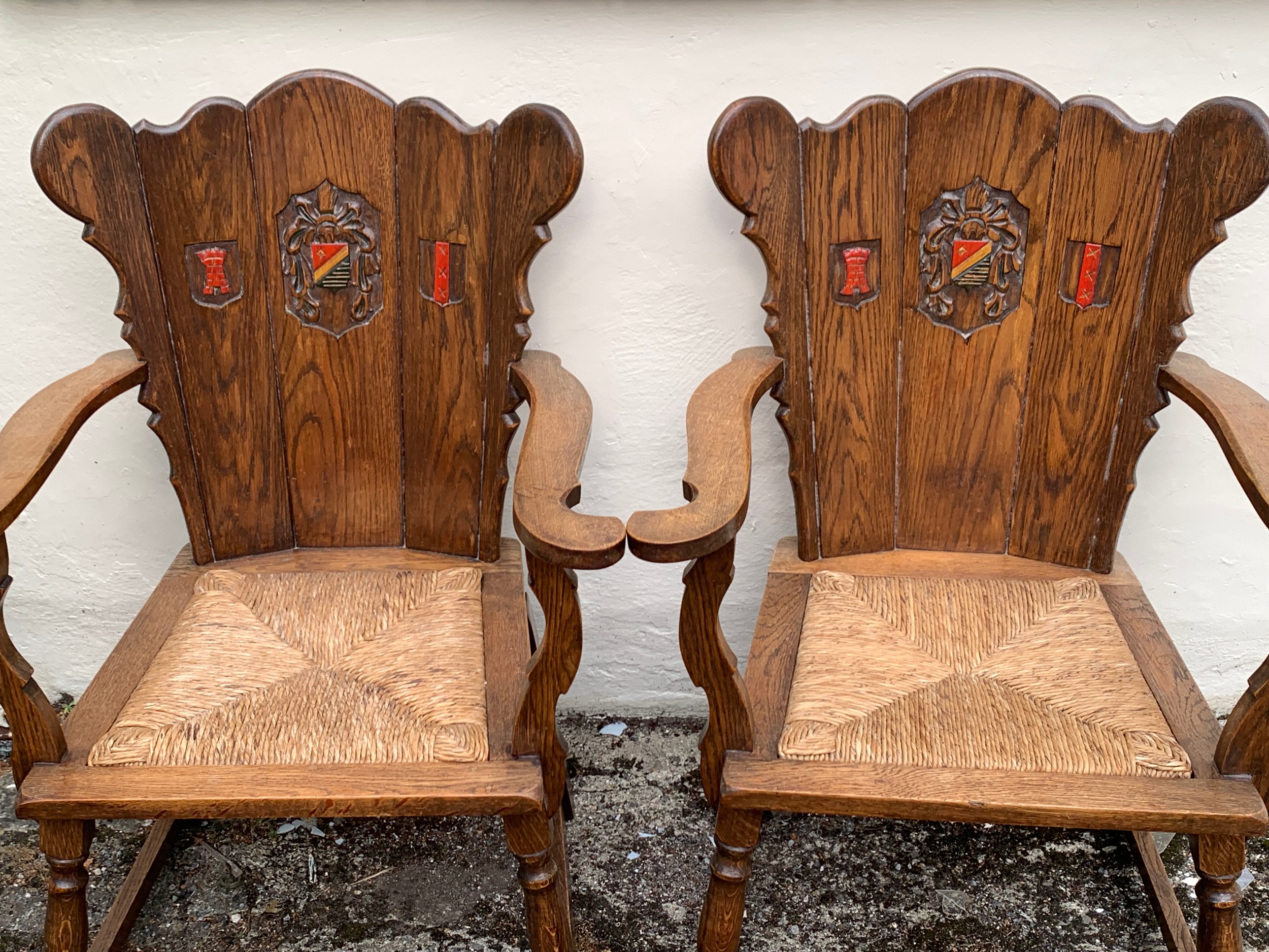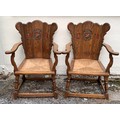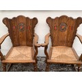 Pair Of Medieval Style Armchairs With Carved Motif To Back . (2)