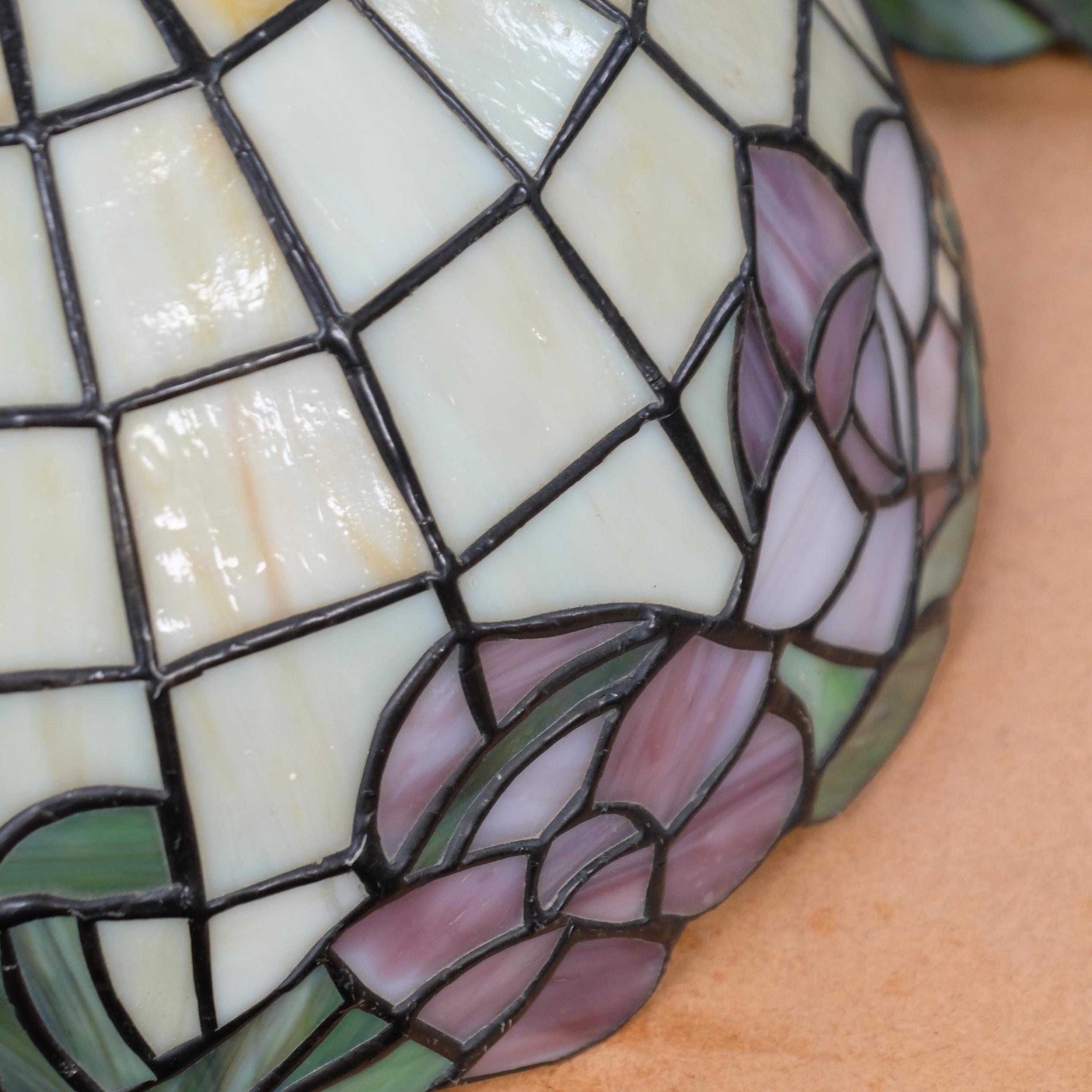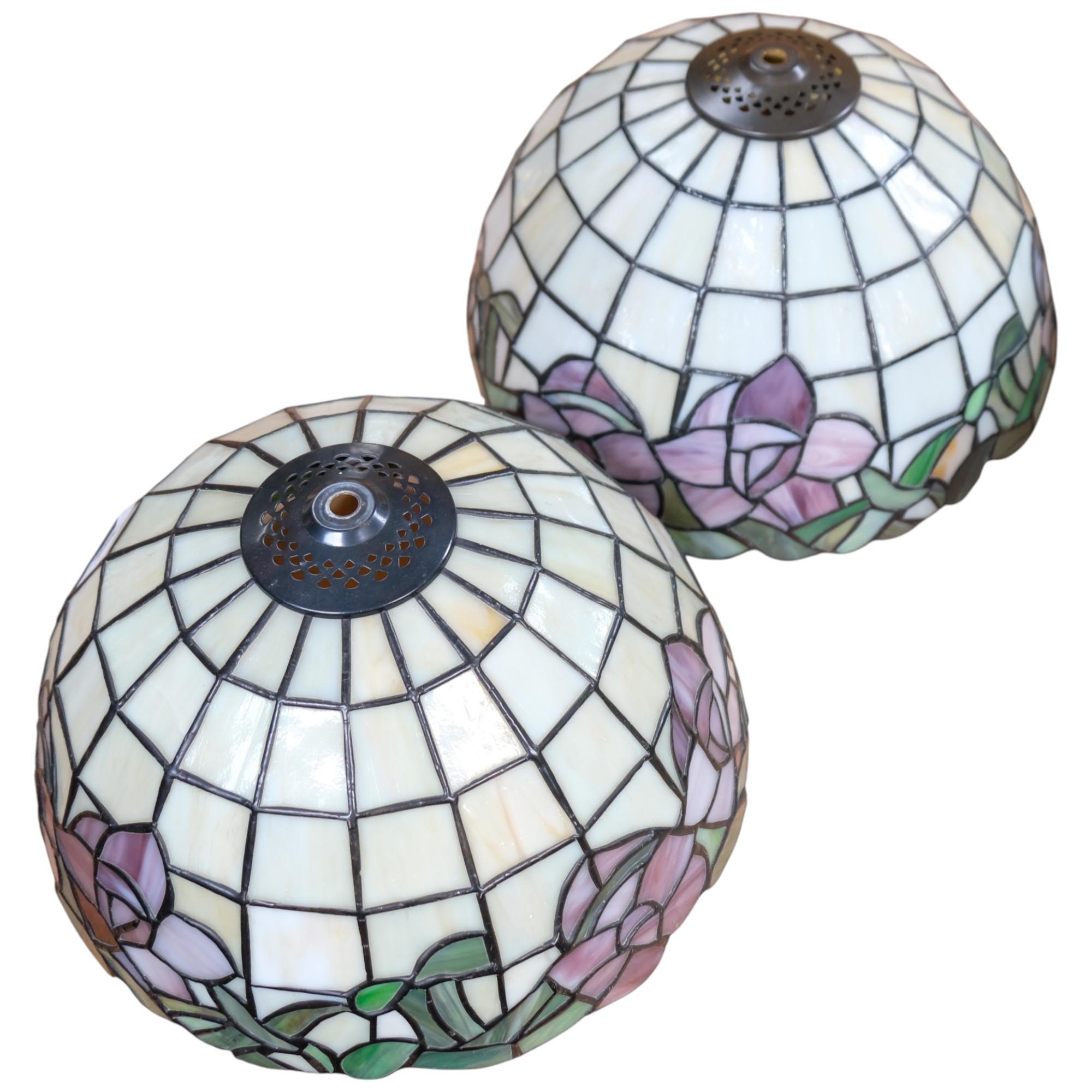 A pair of Tiffany style leadlight coloured lamp shades, H17cm, diameter 29cm