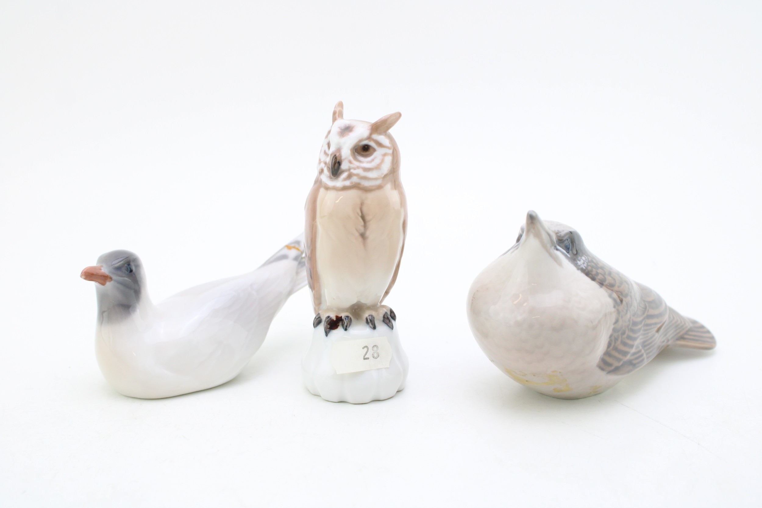 Royal Copenhagen figures of a starling 3270, a black headed gull 1468 (af) and a B&G owl 1800 (3).