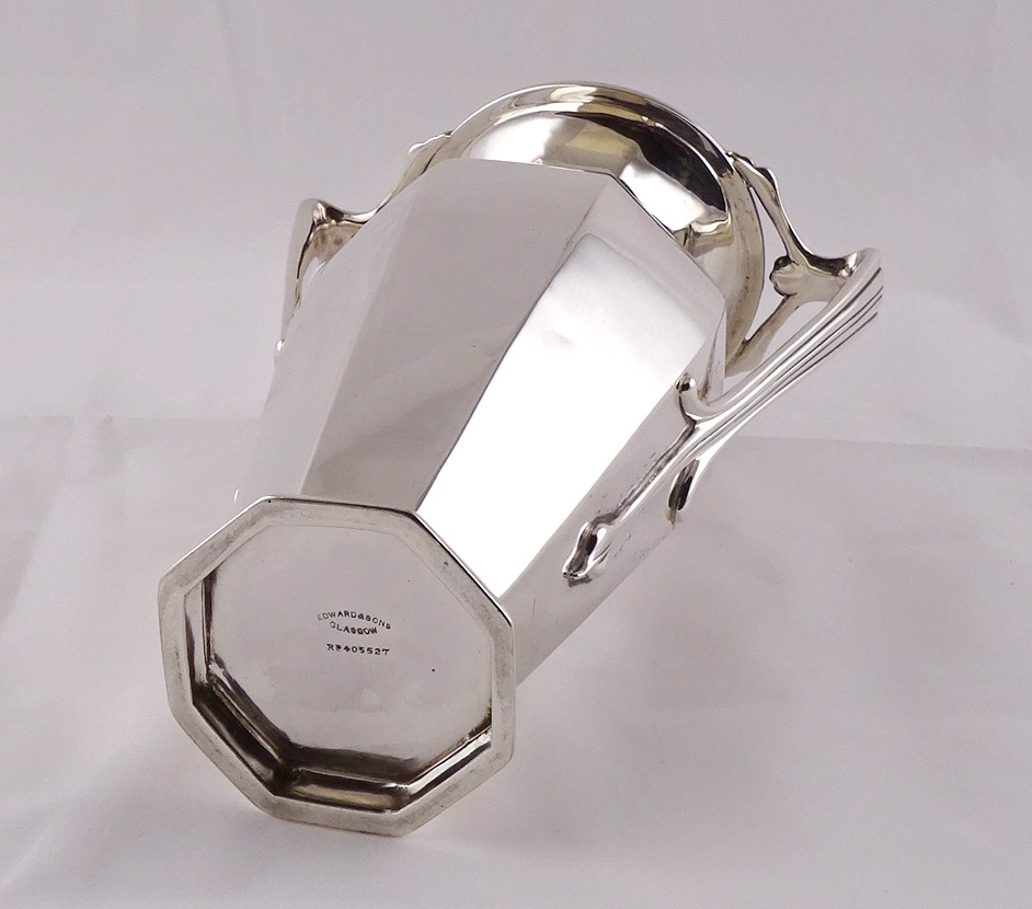 An Art Nouveau / Jugendstil influence silver two handled vase, George Edward & Son, Sheffield 1910. 644gr / 232mm tall. A/f dents (by instruction of the family of Dame Fanny Waterman)