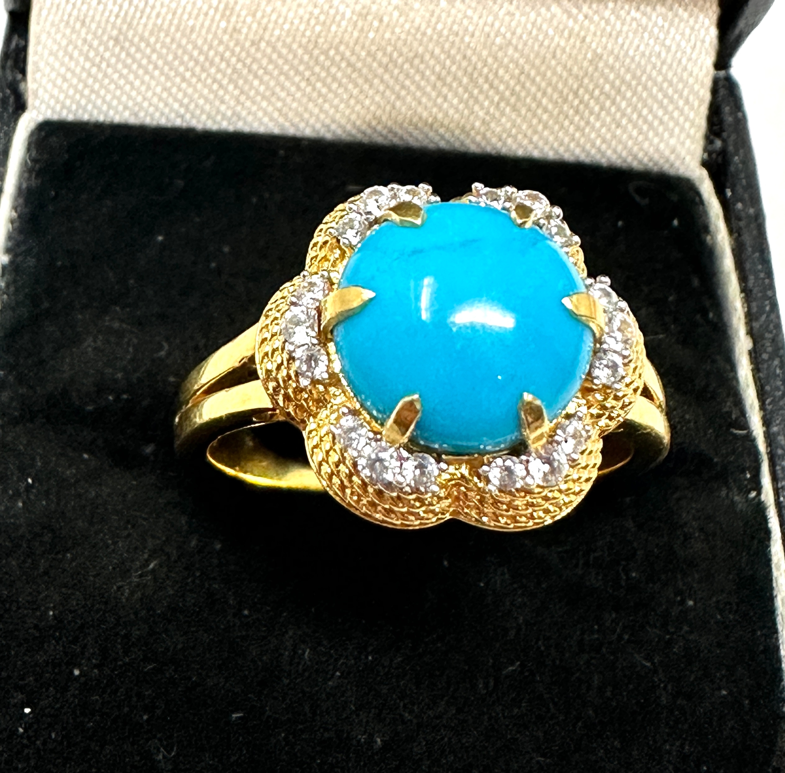 Gemporia silver with gold gilt turquoise & gemstone halo ring