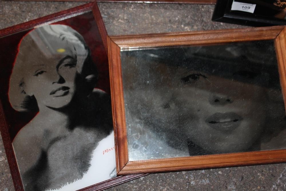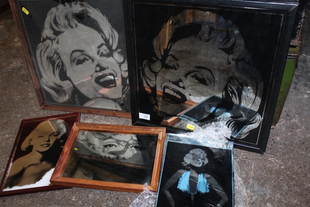 FOUR FRAMED MARILYN MONROE RELATED MIRRORS, TOGETHER WITH AN UNFRAMED EXAMPLE (5)
