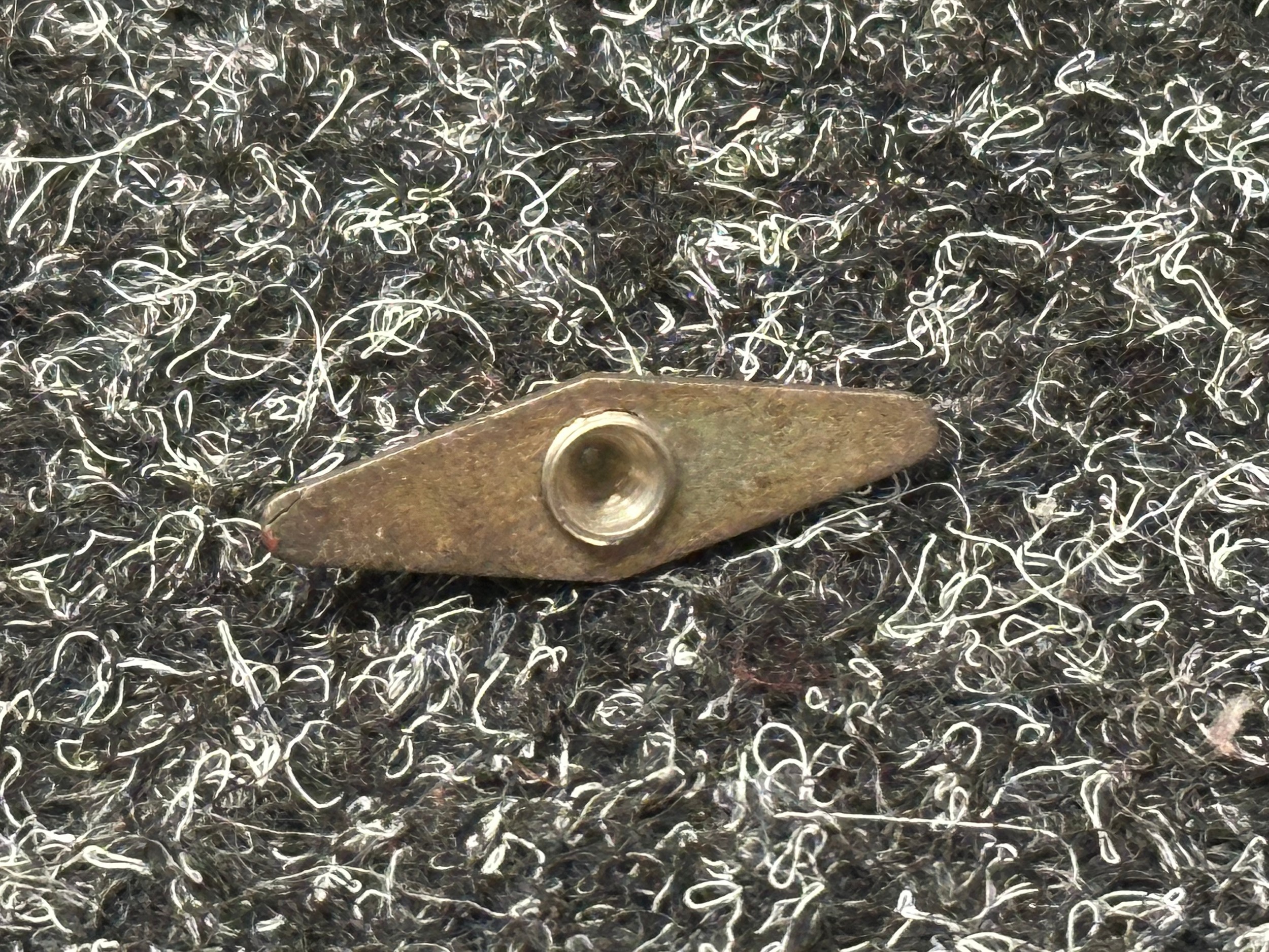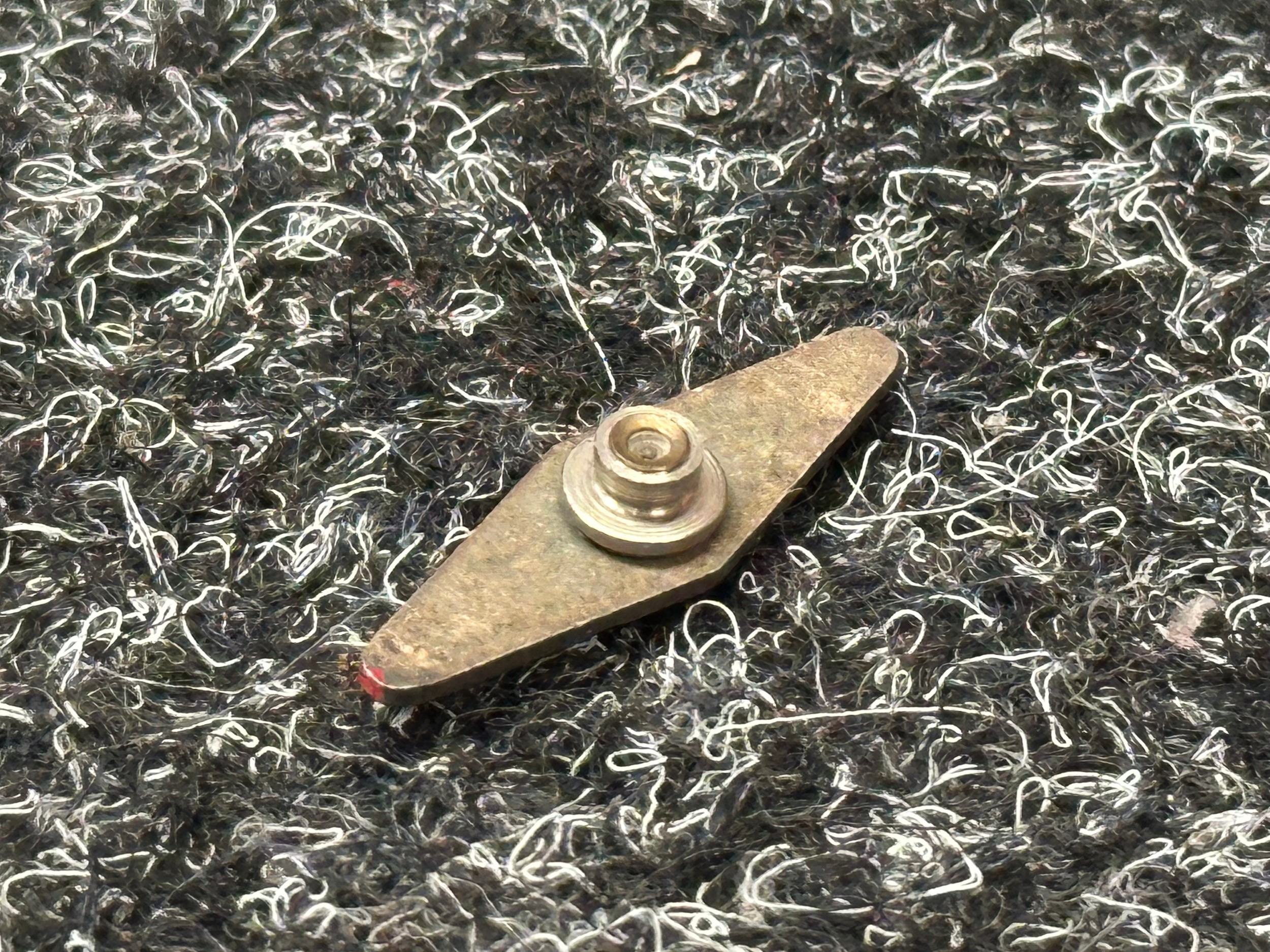 WW2 British Escape and Evasion Steel Compass designed sewn into clothing. Used by tieing to a thread and held to indicate North. Red dot shows North. Special Force / SOE issue.