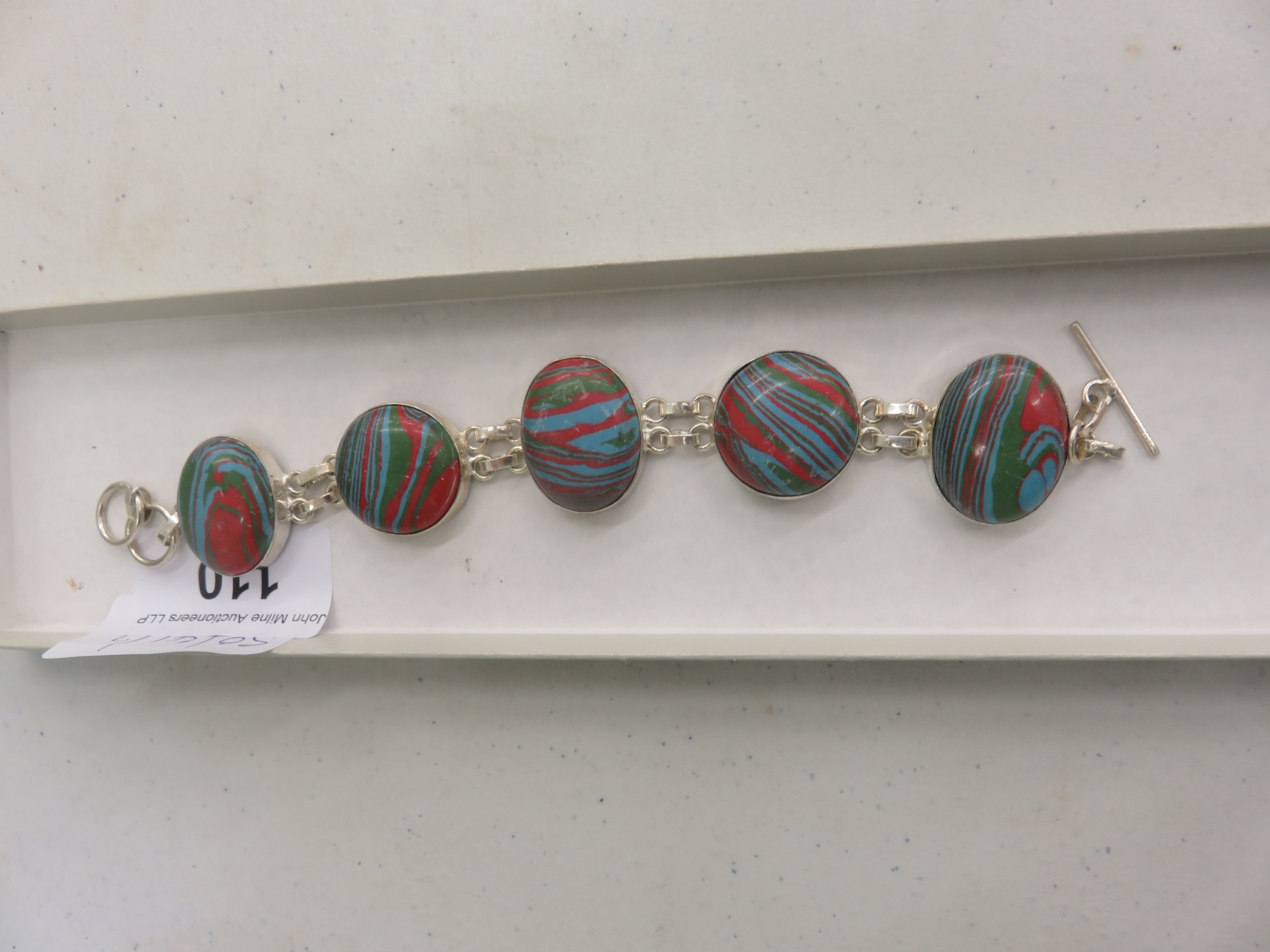 Silver and Coloured Agate Bracelet - 7.5inches long - 31g