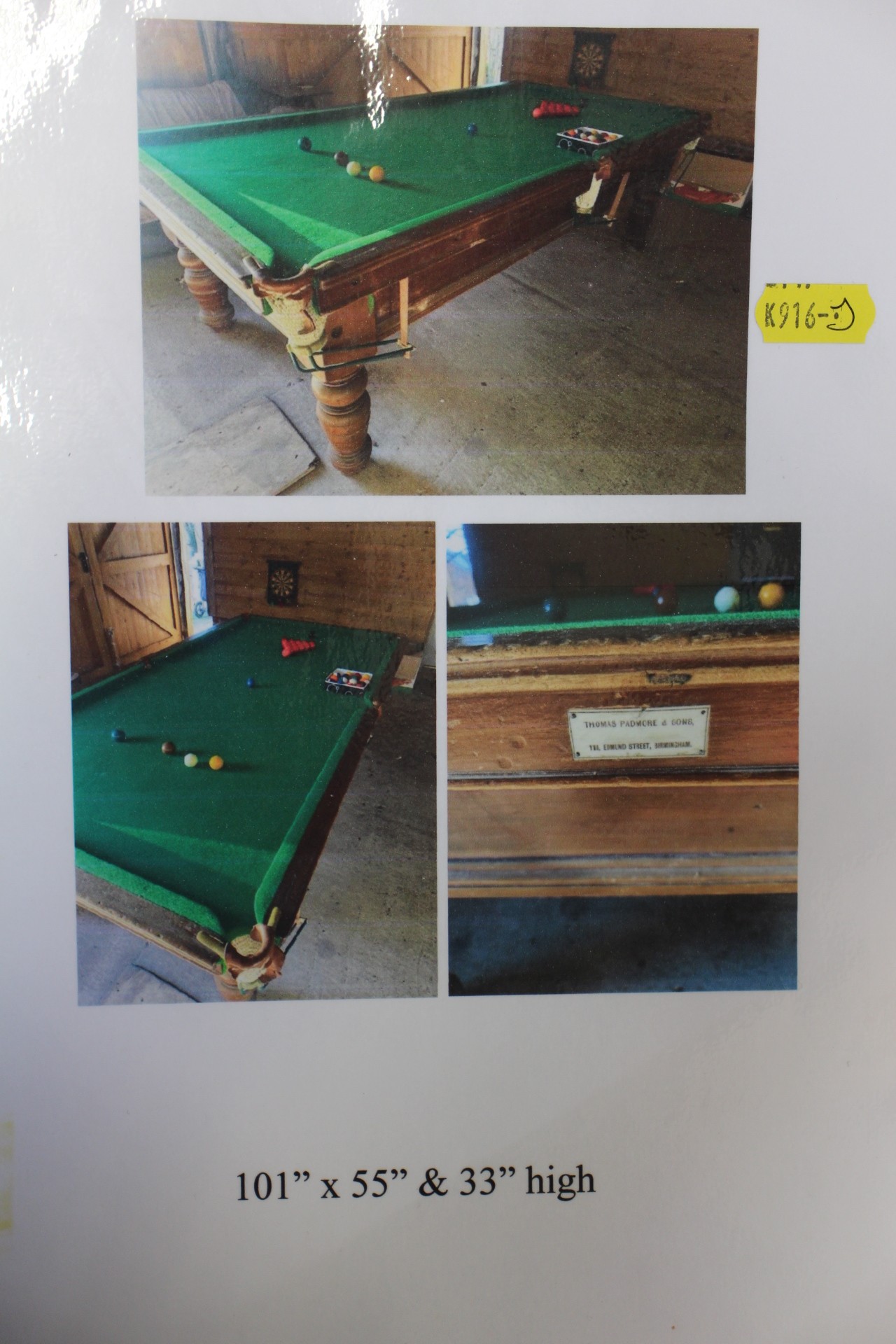 A Victorian quarter size snooker table by Thomas Padmore & Sons, 55" wide x 101" long x 33" high