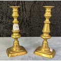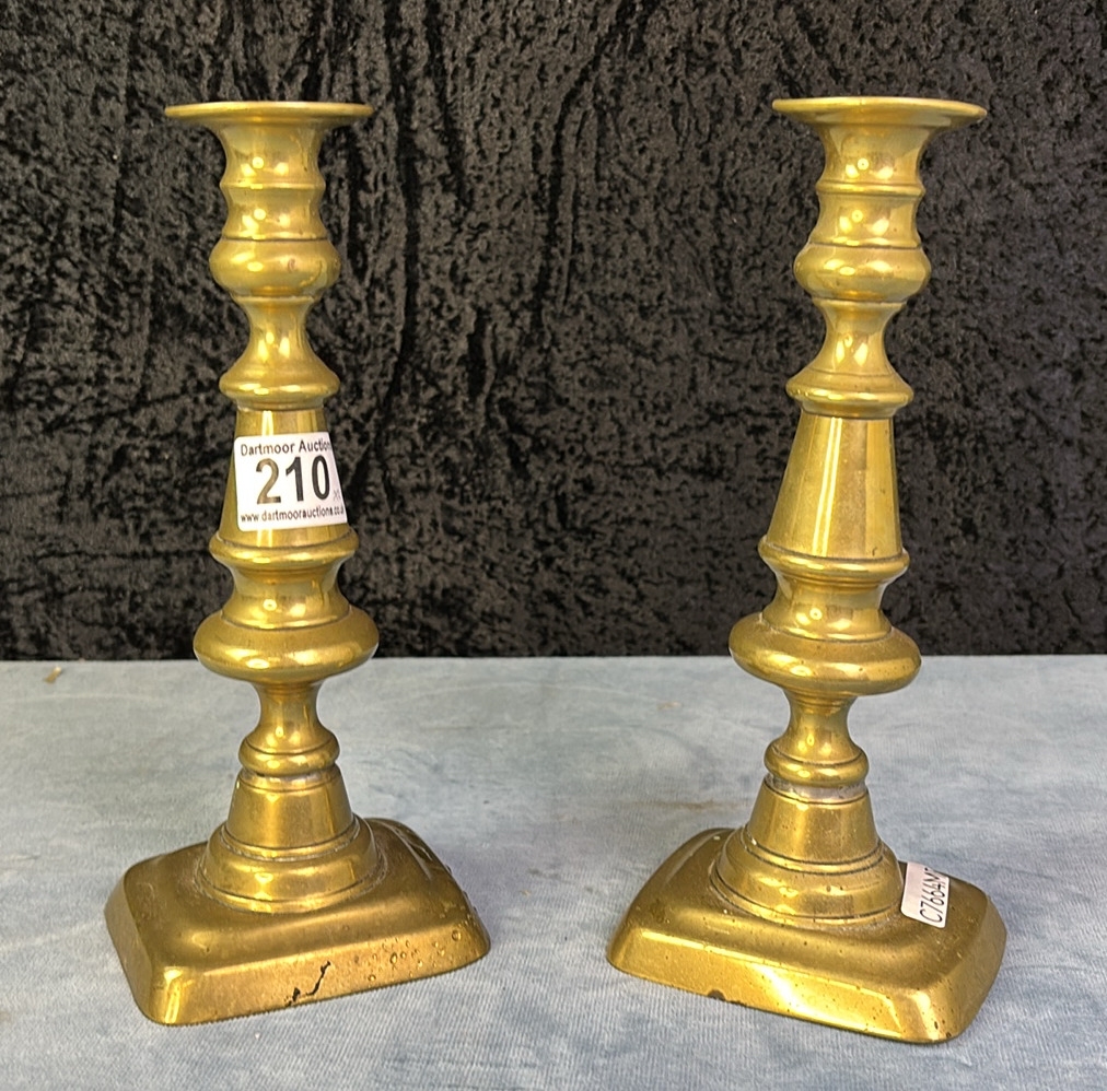 Pair of matched antique brass candlesticks with push rods 23.5cm