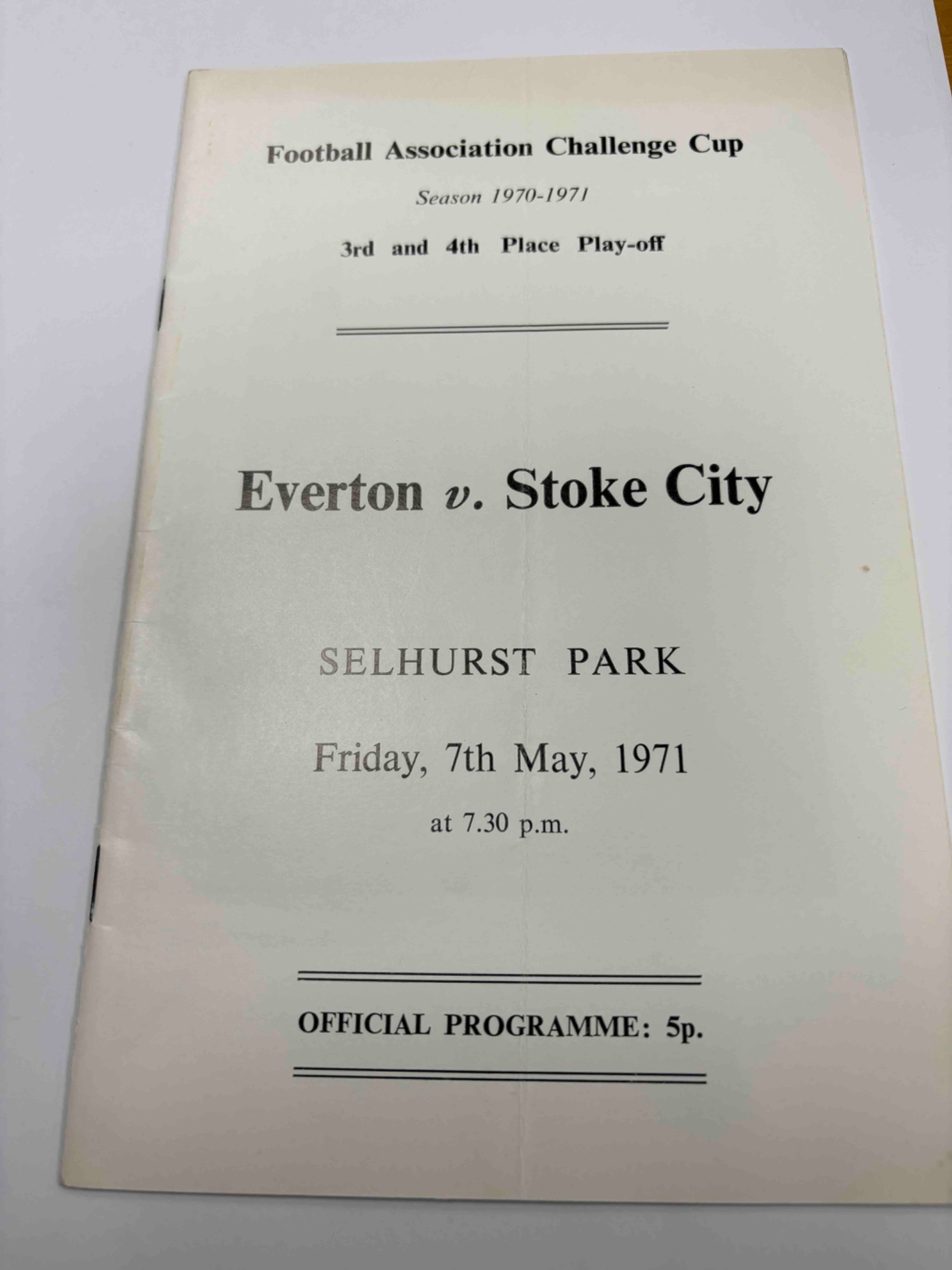 1970/71 FA Cup 3rd/4th Place Play Off, Everton v Stoke City at Crystal Palace. Fold down middle. Clean