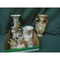 2 highly decorated jugs, candlestick and 3 small figurines