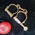 A brilliant pair of vintage figure eight hand cuffs with original key.