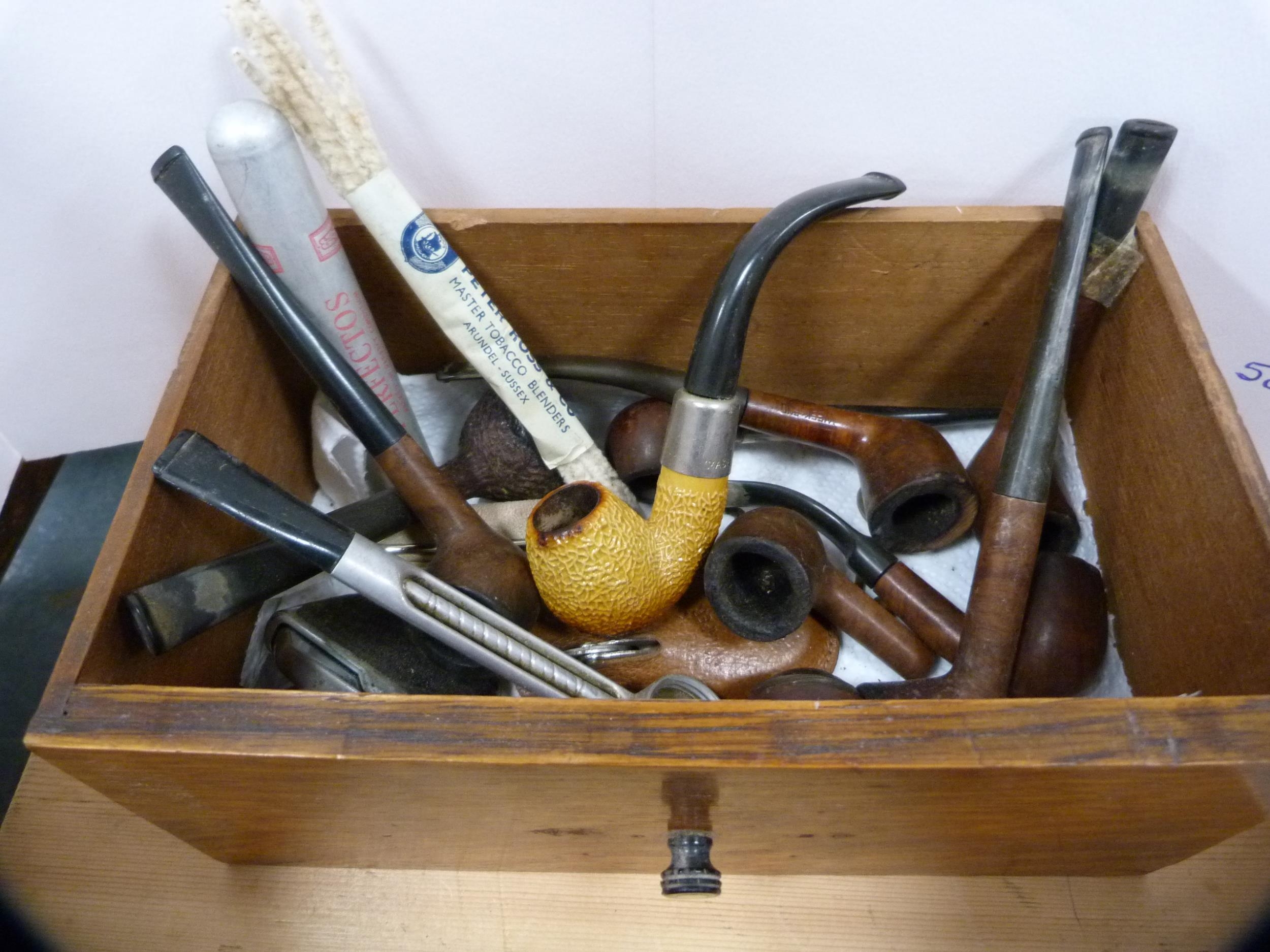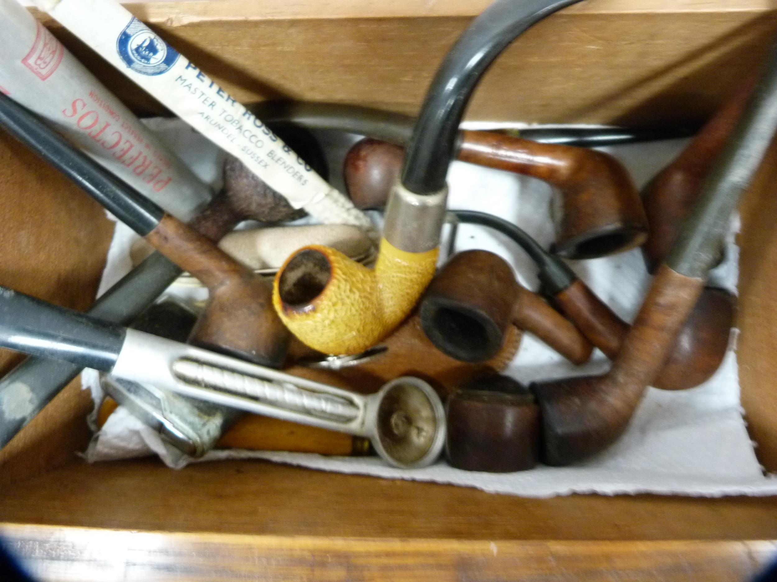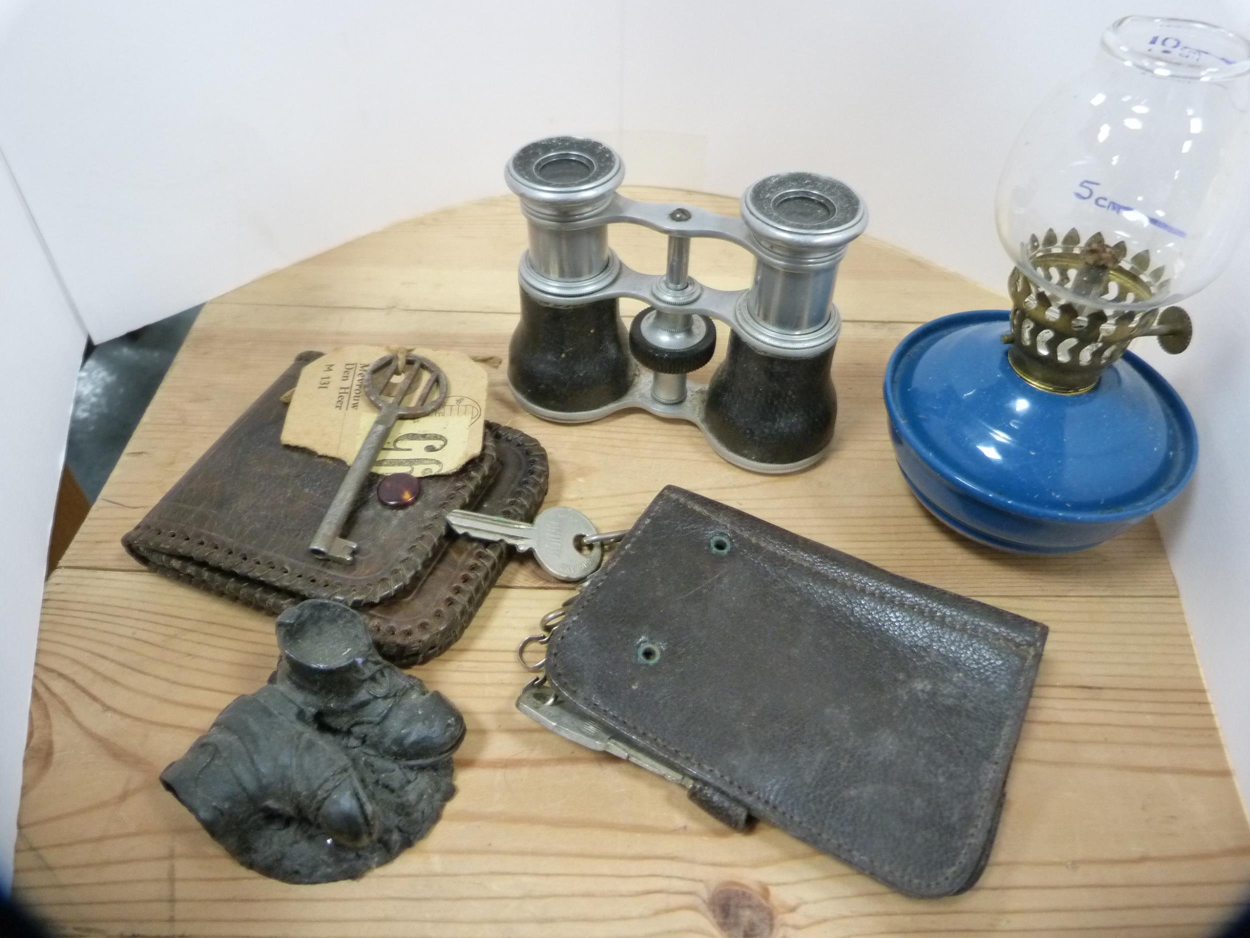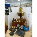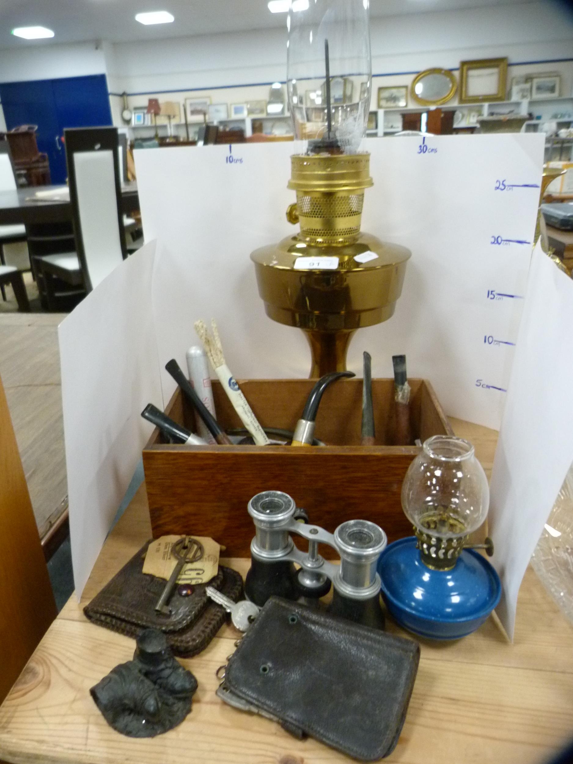 Brass oil lamp with glass funnel, smoking pipes, oil lamp insert, opera glasses etc.