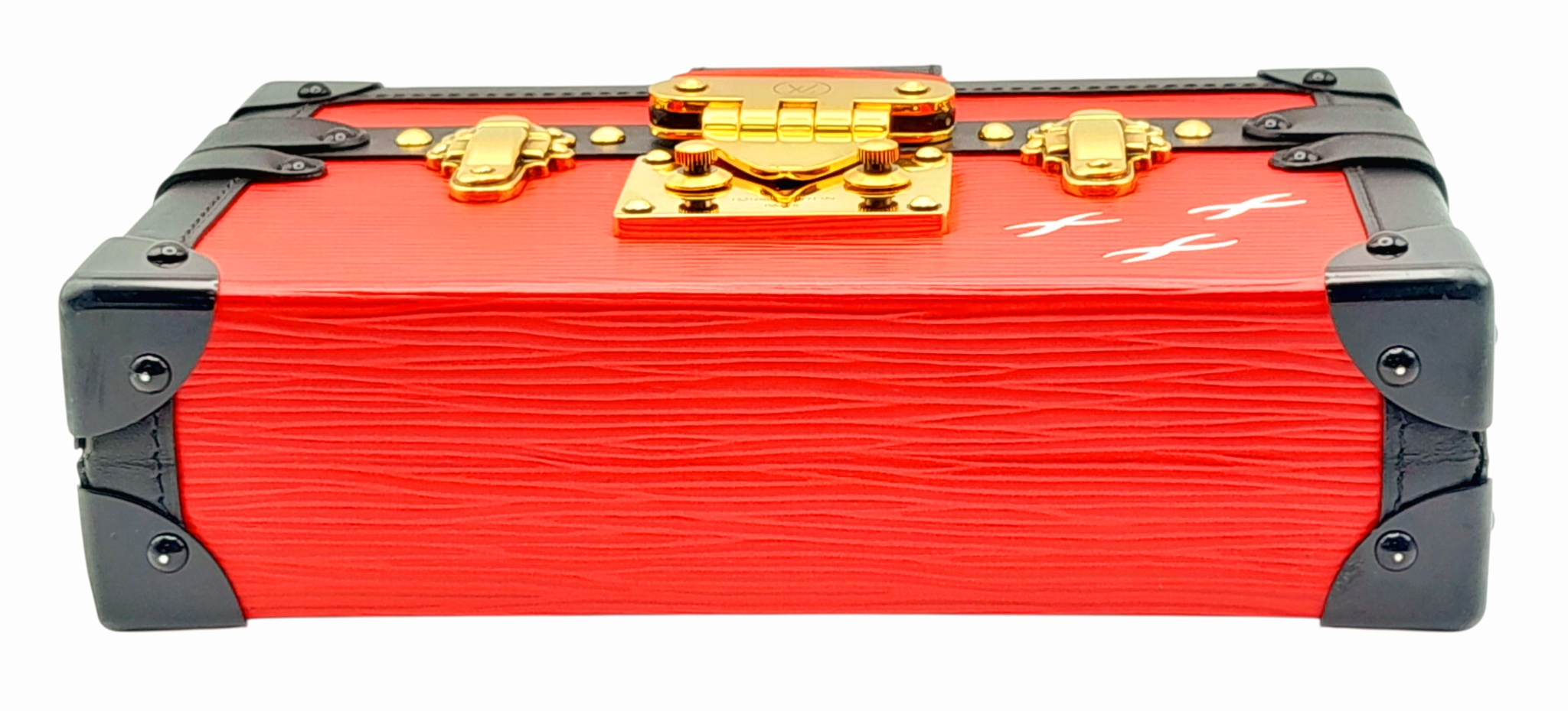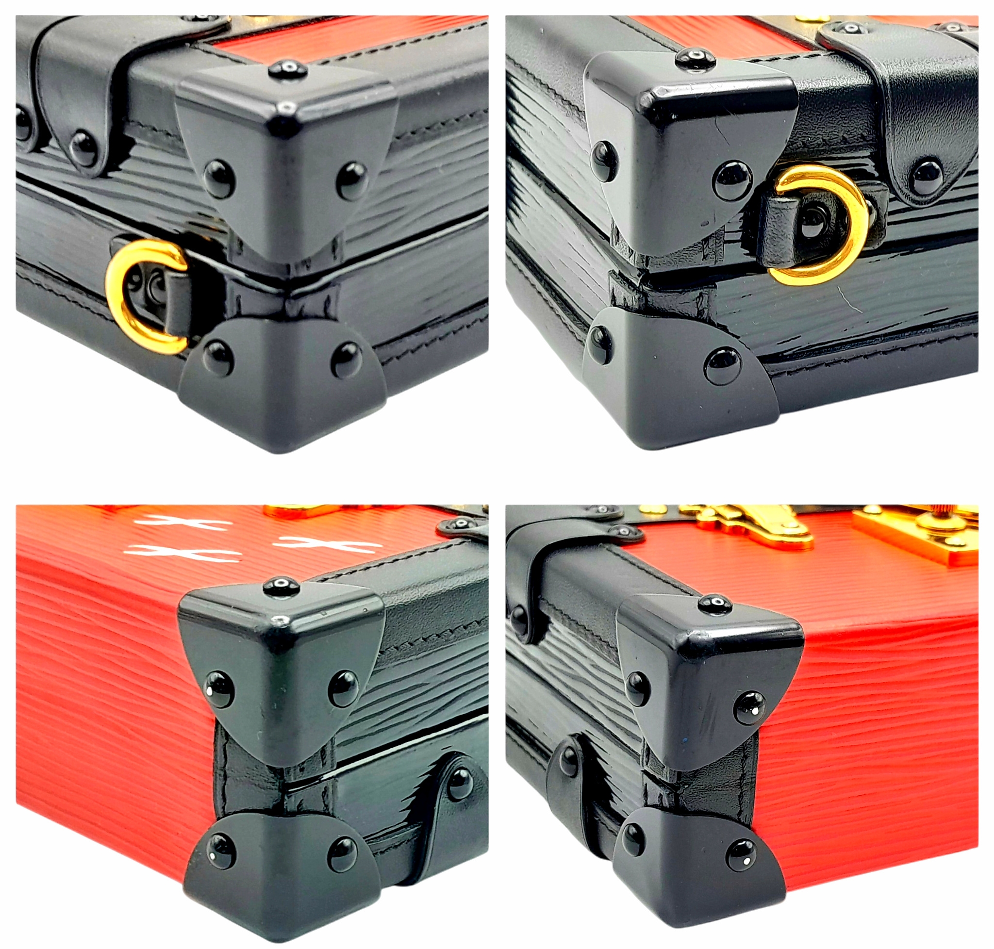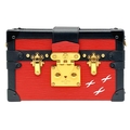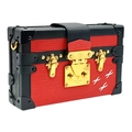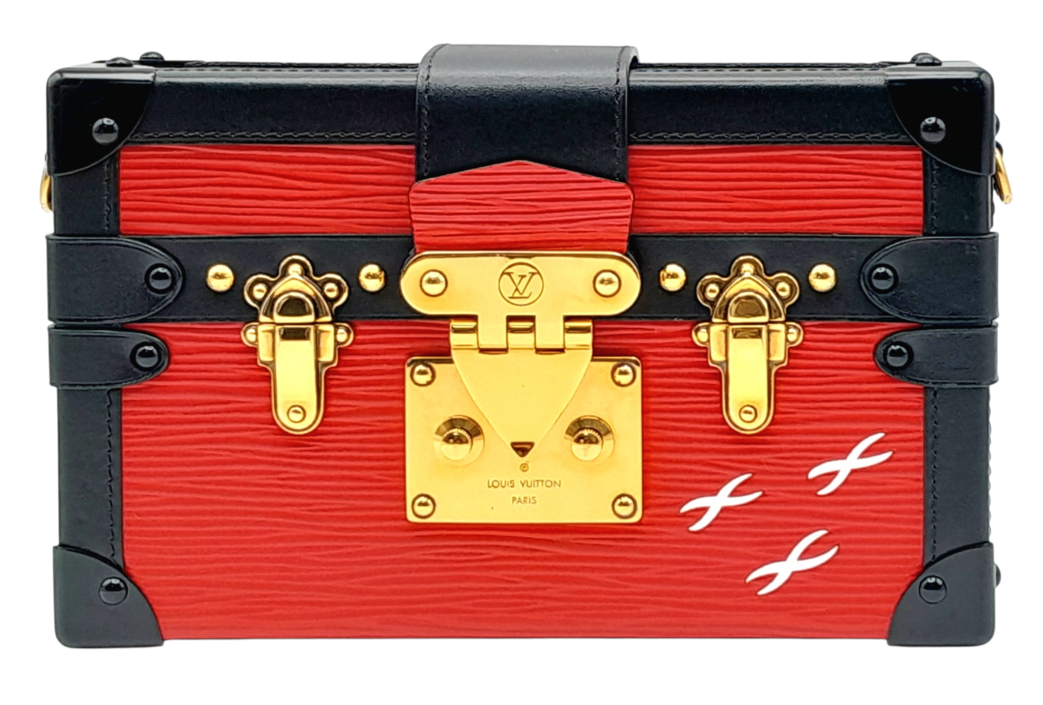 A Louis Vuitton Red and Black Petite Malle Clutch/Crossbody Bag. Epi leather and leather exterior with black and gold-toned hardware, and squeeze lock closure. Beige leather interior with a small open pocket. Comes with dust cover and detachable adjustable strap. Approximately 19cm length x 12cm height. Some light scuffs to corners and interior, otherwise in good condition overall - please see photos or request a condition report. Ref: 10225