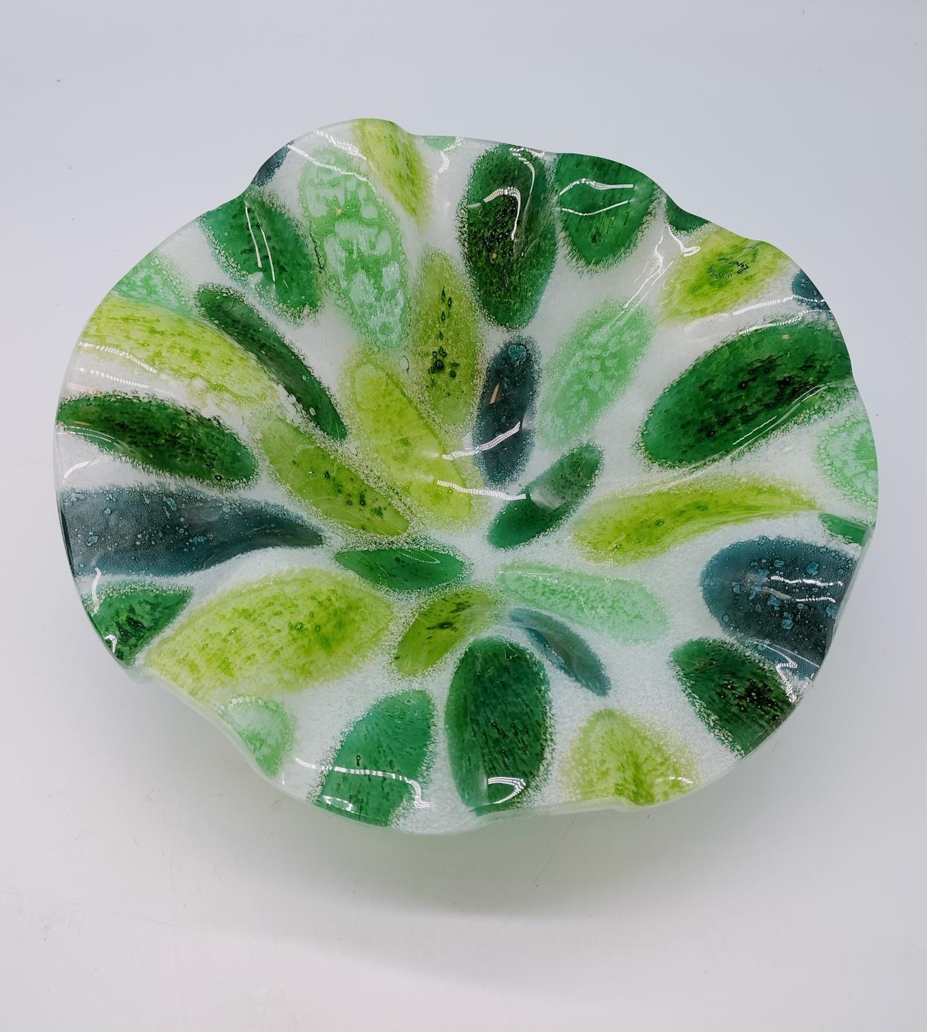 Rupert Scott Art Glass Centrepiece Bowl. 29cm Diameter.